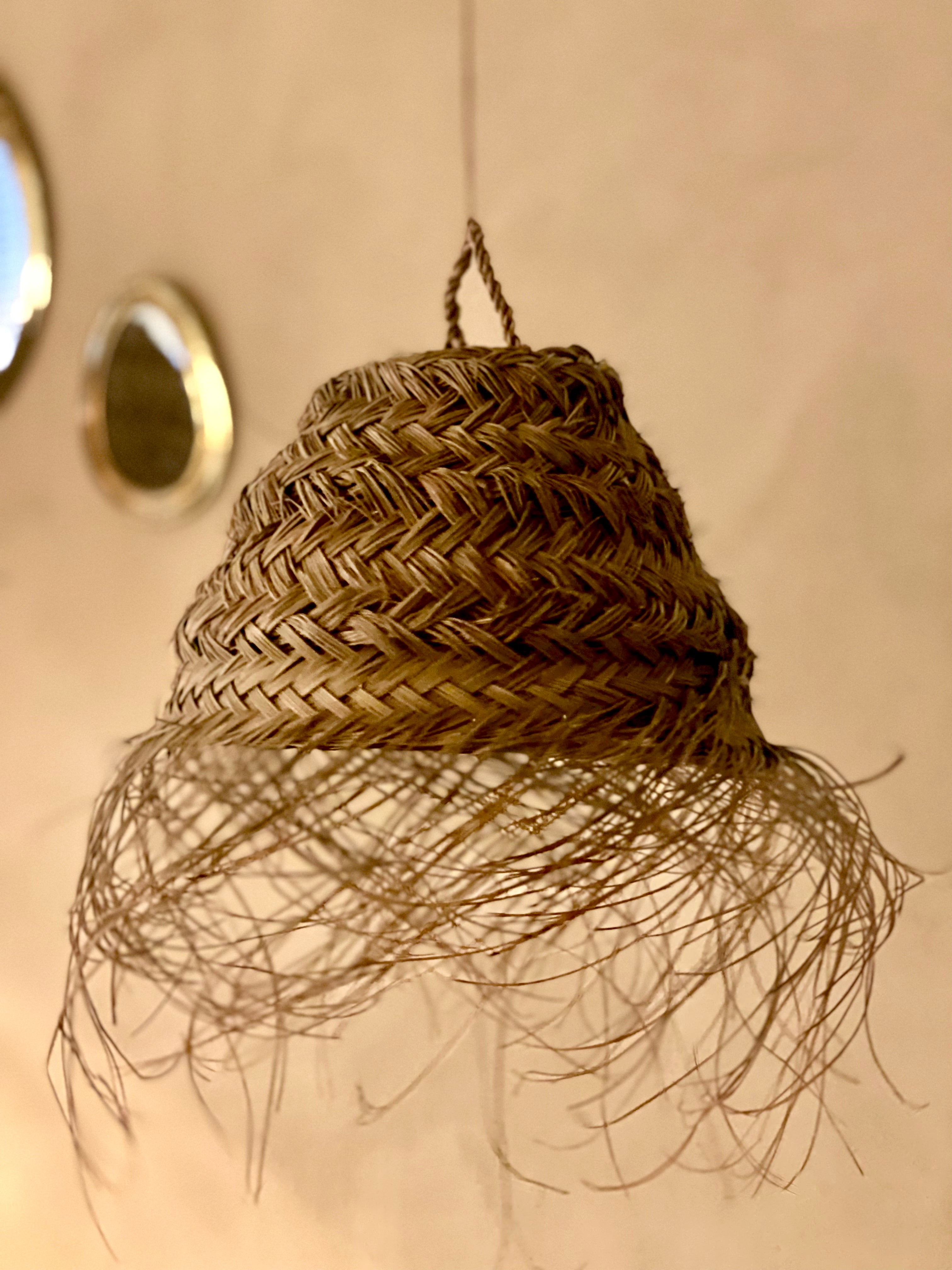 "Cove" – a pendant lamp crafted from natural-hued seagrass. With its exotic allure, this lamp creates a delightful ambiance when illuminated, making it perfect for placement above nightstands in the bedroom or as part of an ensemble of seagrass lamps to serve as a captivating centerpiece in any room. Please note, it's supplied without a light pendant.