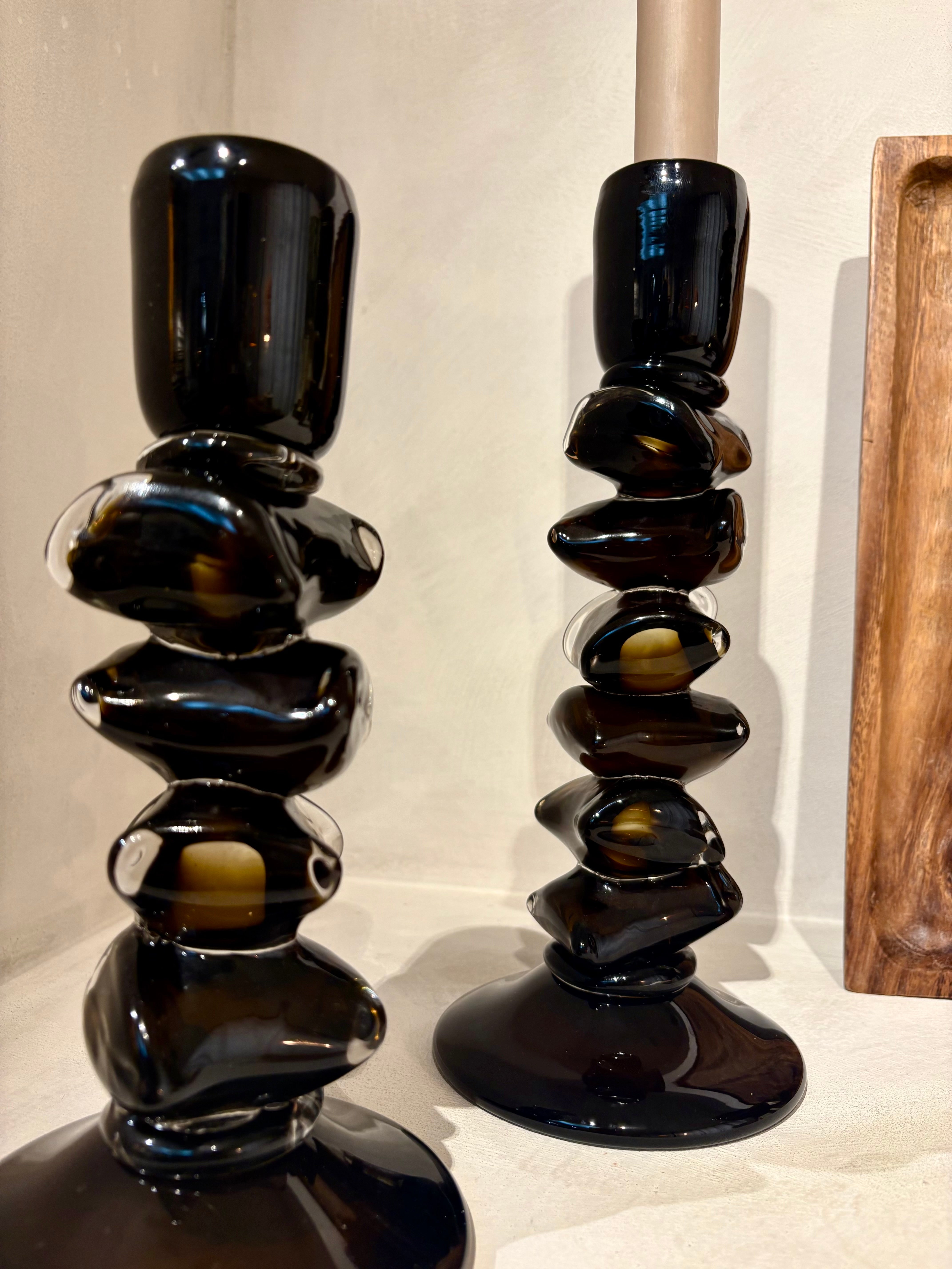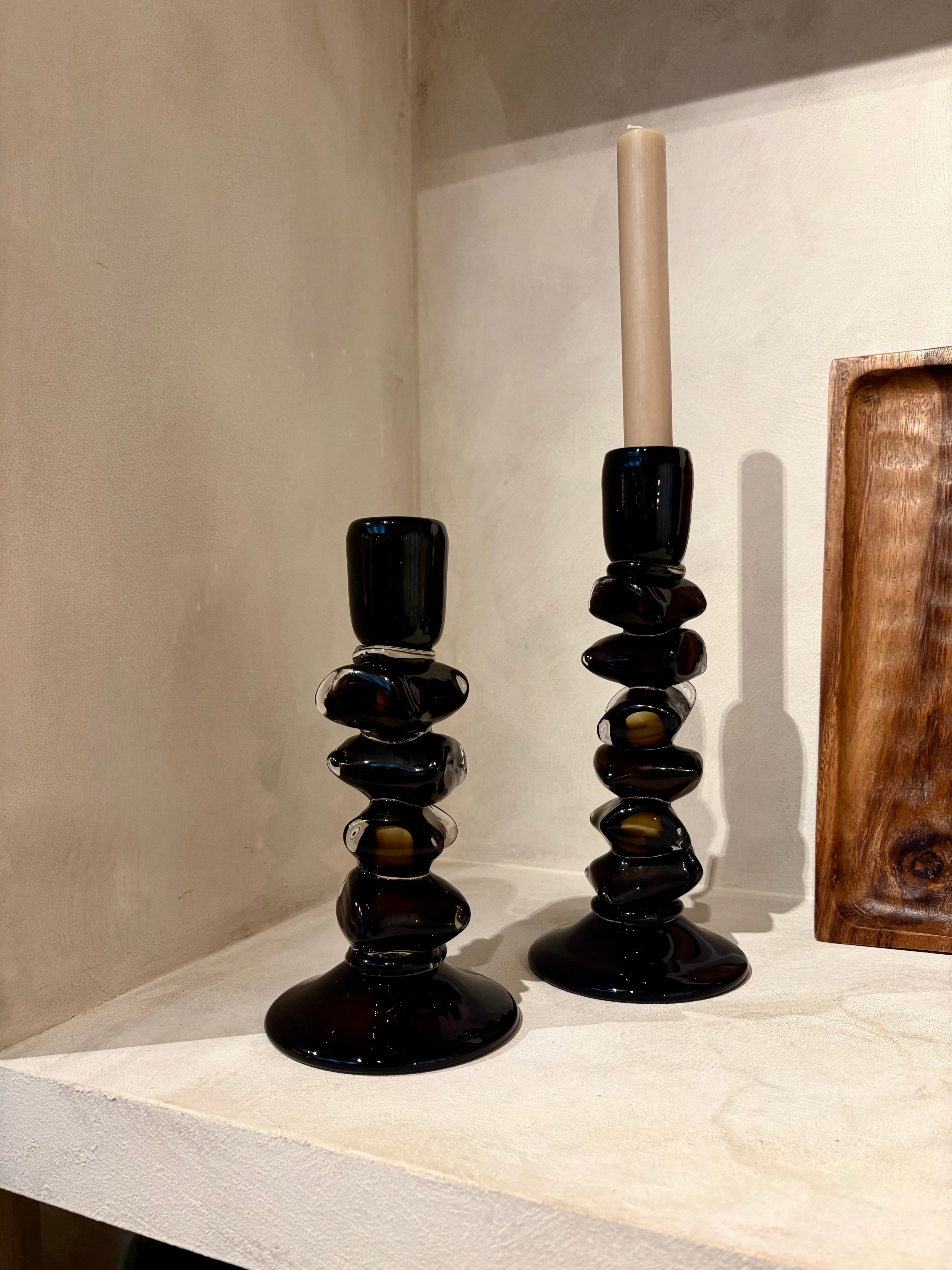Breng warmte in je interieur met deze okerkleurige glazen kandelaren. Hun zachte gouden gloed zorgt voor een sfeervol accent perfect voor op tafel, vensterbank of in de klas. Tijdloos, stijlvol en vol karakter.