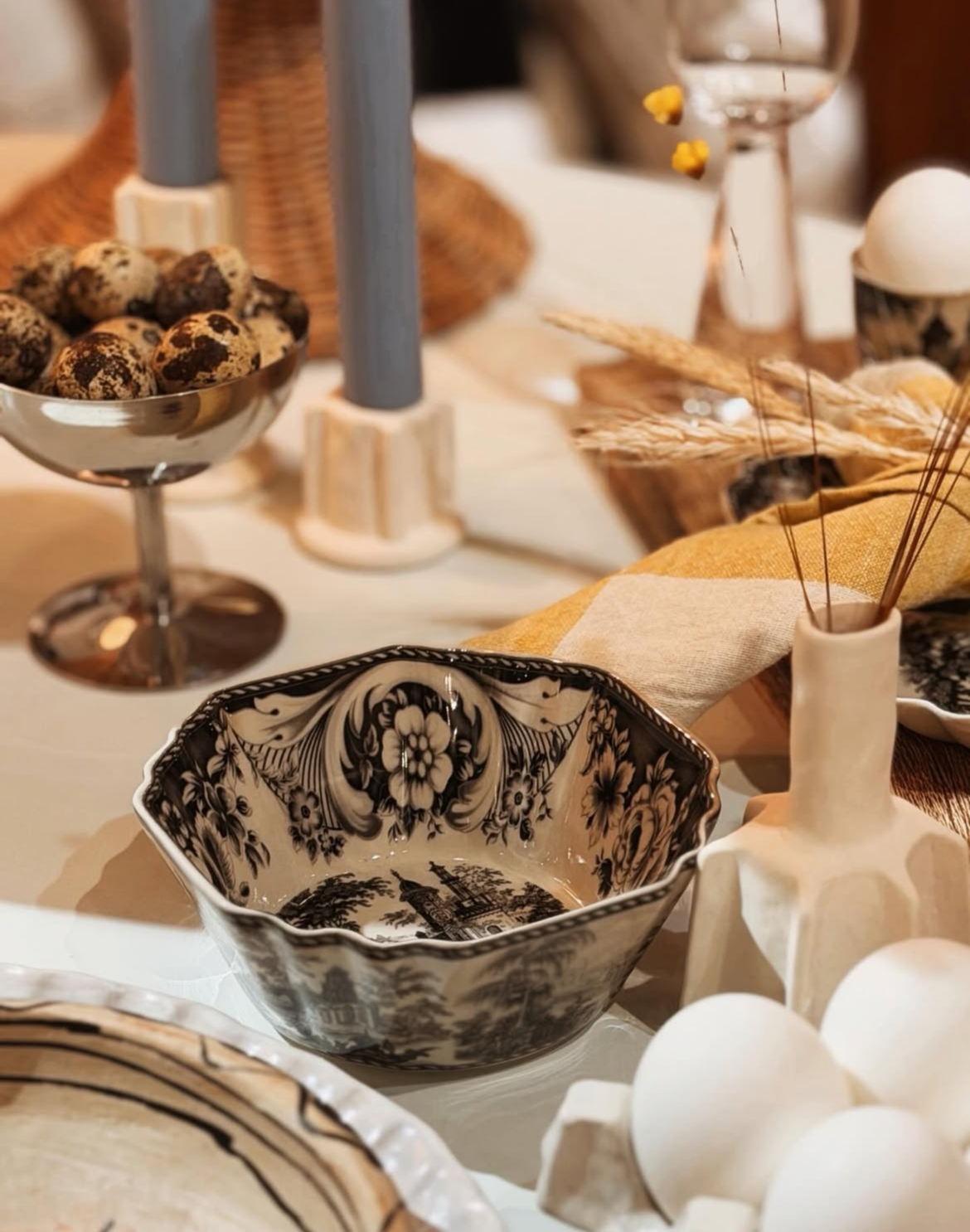 Dankzij het tijdloze zwart-wit design laat het servies zich eenvoudig combineren met andere stijlen en kleuren. Of je nu kiest voor een rustige, minimalistische tafel of juist een speelse mix, het Ella servies voegt altijd karakter toe.