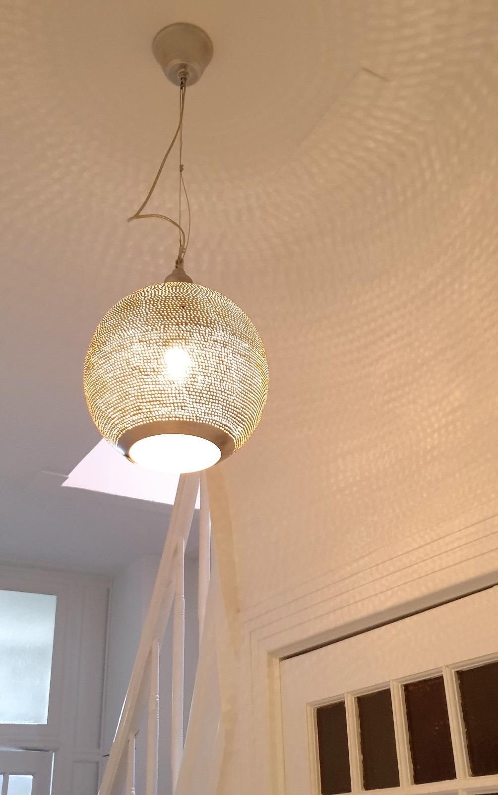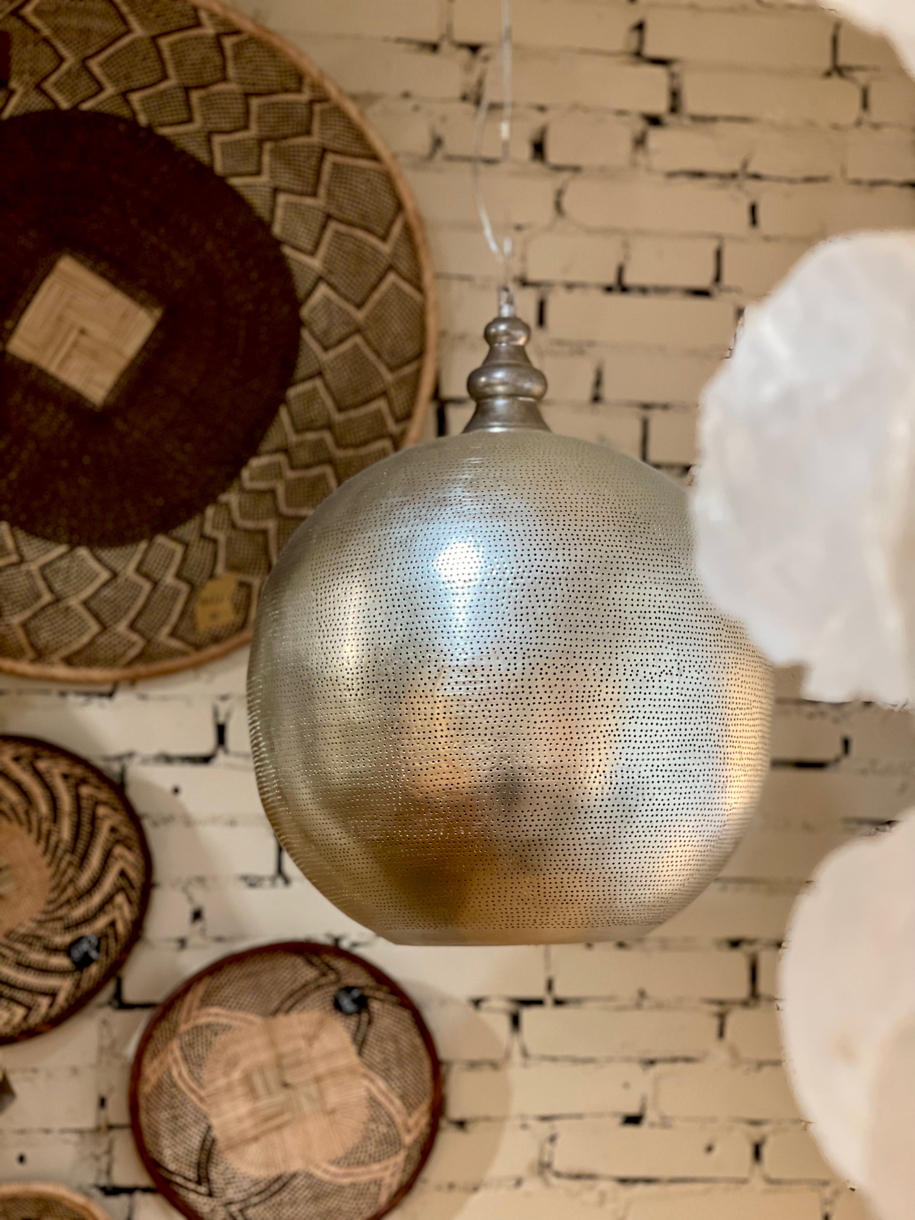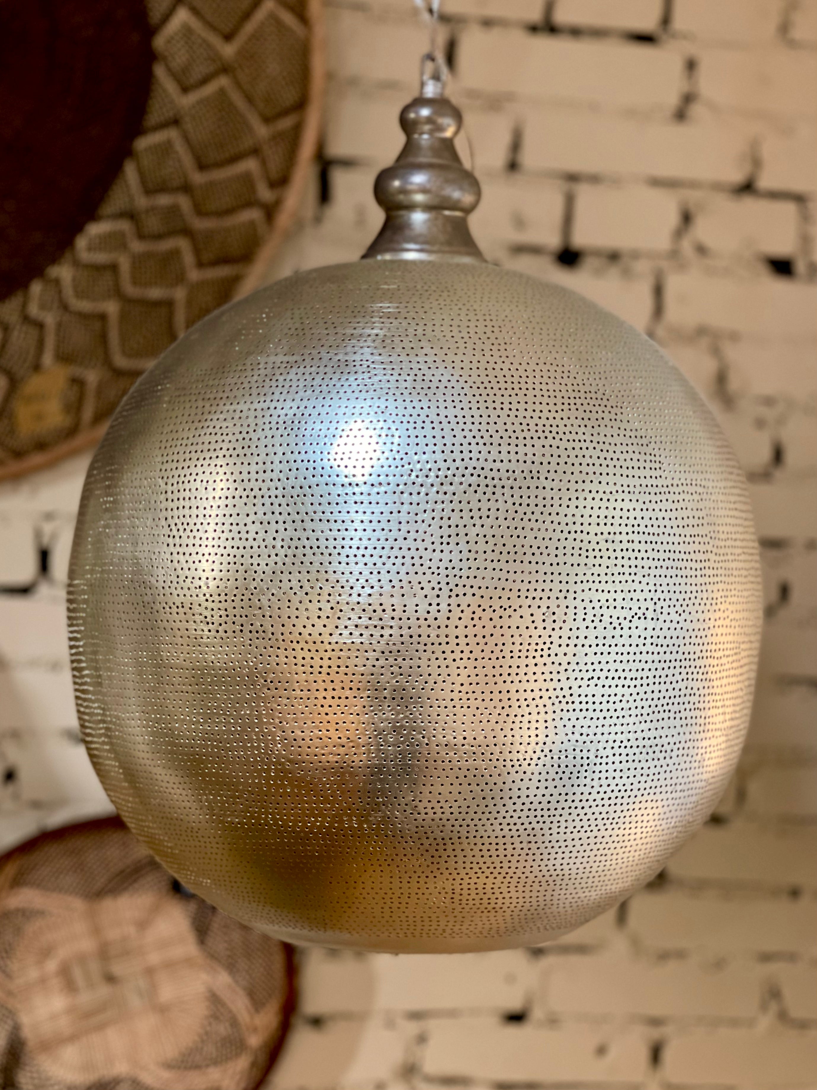 Een tijdloze blikvanger met een magisch lichteffect. Deze met zilver afgewerkte, geperforeerde lamp tovert een sterrenhemel op je muren. Modern, warm en elegant – perfect voor elk interieur.