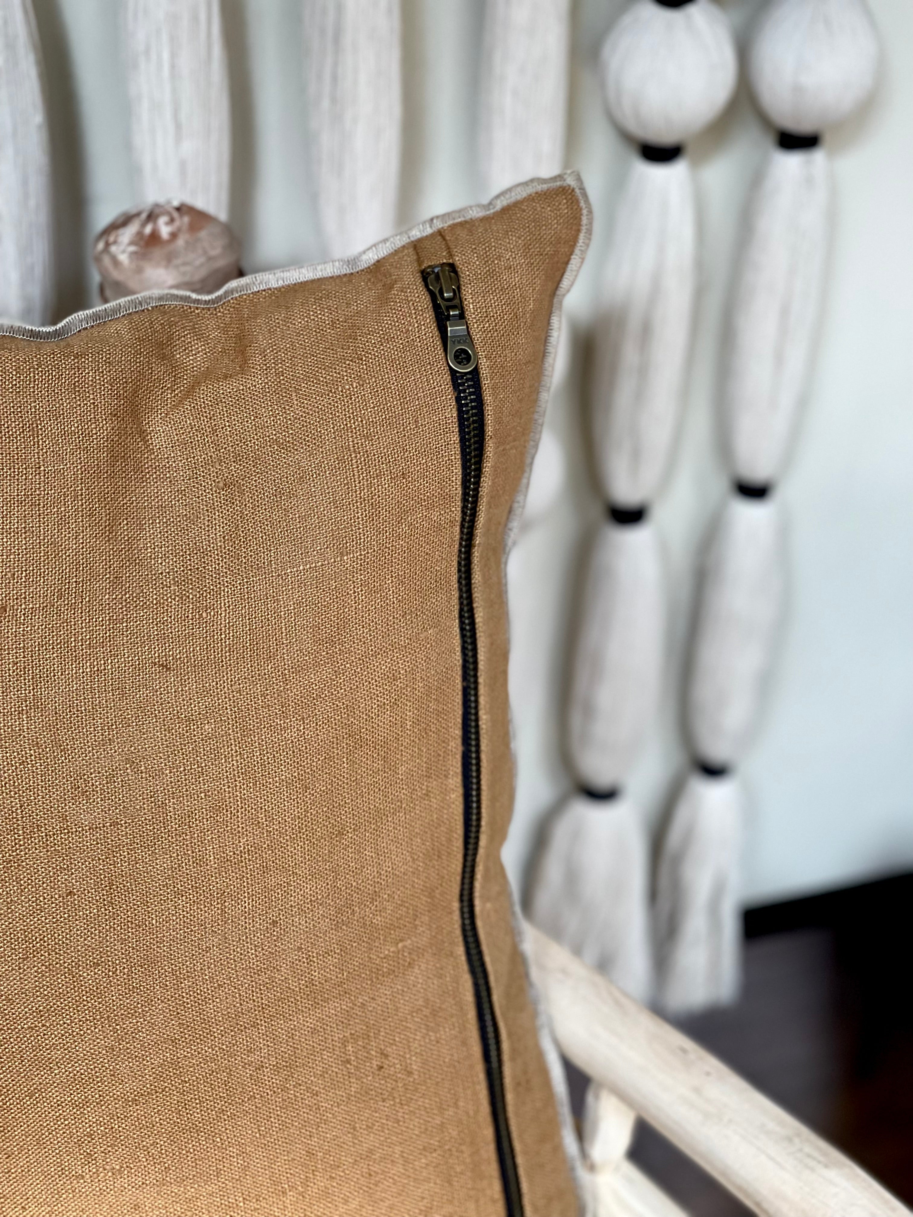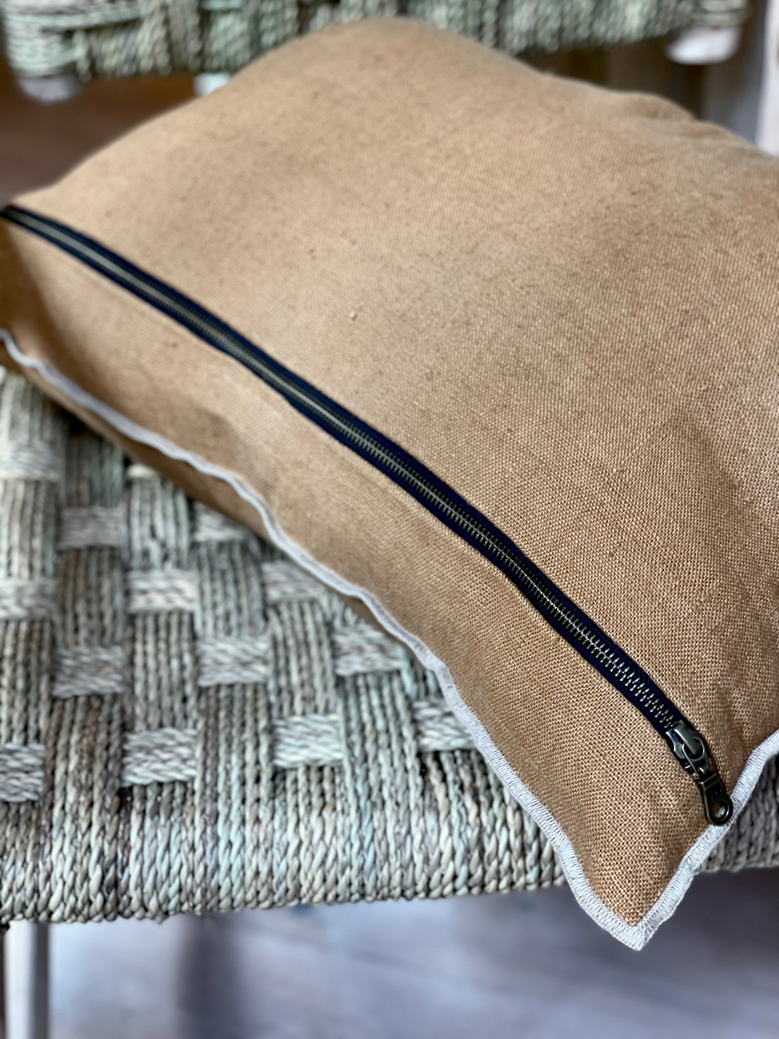 Voeg een vleugje luxe en elegantie toe aan je interieur met deze stijlvolle linnen kussenhoes. De subtiele geborduurde rand geeft het kussen een verfijnde afwerking, terwijl de stoere metalen ritssluiting aan de achterzijde zorgt voor een eigentijdse touch.