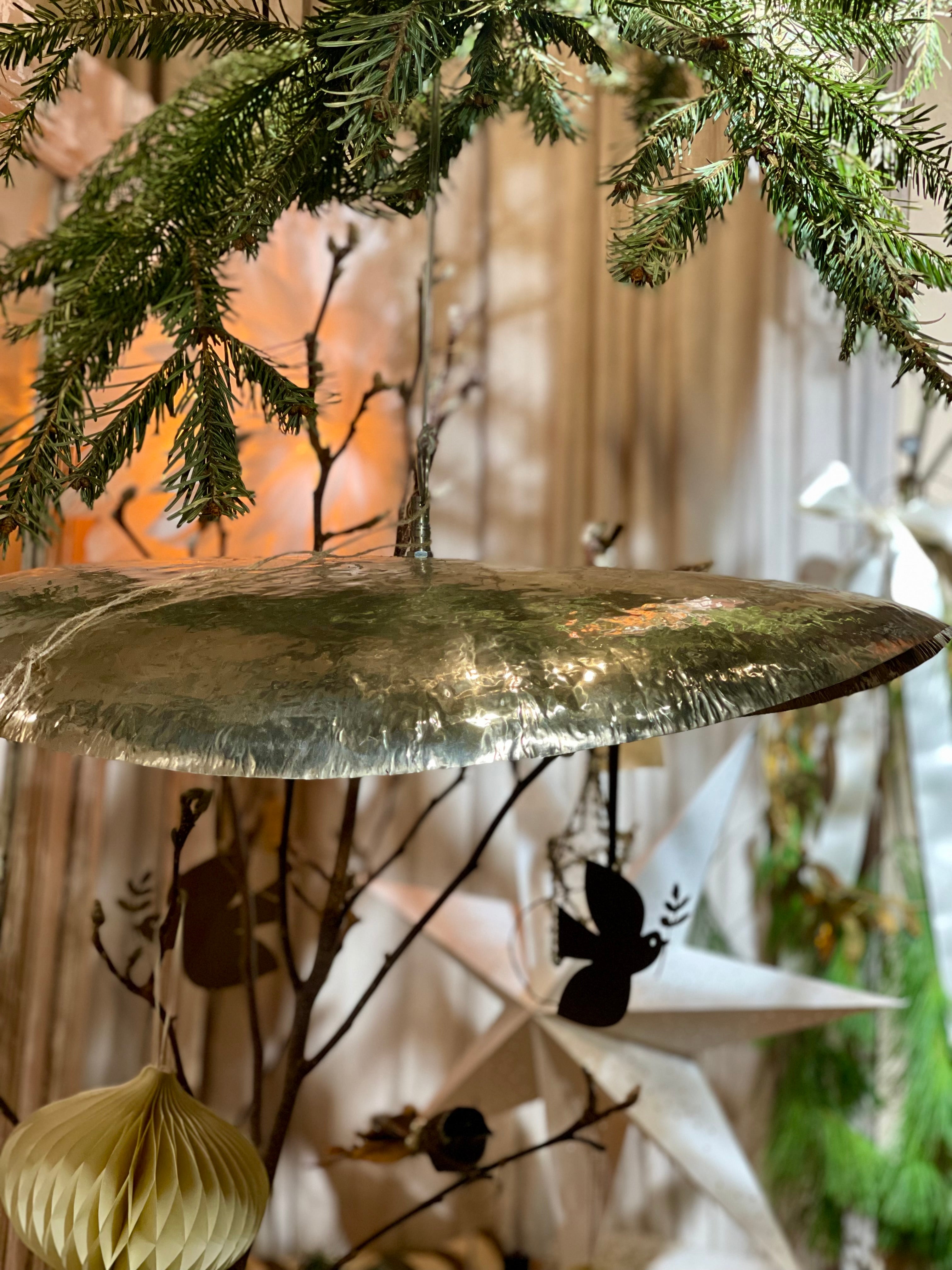 Introducing "Noor" – our brass lamp that instantly adds a statement and style to your home. Crafted from hand-hammered brass, these beauties come in four sizes: 60, 80, and 100 cm. Each lamp comes with a beautiful chain for easy hanging and features an E27 lamp fitting. Whether you choose to showcase them individually or create an even more captivating effect by arranging multiple lamps at varying heights, "Noor" is the perfect addition to elevate your decor. Because these lamps are made of white brass, a more expensive material, their price is higher compared to the gold brass lamps.