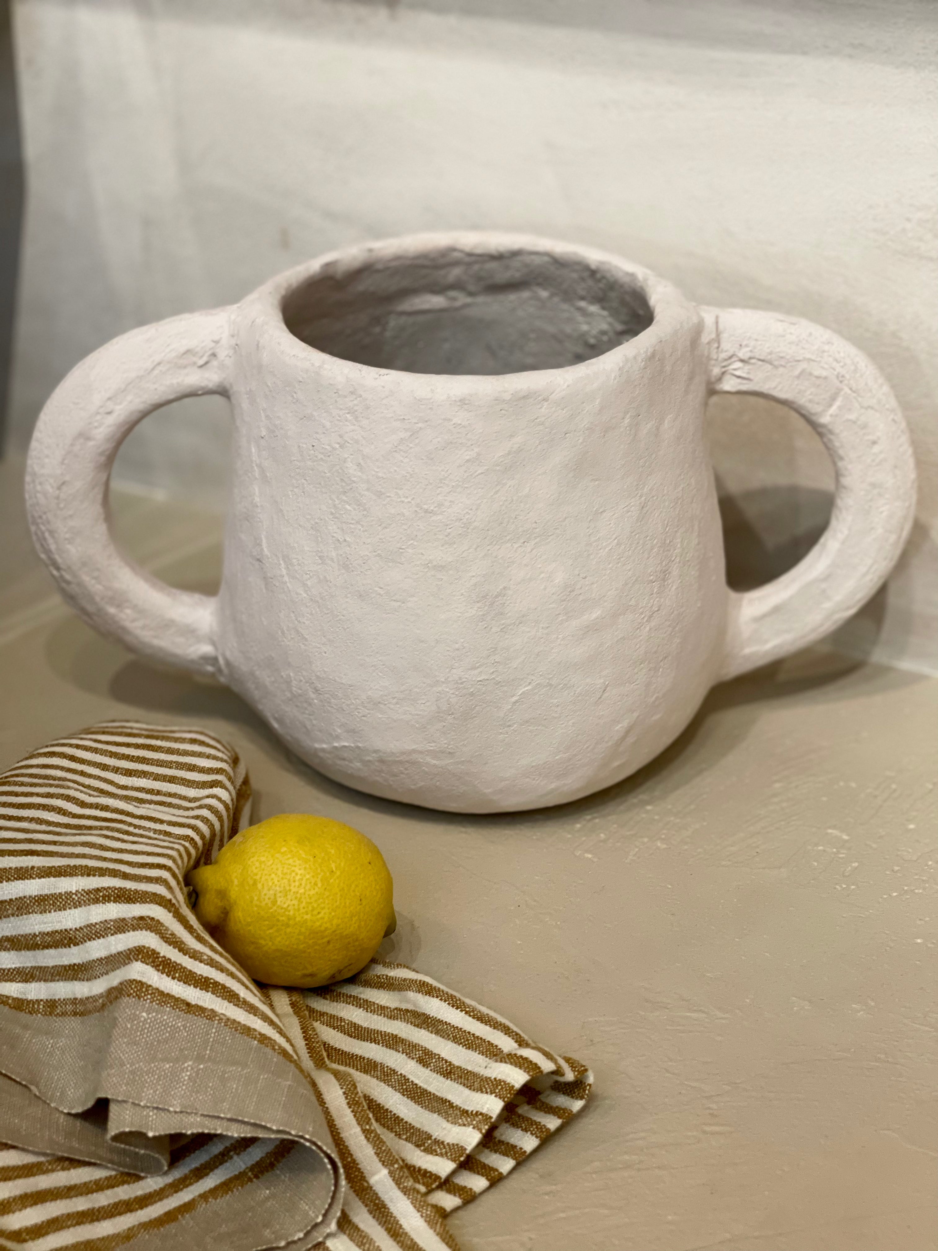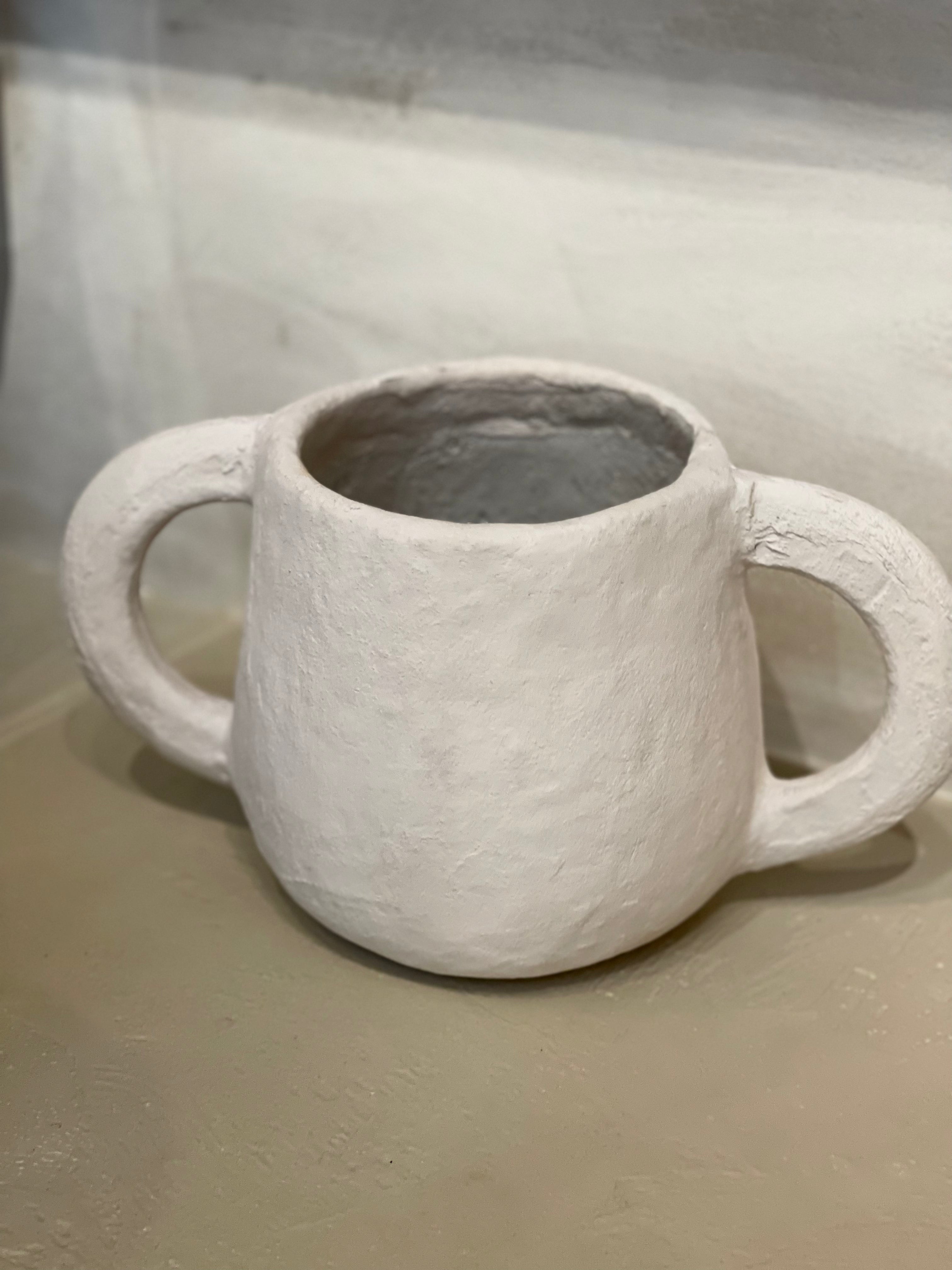 Deze bijzondere handgemaakte papier-maché Orphus pot heeft een zeer sculpturale en authentieke uitstraling. Het is een echte blikvanger met een hoog artistiek gehalte en een serene uitstraling.