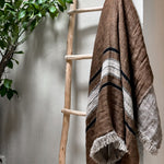 The tablethrow Oku Bruges Stripe, a charming addition to enhance your dining ambiance. Crafted from 100% linen, that is produced in Belgium by experienced Artisans using only the finest flax fibers. The Bruges stripe pattern adds a touch of rustic charm and visual interest to your table setting, creating an inviting atmosphere for gatherings both casual and formal.