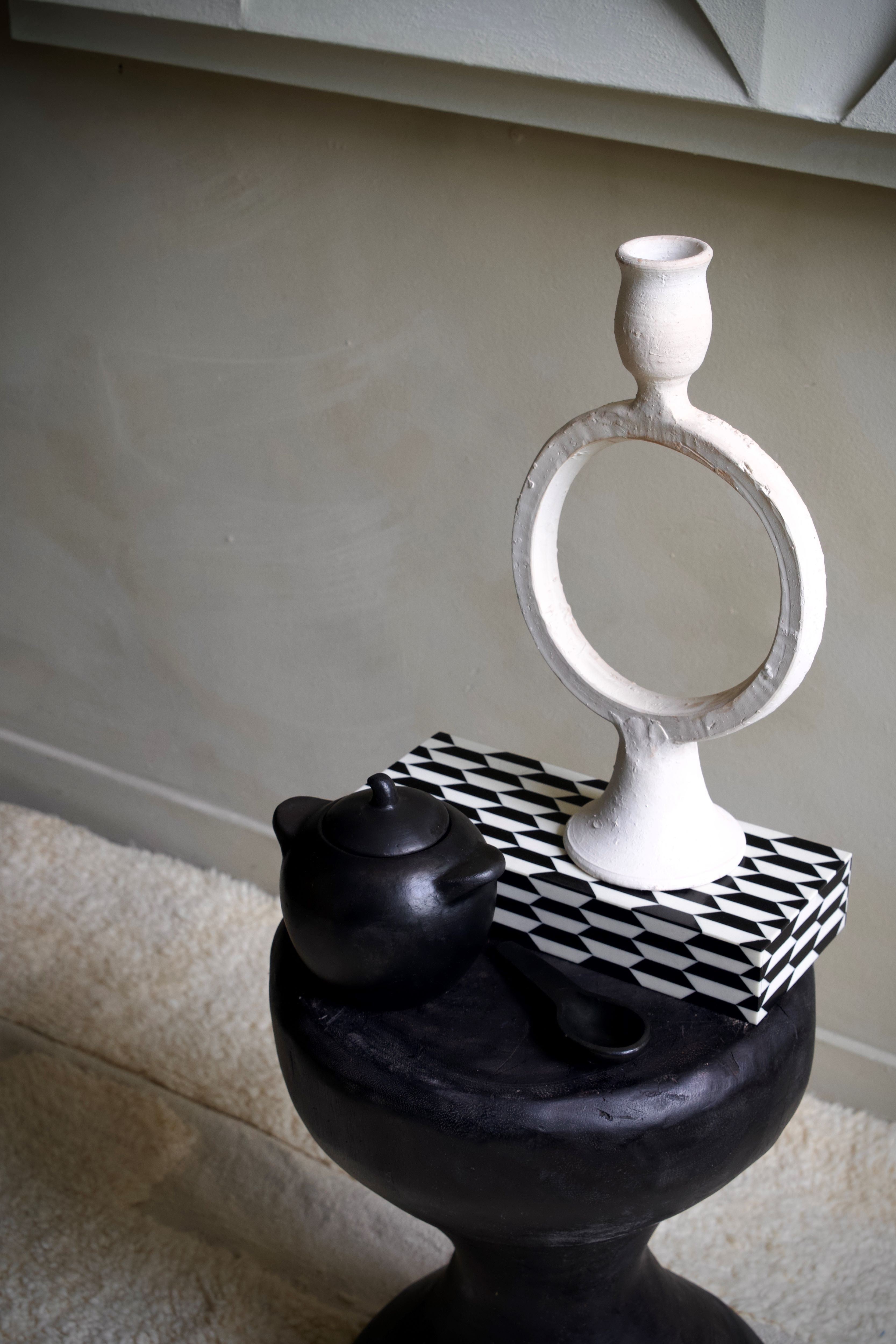 This is the "Art Deco Treasure Box" from our Treasure Box collection, made in India. This collection consists of three beautifully decorated chests to store your treasures. The abstract allure of these pieces add a dynamic feel to the room and capture the eye. The chests are embellished with intricate geometric patterns made of animal bone and resin. This design is incapsulated in a glossy coating layer to last a lifetime.