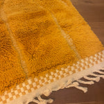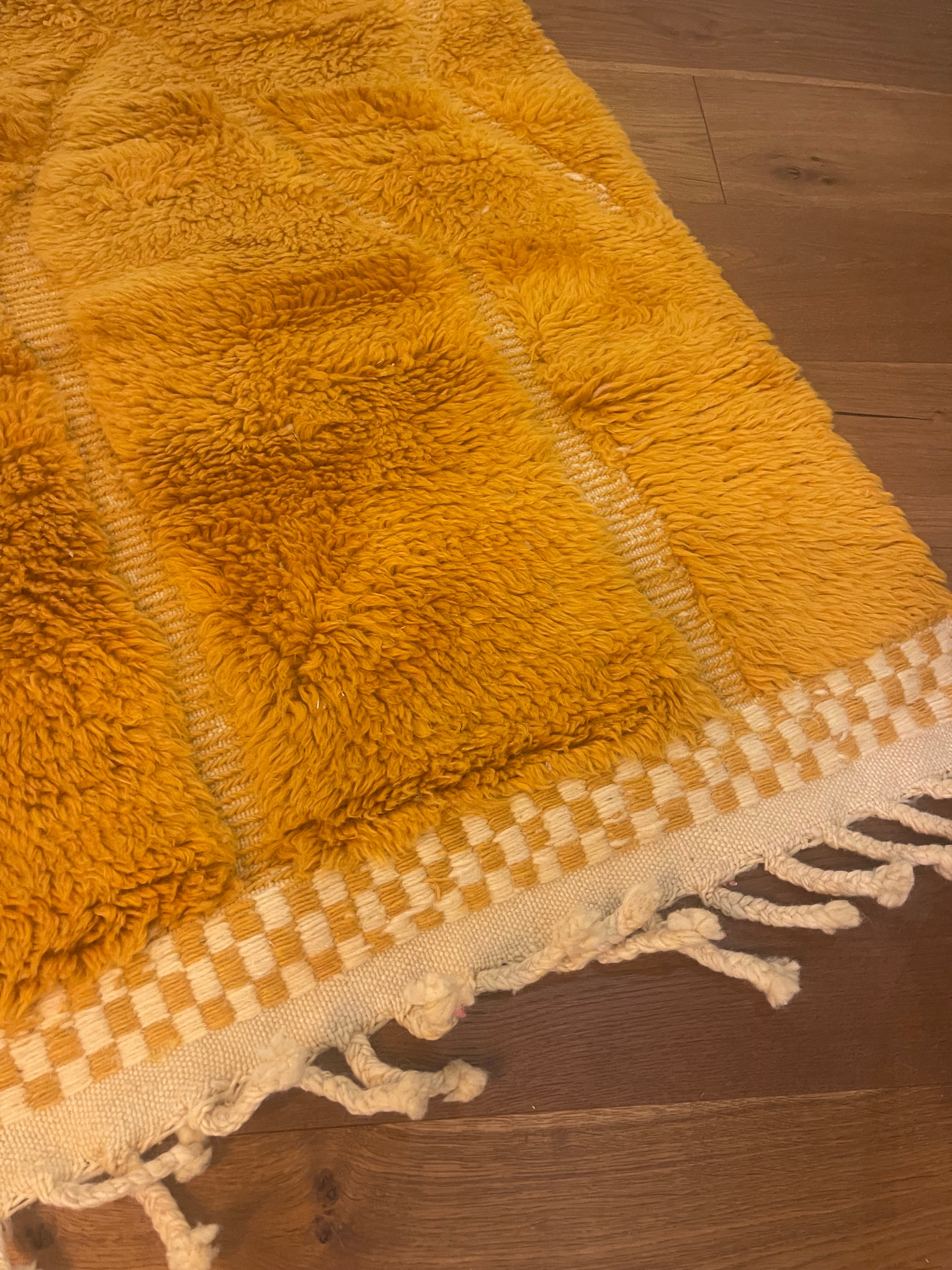 Breng warmte en karakter in je interieur met dit prachtige, handgemaakte kleed uit Marokko. Gemaakt van 100% wol in warme aardetinten, met een elegante zandkleurige franje-afwerking.