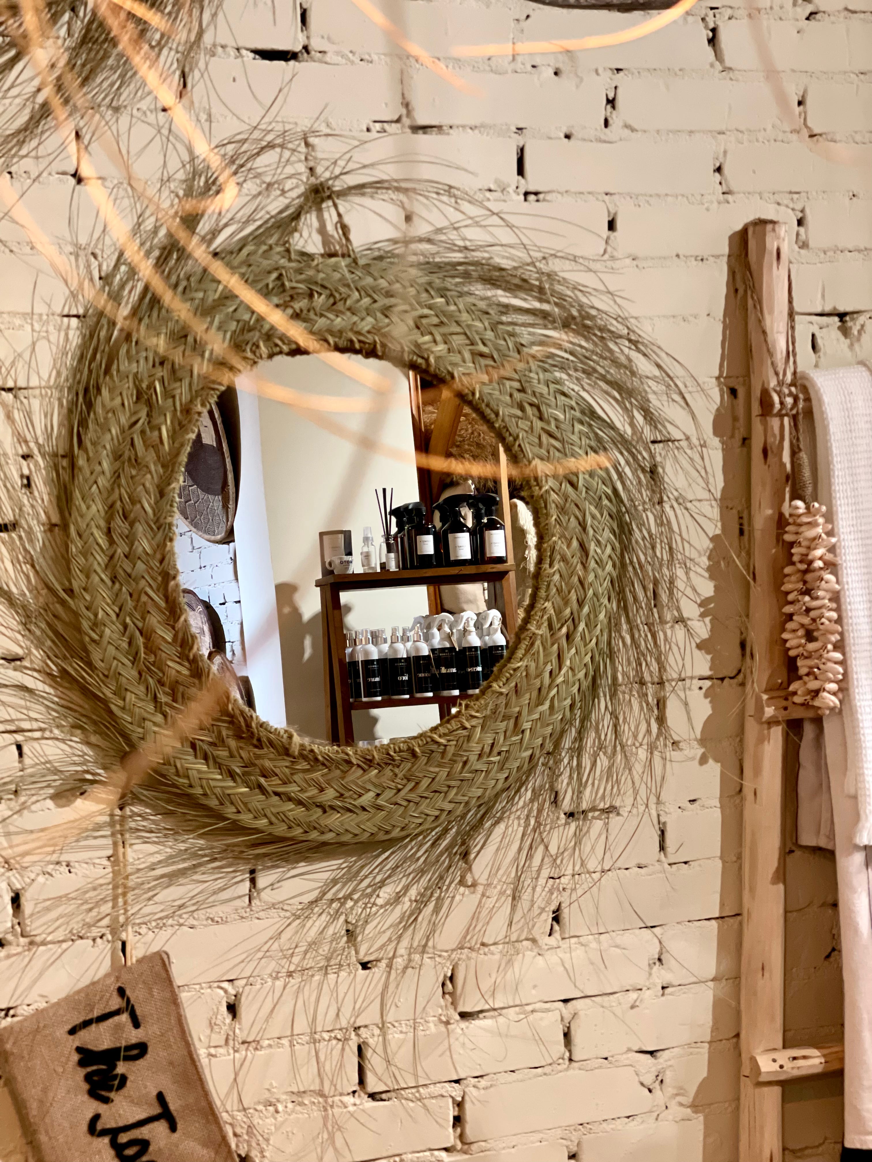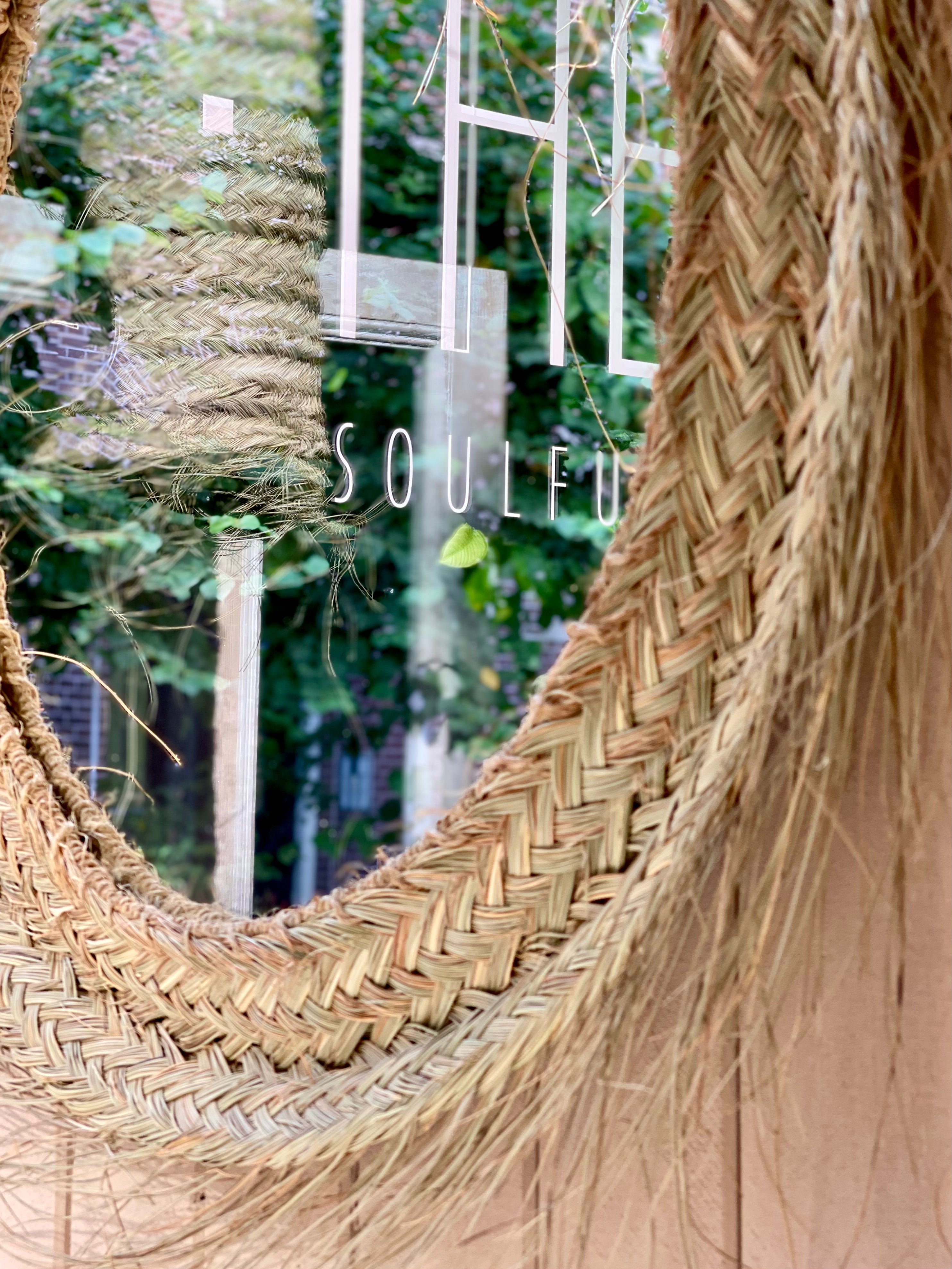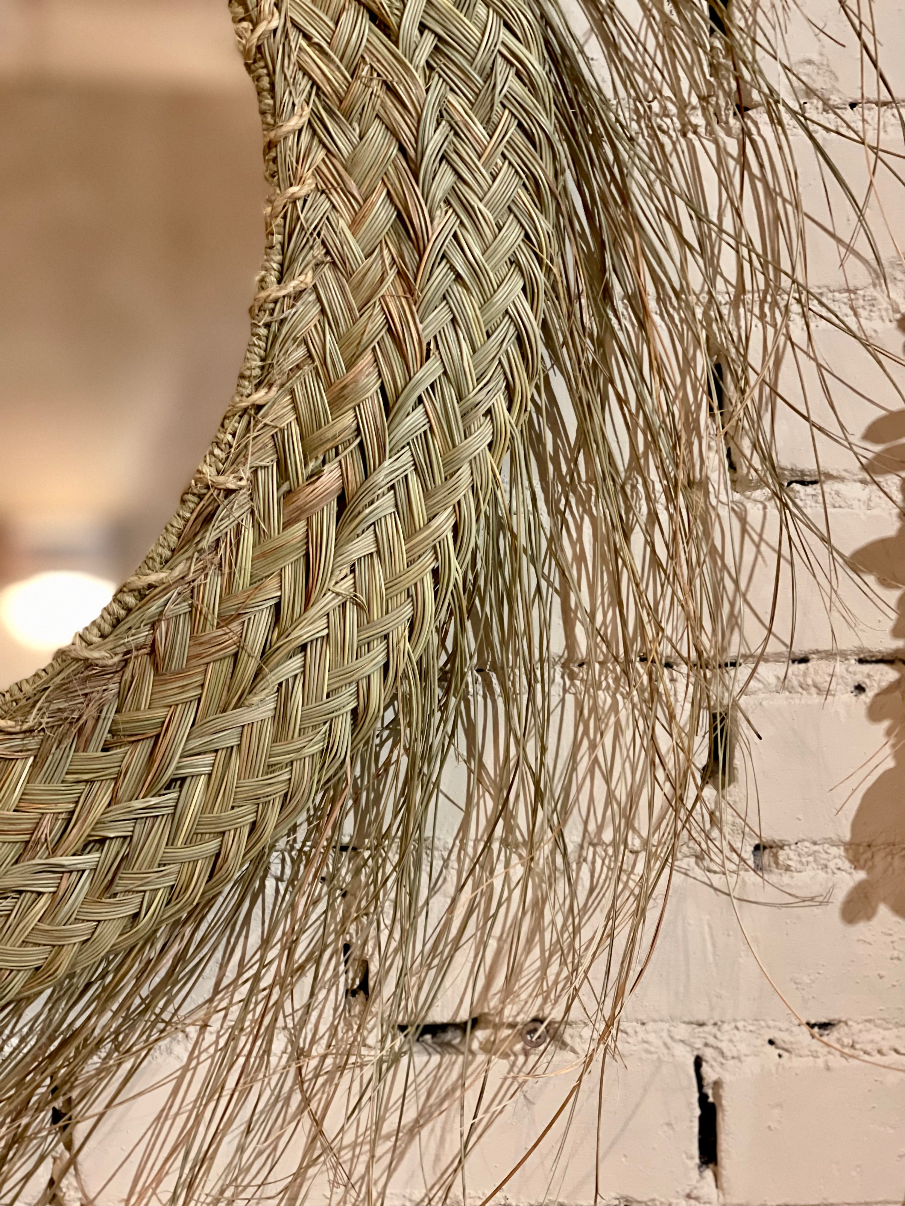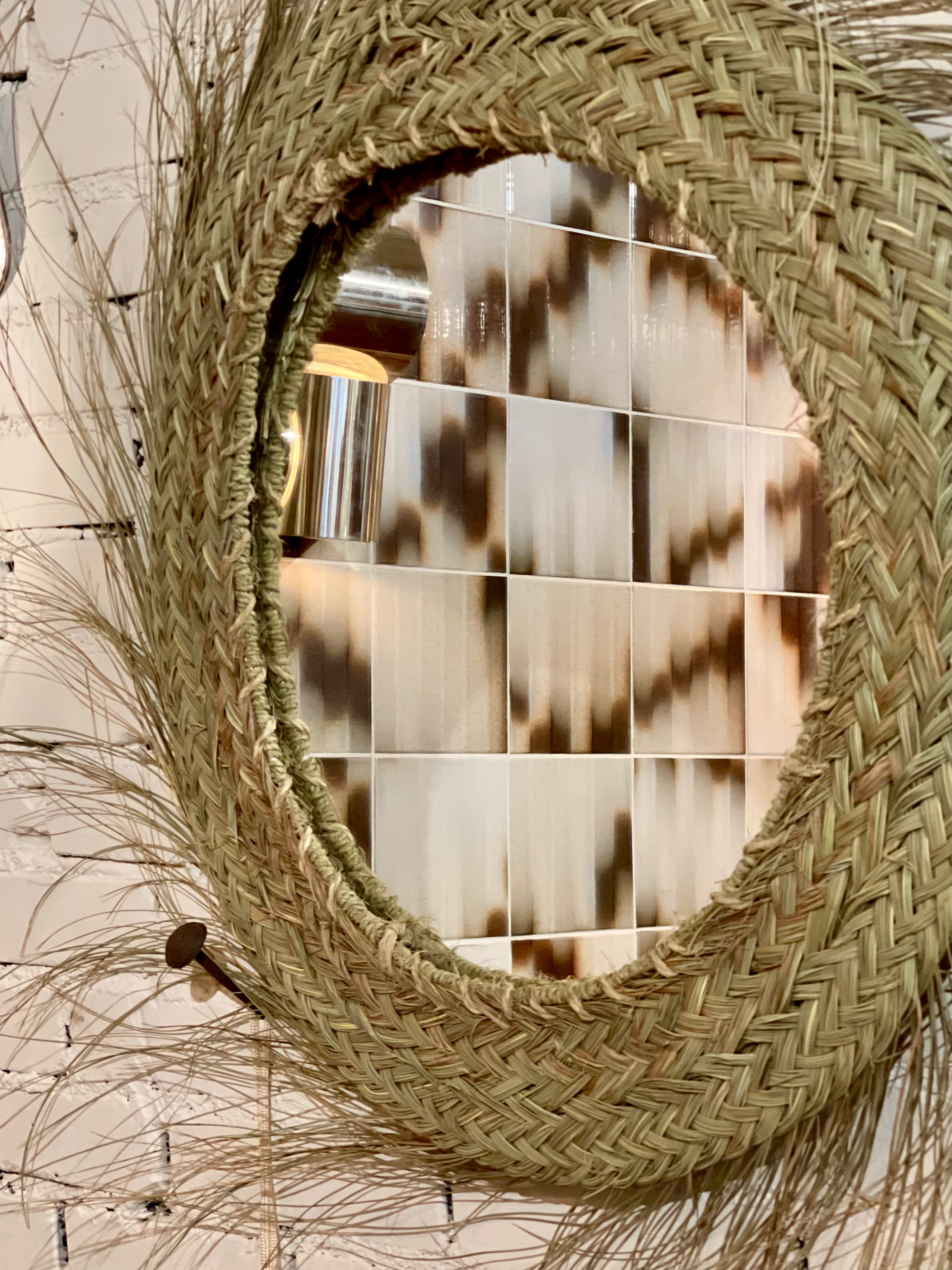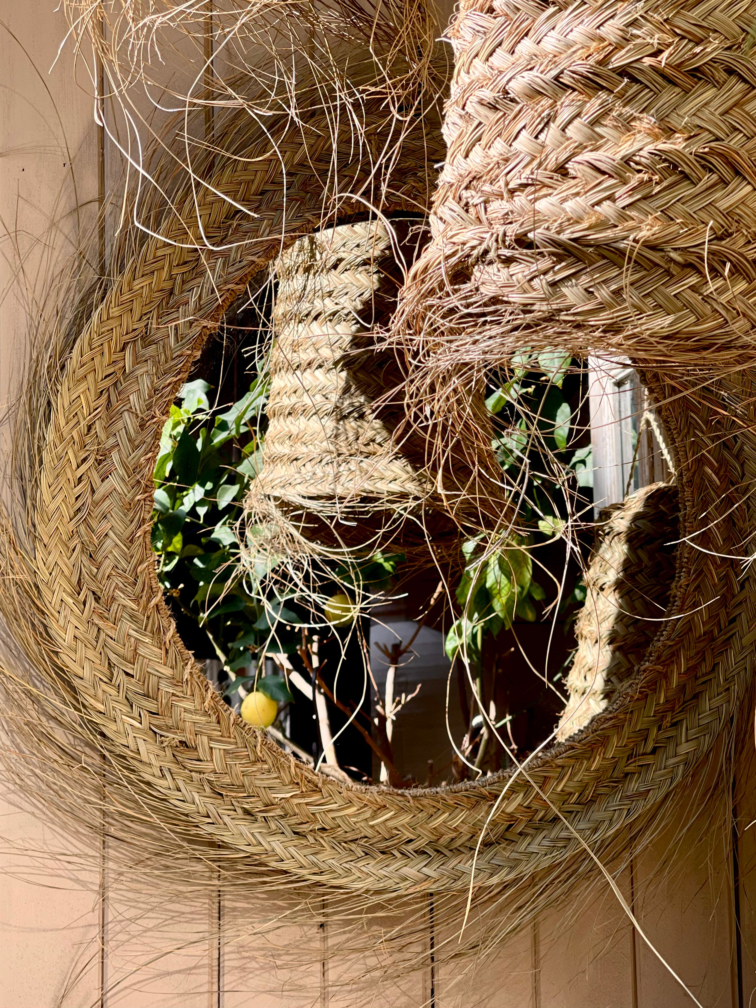 Breng de zon in huis met deze handgemaakte Marokkaanse spiegel van zeegras.
