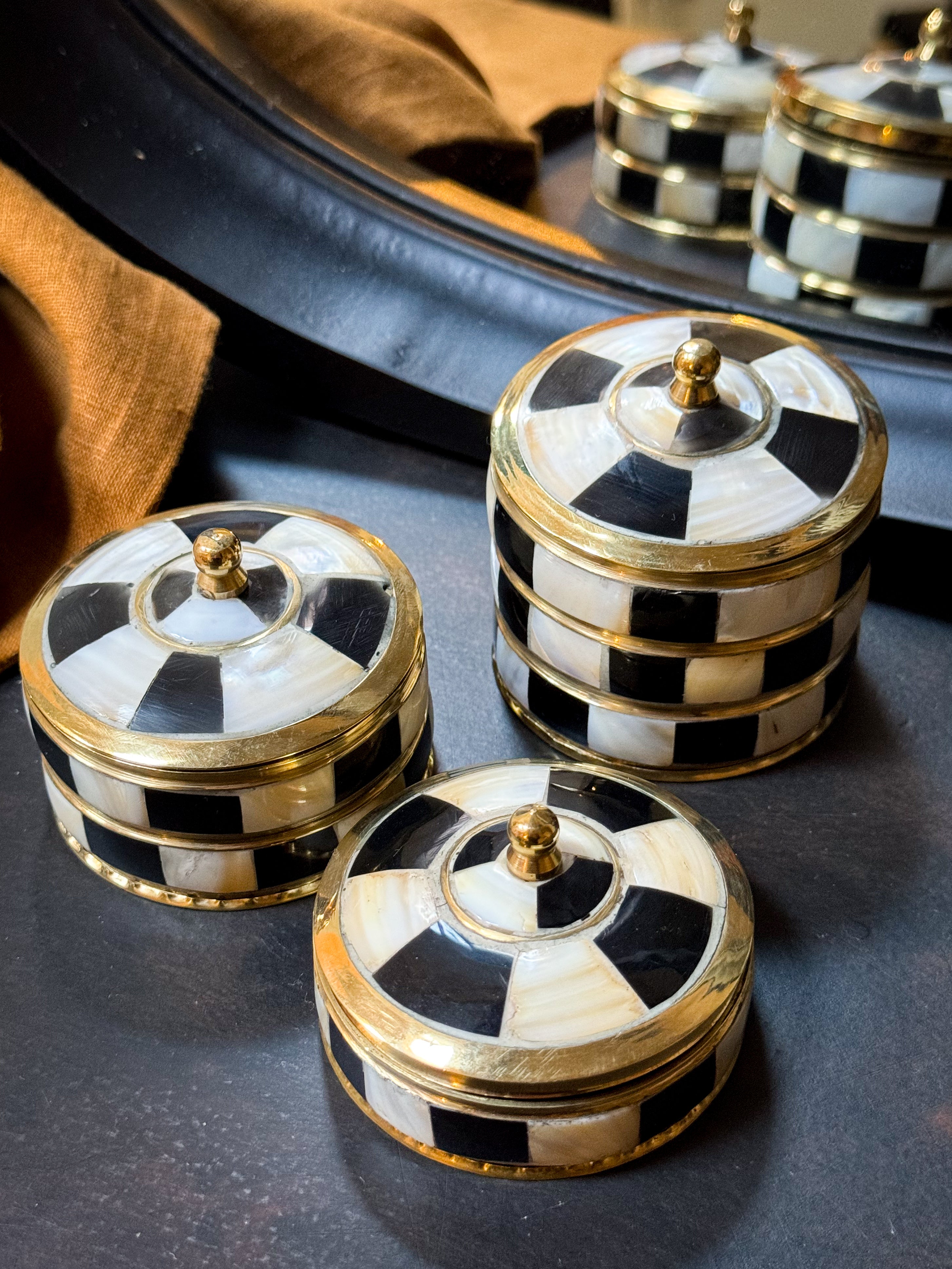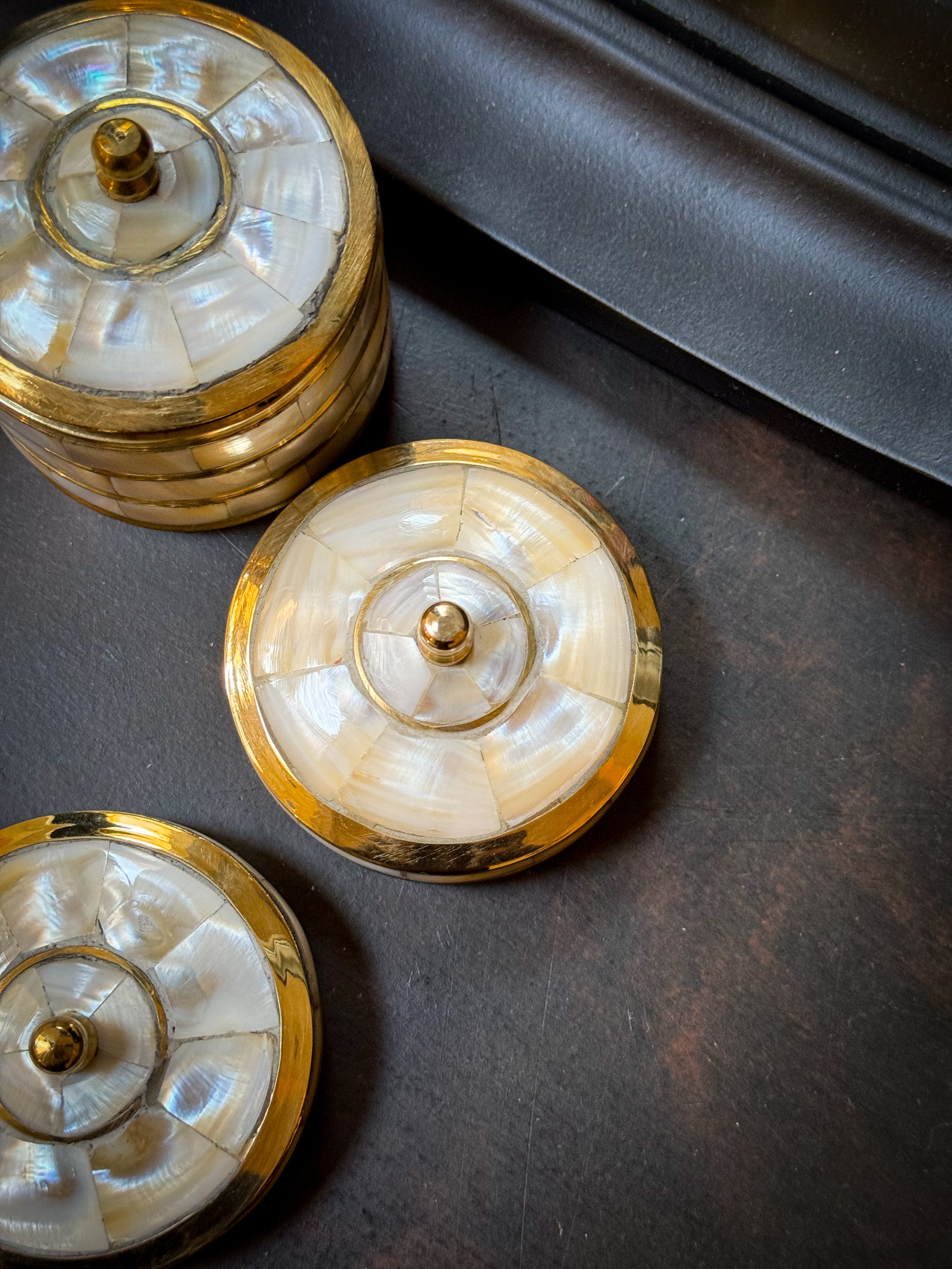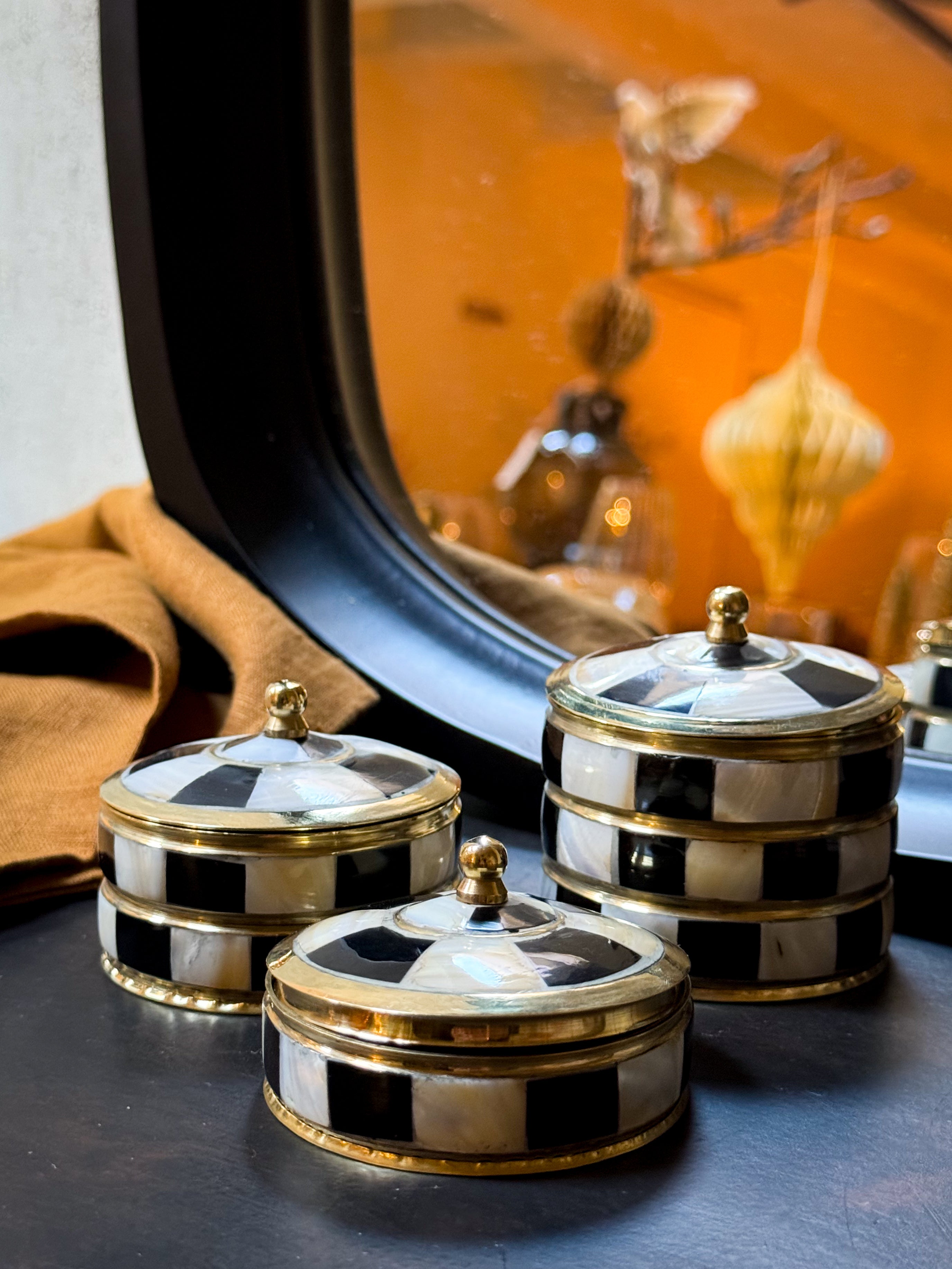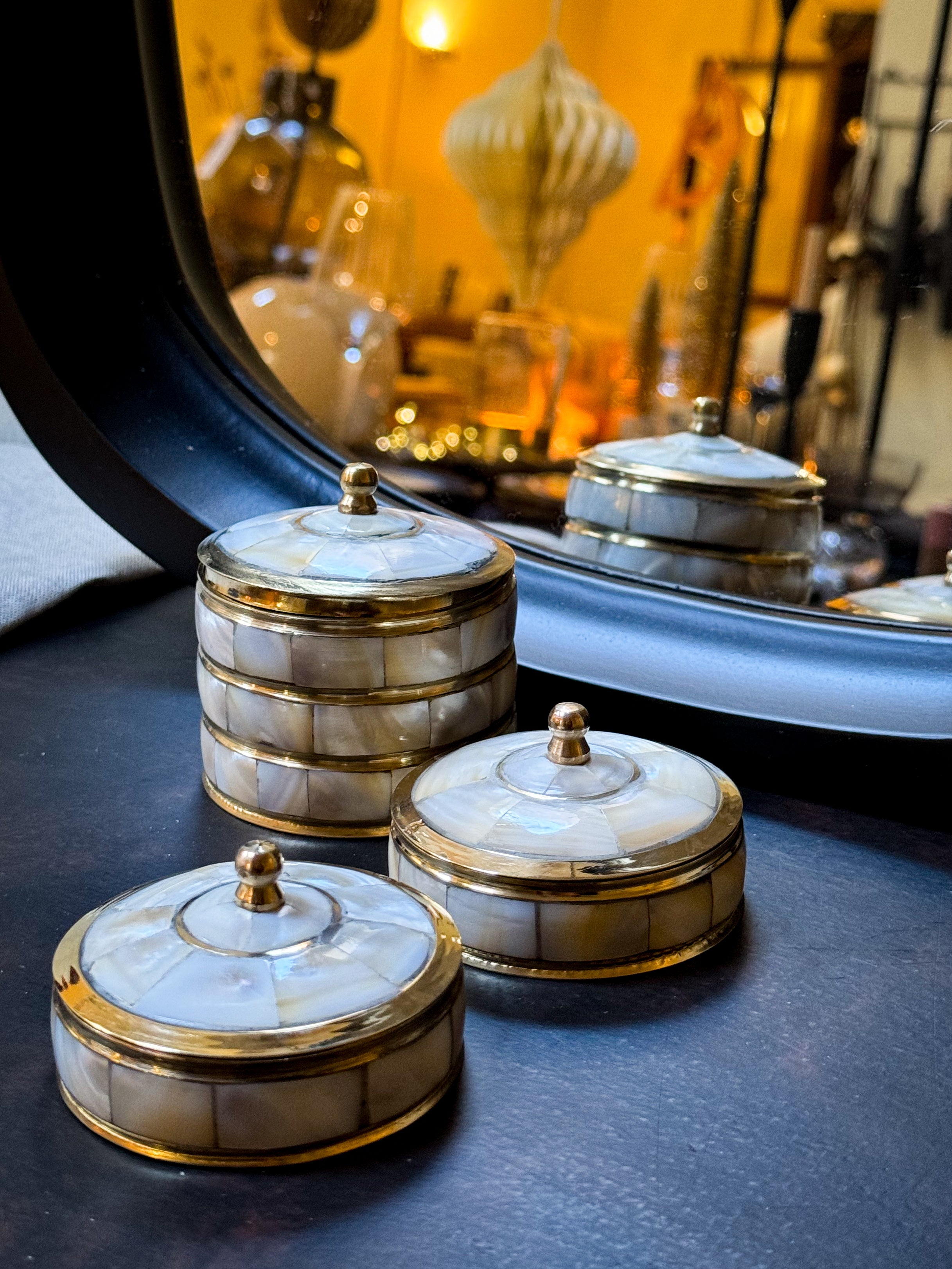 Handgemaakte messing ‘treasure’ doosjes met parelmoer inleg