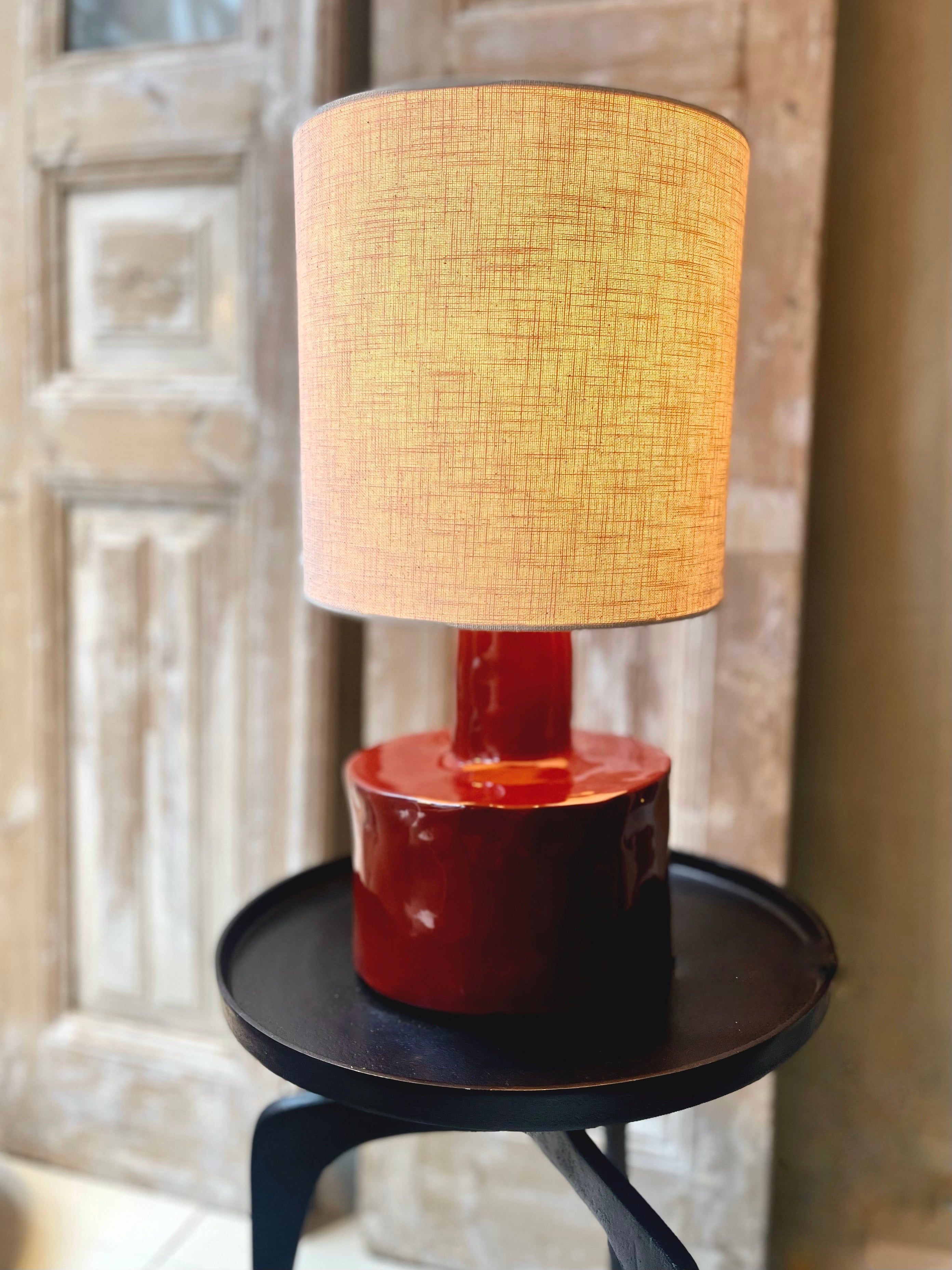 Say hello to our red ceramic table lamp, a piece that radiates warmth and personality. Its earthy, irregular-shaped red ceramic base adds a touch of artistry to your space, perfectly complemented by the soothing beige lampshade. Get ready to embrace a cozy and inviting atmosphere with this charming lamp – a true centerpiece for your home.