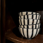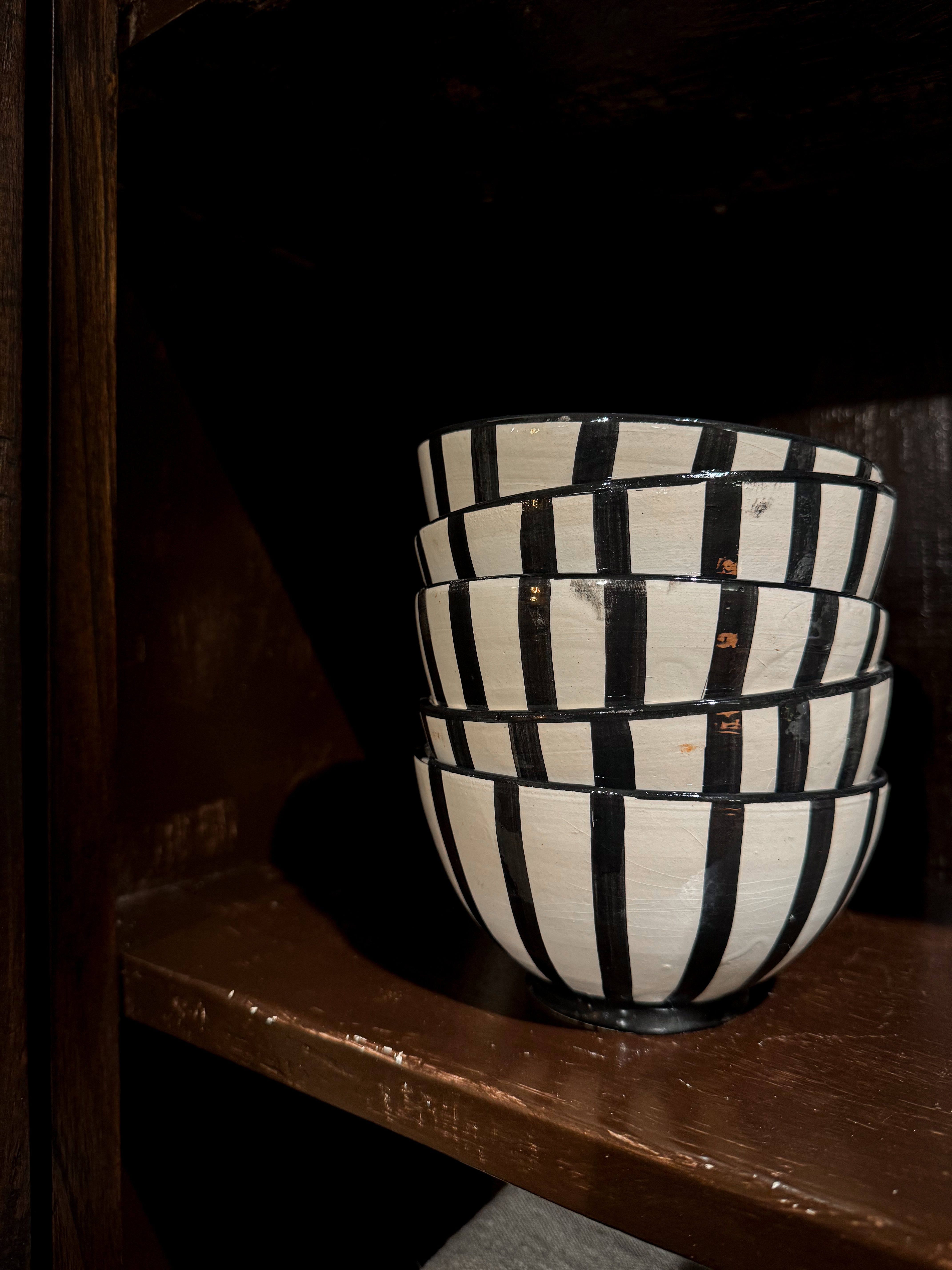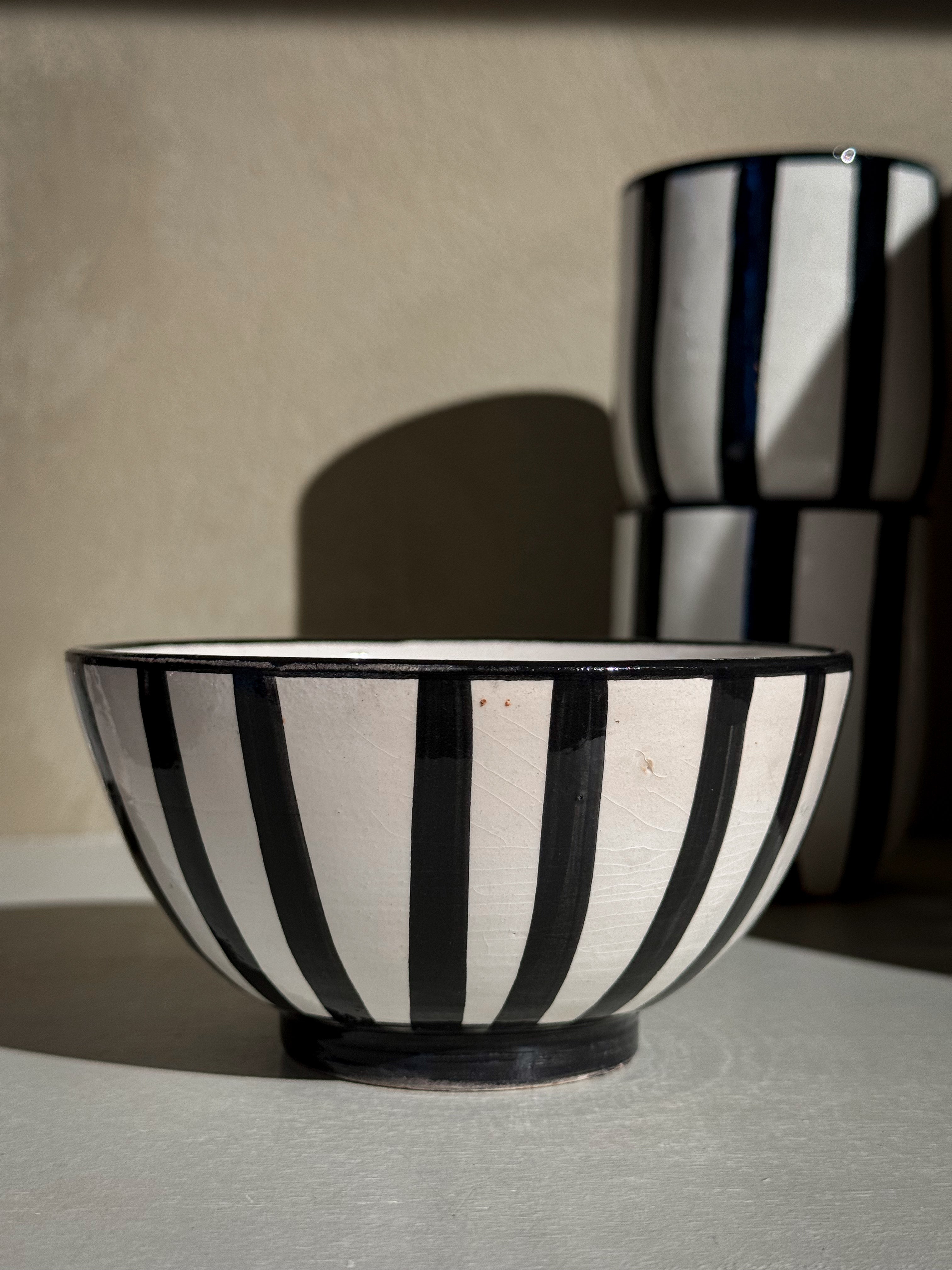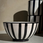 Introducing the "Cera Striped Bowl" - as a part of the Cera collection, made with love in Morocco. The bowl is made of hardened clay and hand painted with a shiny glaze. The fresh striped design is timeless and livens up your table setting. The Cera Striped Mugs complete this set.