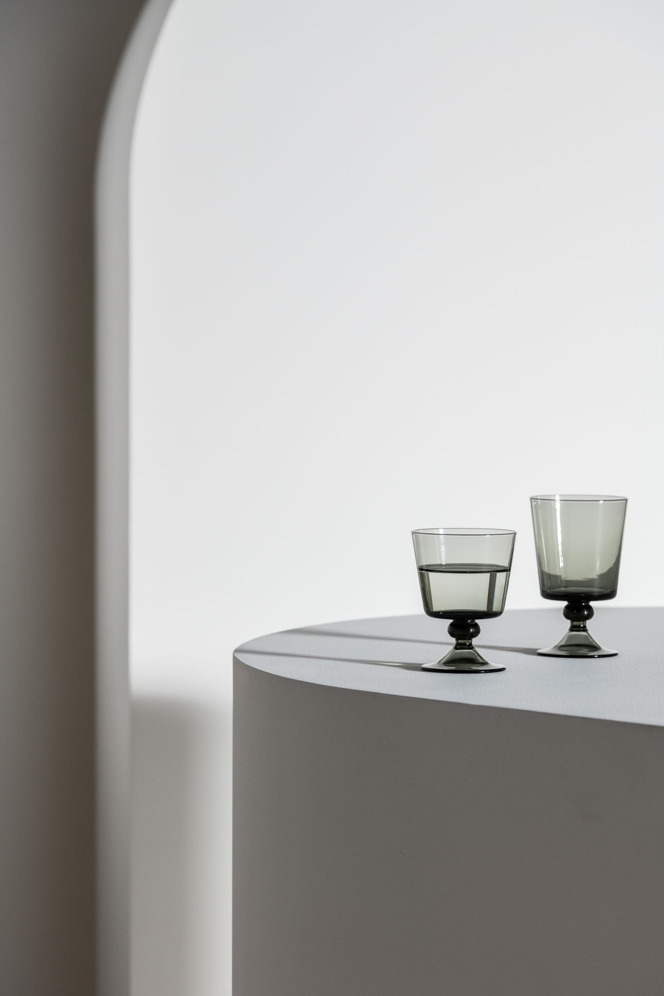Introducing "Ella" - a white wine glass featuring a modern twist with its smoke-colored, chalice-shaped design. Also available in a red wine glass variant.