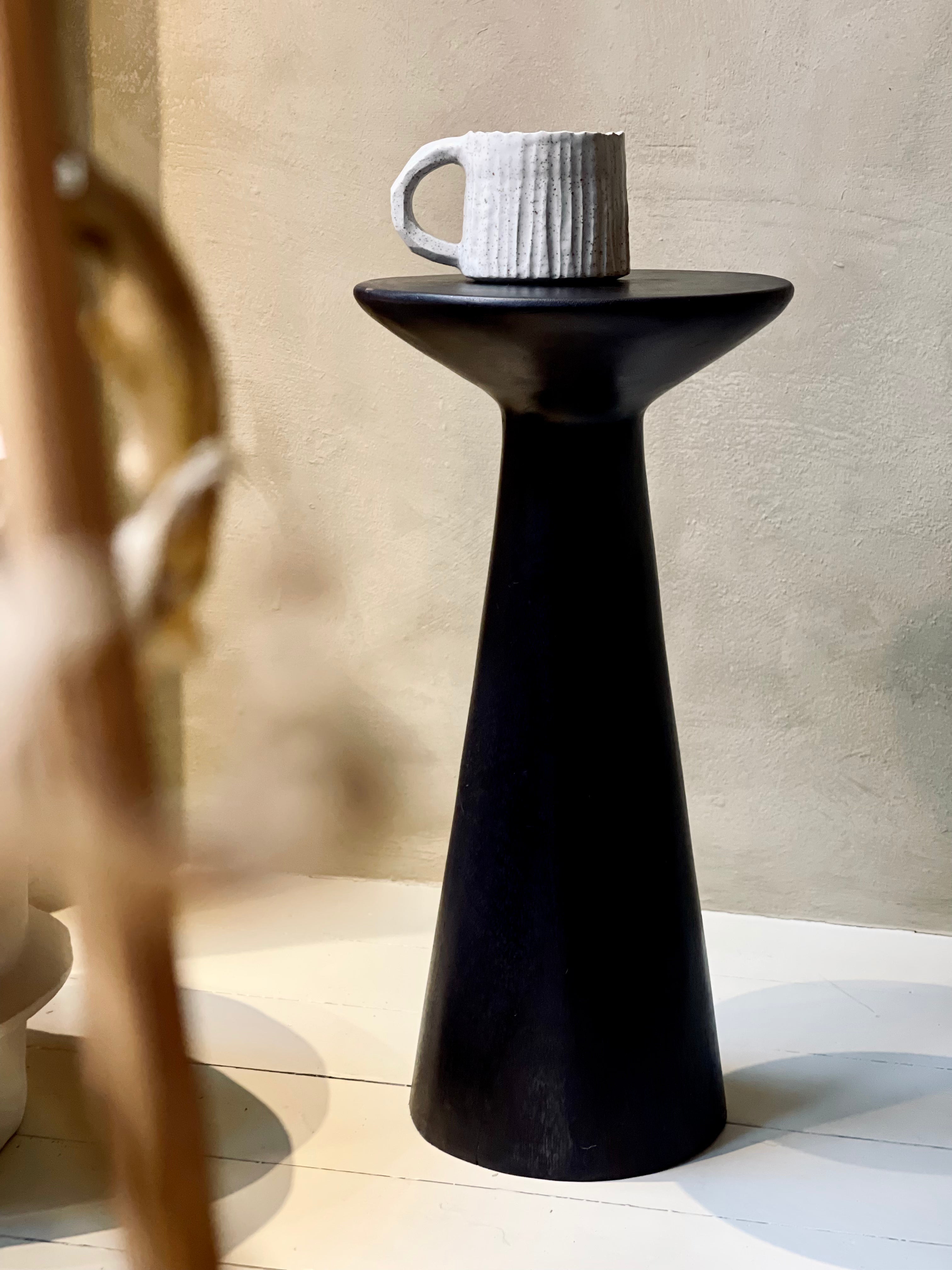 This side table is a true masterpiece of craftsmanship. Handmade in the Philippines, this unique wooden side table boasts a deep black finish that adds a touch of elegance to your space. Cone is not just a piece of furniture; it's a statement of artistry, showcasing the skill and dedication of the hands that created it.