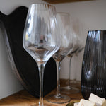 Introducing the elegant "Cristal Wine Glass". The whimsical shape of the bowl which smoothly follows its way to the stem of the glass adds a touch of uniqueness. Whether the glass is used for a nice wine or a cocktail, its sleek design adds ambiance and class to your table setting.