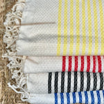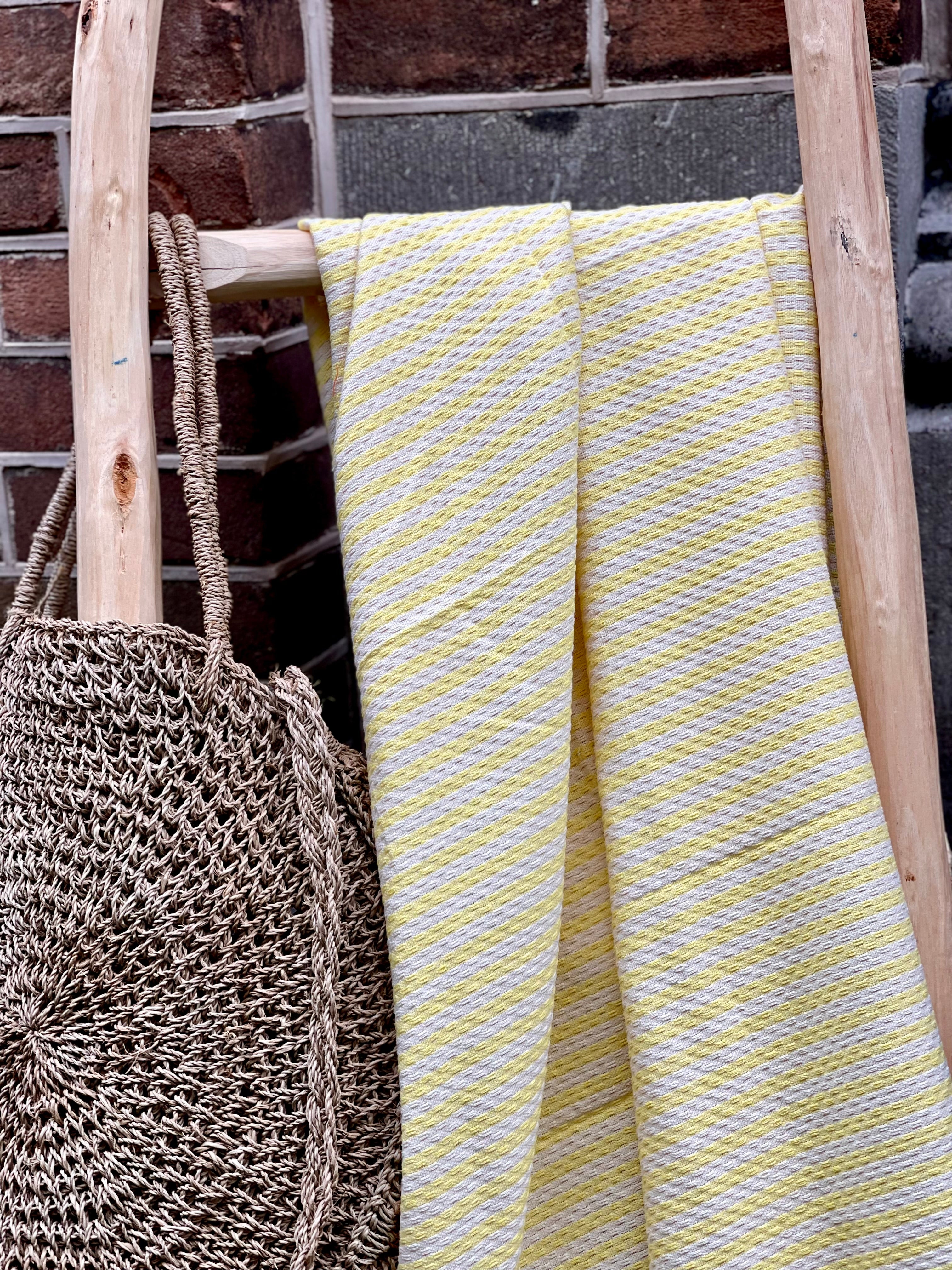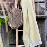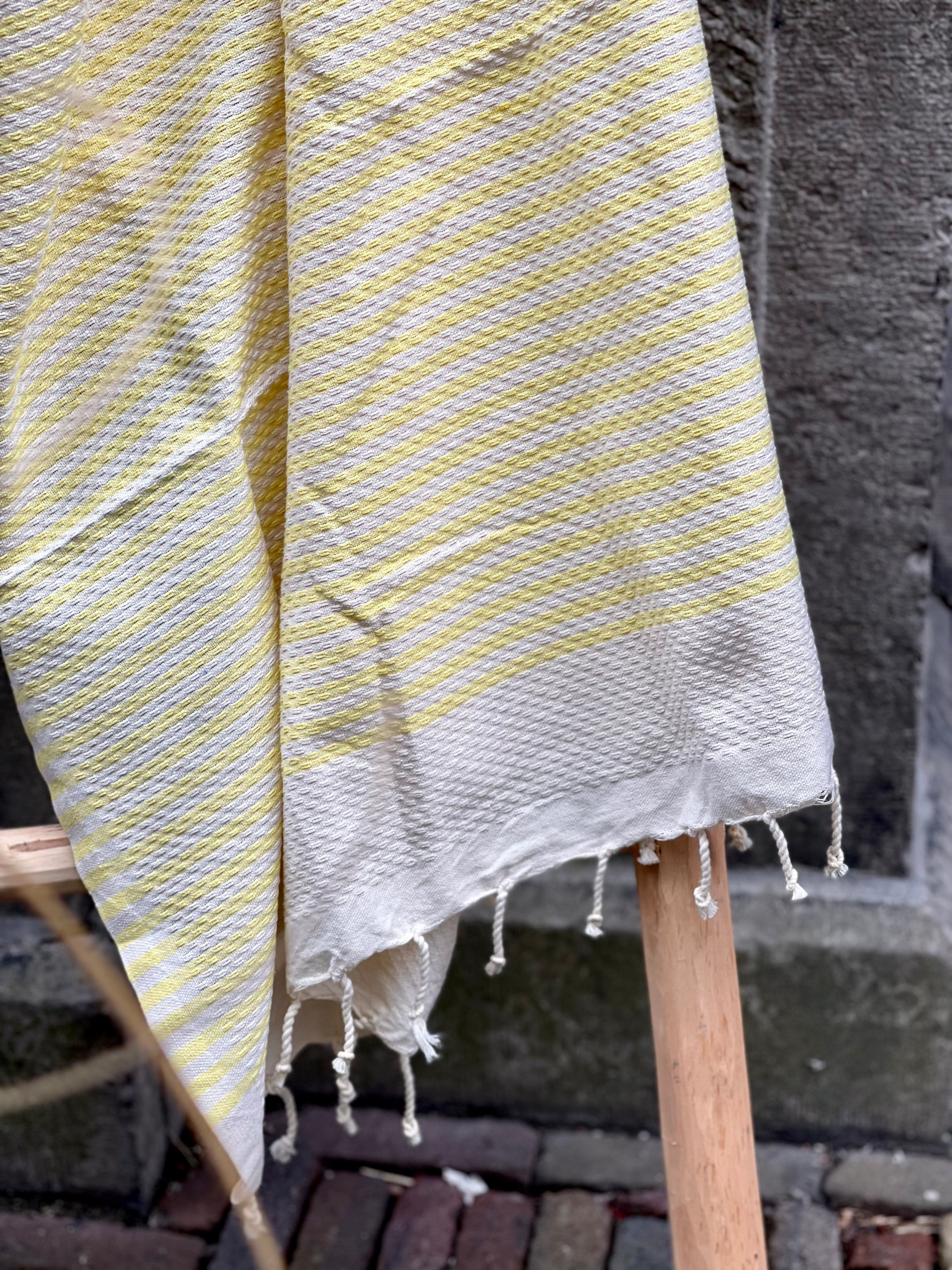 100 % Cotton Hamman towel with a fresh fine stripe pattern.