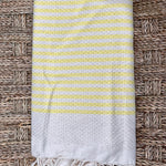 This Hamman towel has a fine waffle structure and twisted fringes on top and bottom.