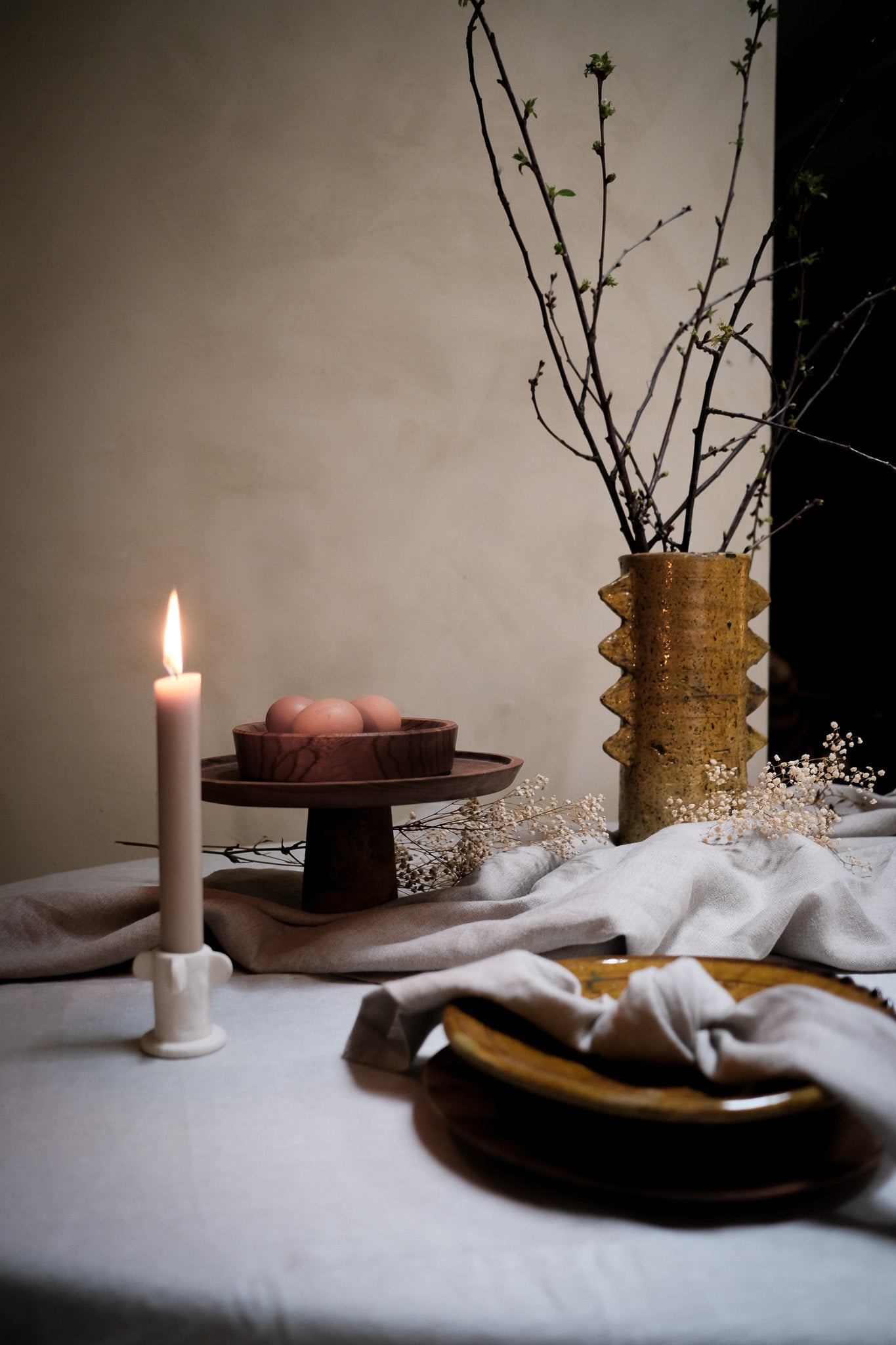 In the ovens the pieces are stacked together which causes little scars which in turn make each piece so unique.