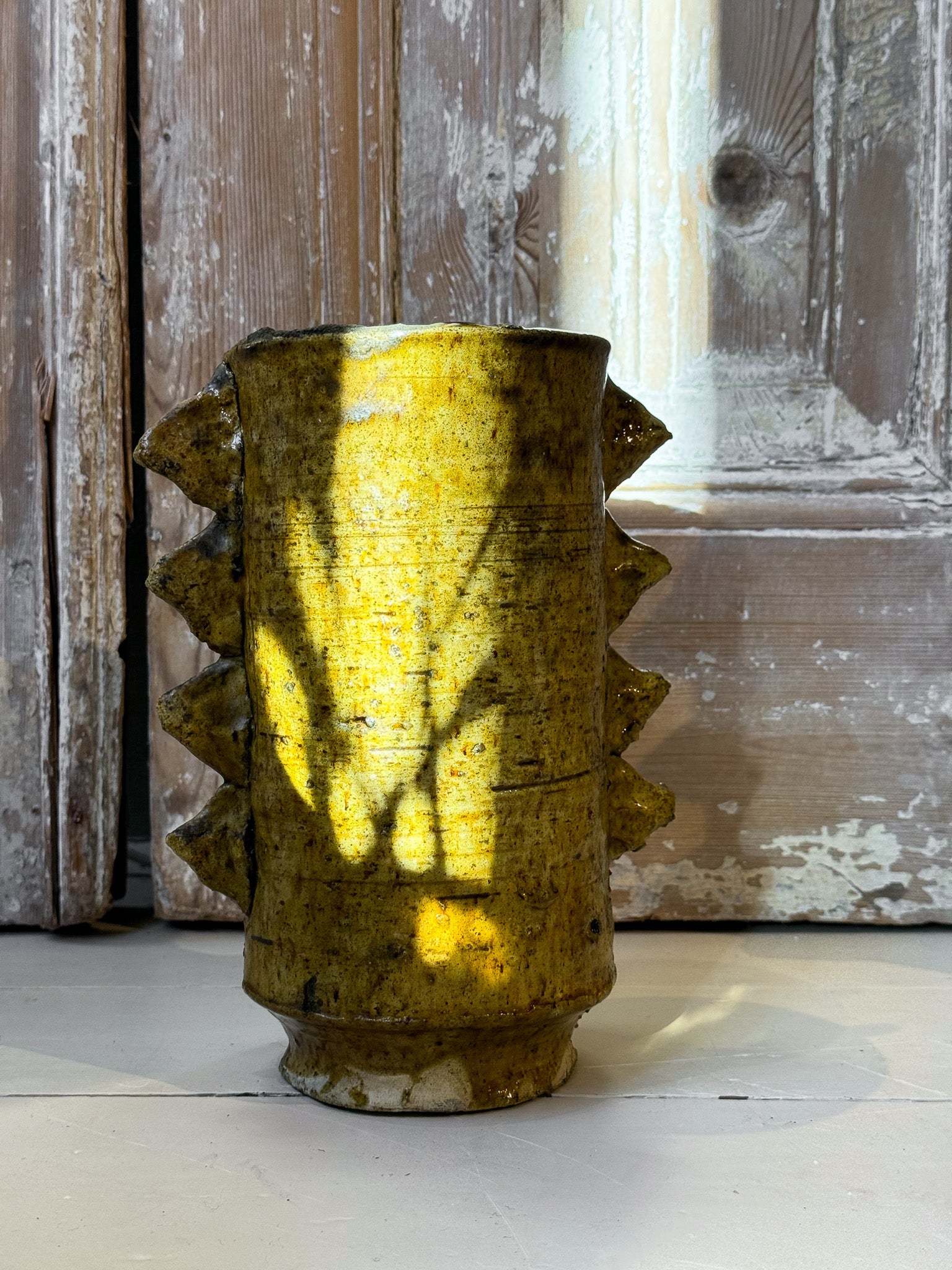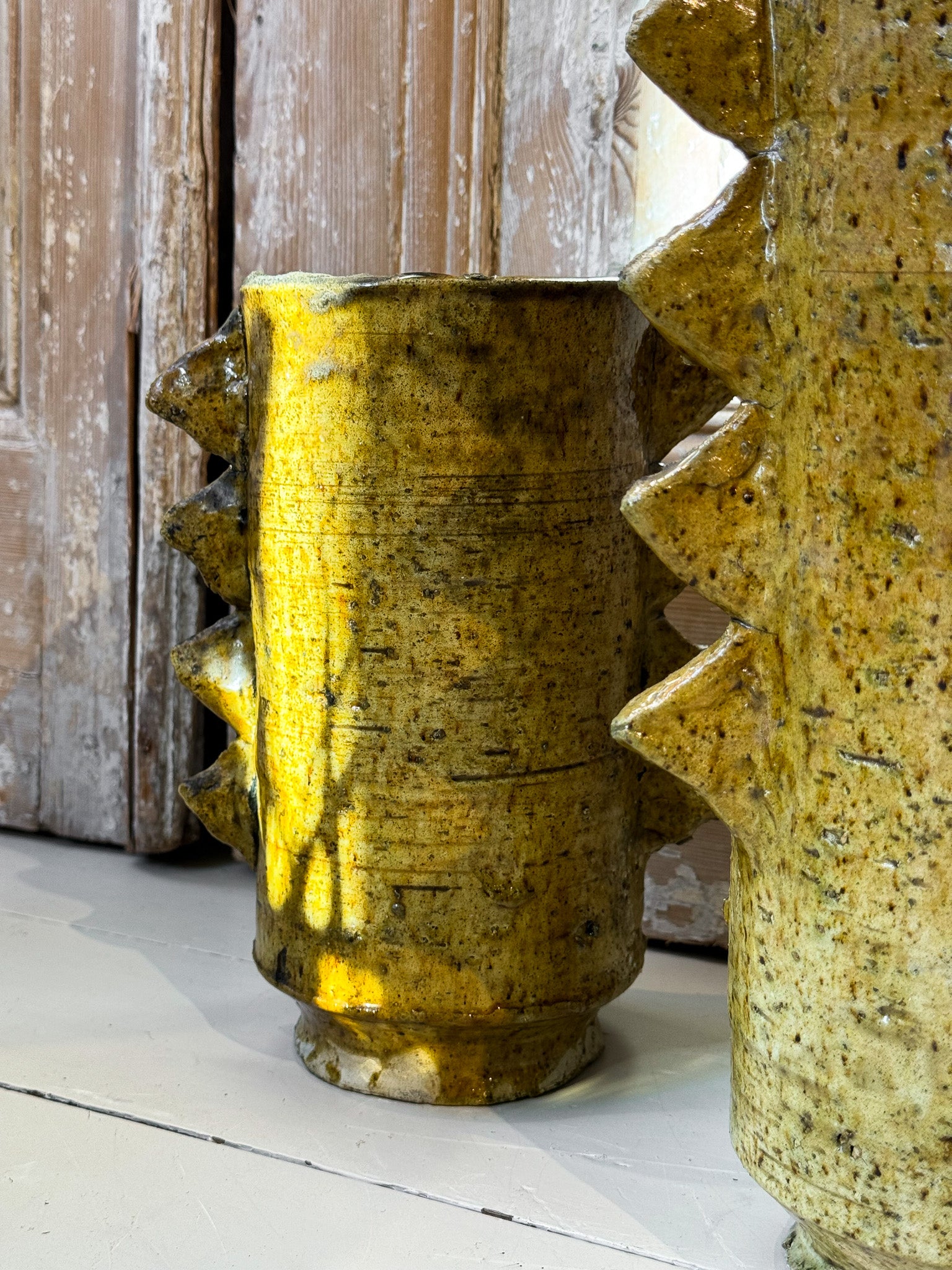 Handcrafted in the enchanting village of Tamegroute, each piece is lovingly shaped by hand, showcasing the region's distinctive moss green and oker hue. Fired using ancient techniques, these pieces emanate warmth and character.