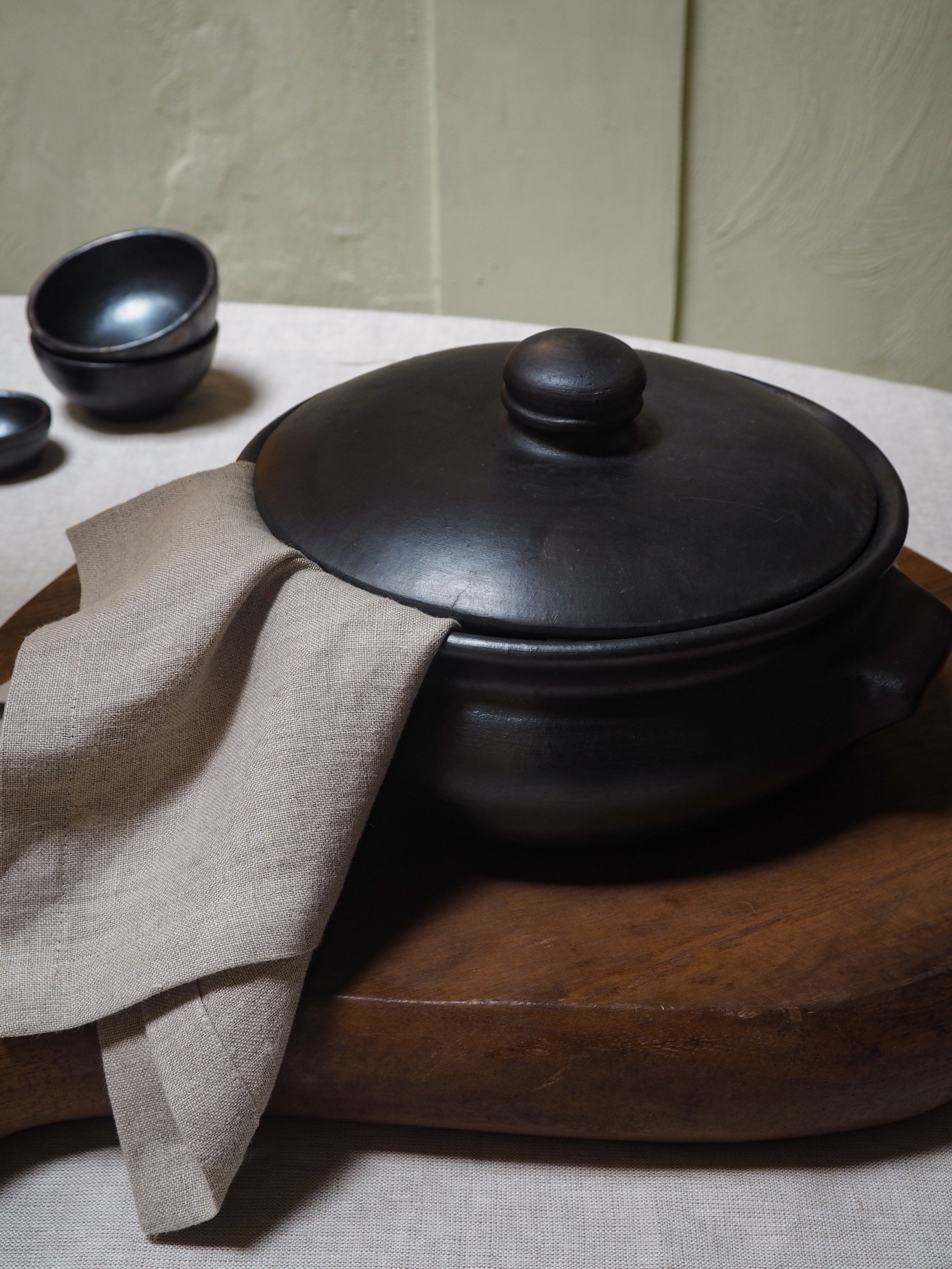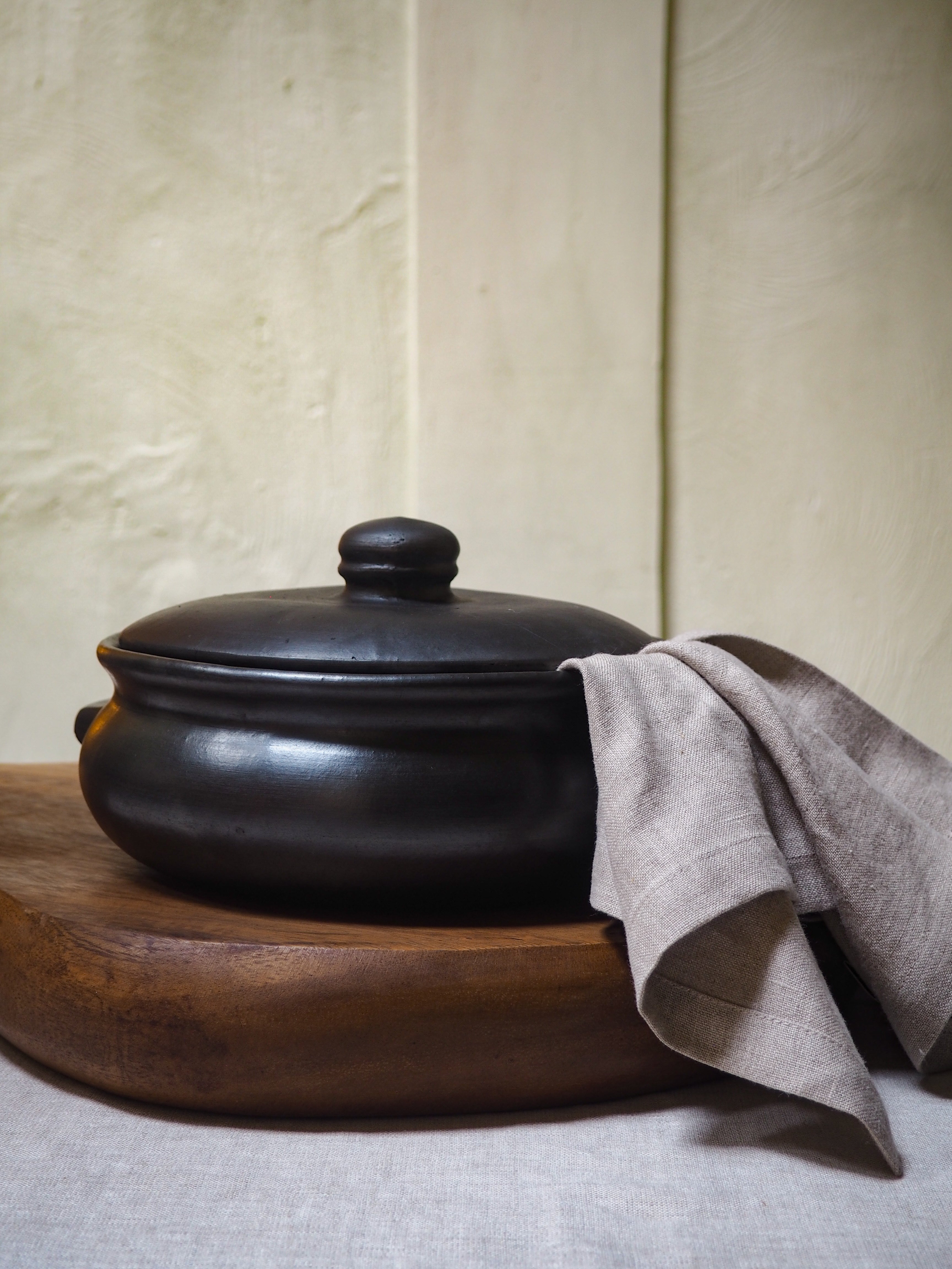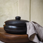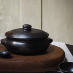 Meet the "Karan Burned Curry Pot" – a distinctive addition to our Burned Collection. Crafted from food-safe, burned terracotta, this black pot with a lid adds a touch of rugged elegance to your table. Ideal for serving a delicious curry or other culinary creations, the "Karan Burned Curry Pot" is not only functional but also a stylish addition to your dining experience.