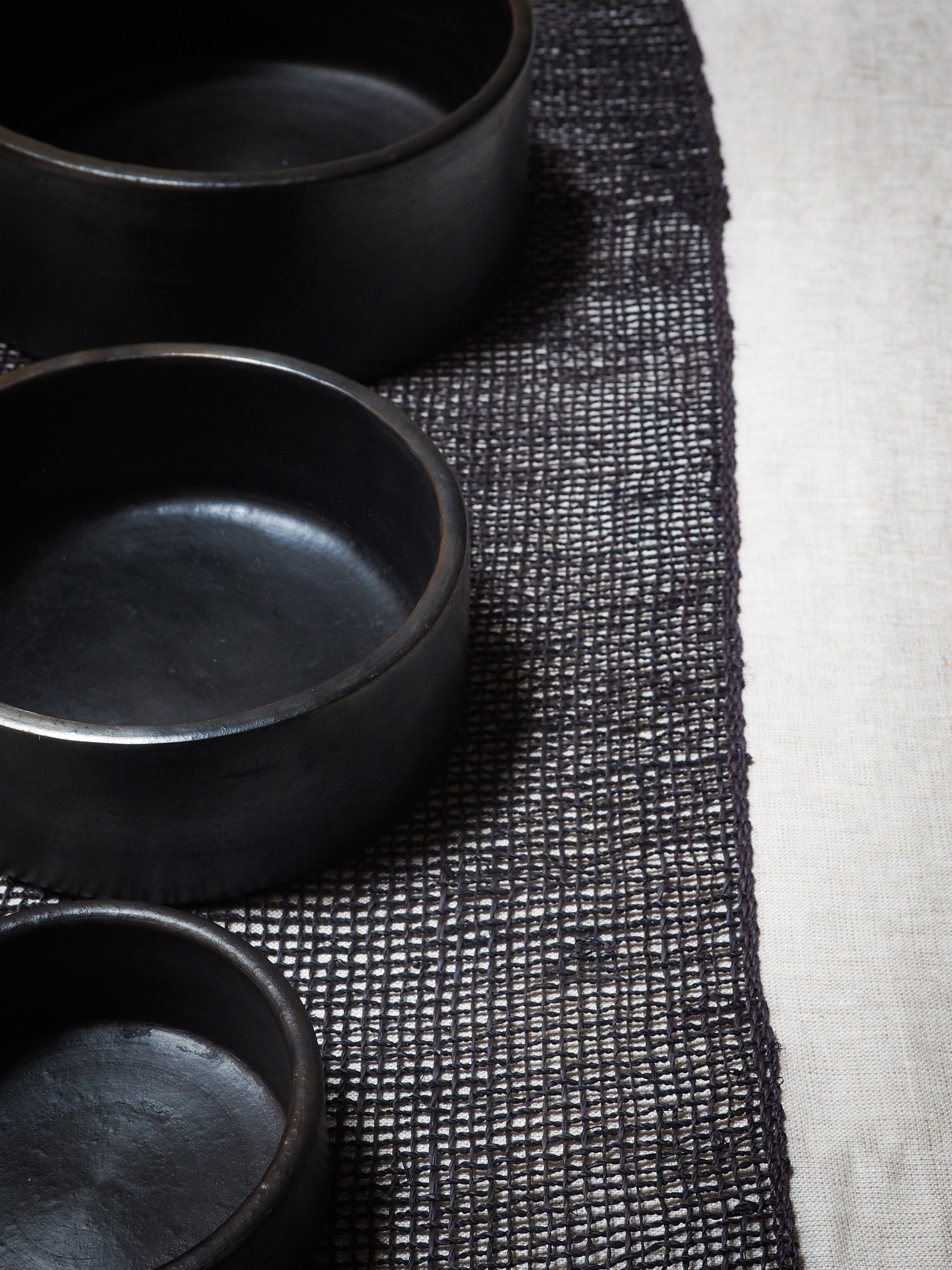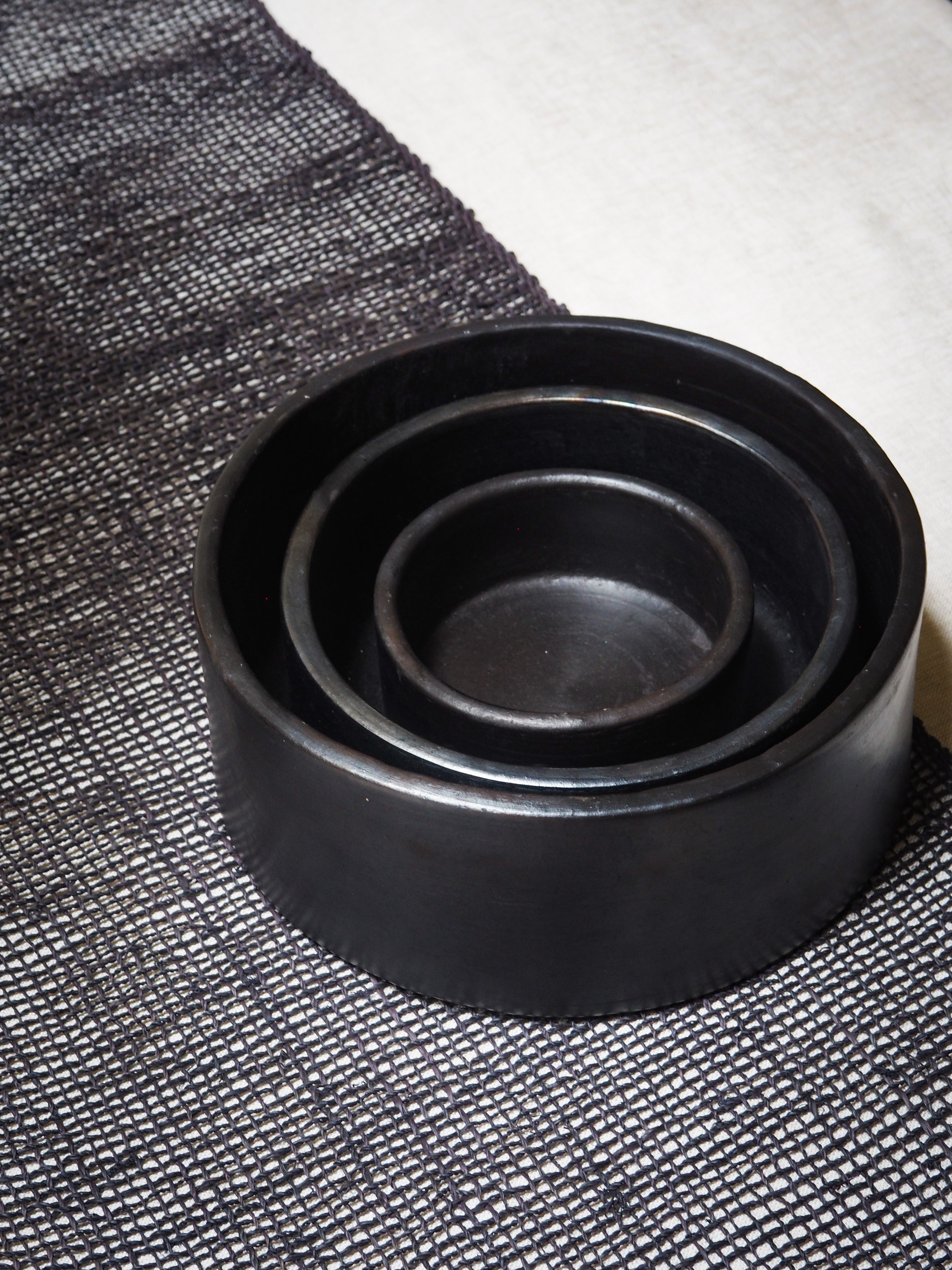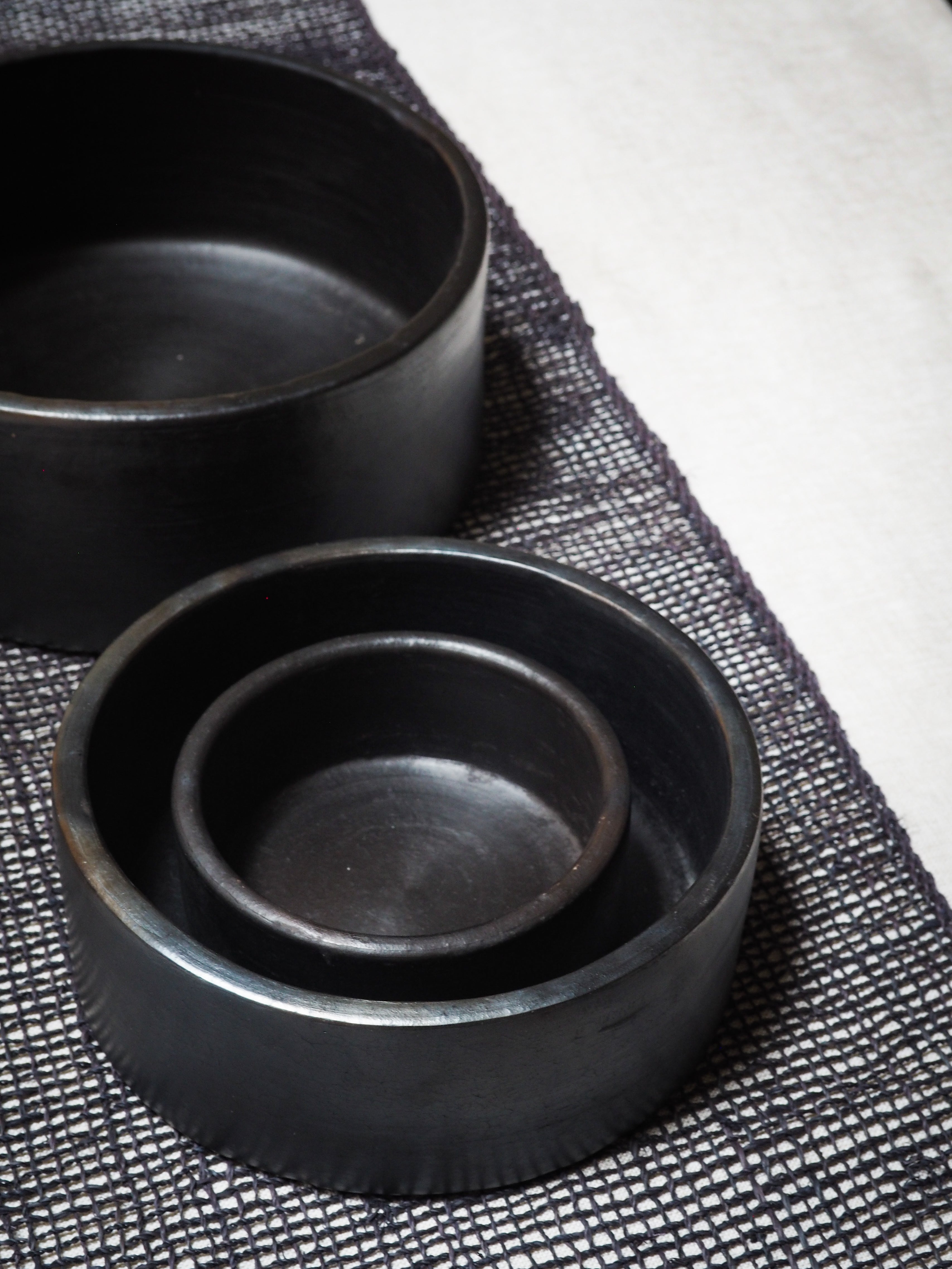 Introducing the "Karan Burned Cylinder Set" – a set of three exquisite pieces within our Burned Collection. Crafted from food-safe burned terracotta in a bold black finish, these cylinders offer a rugged yet sophisticated aesthetic. Ideal for a variety of uses, they add a touch of edgy charm to your tablescape.