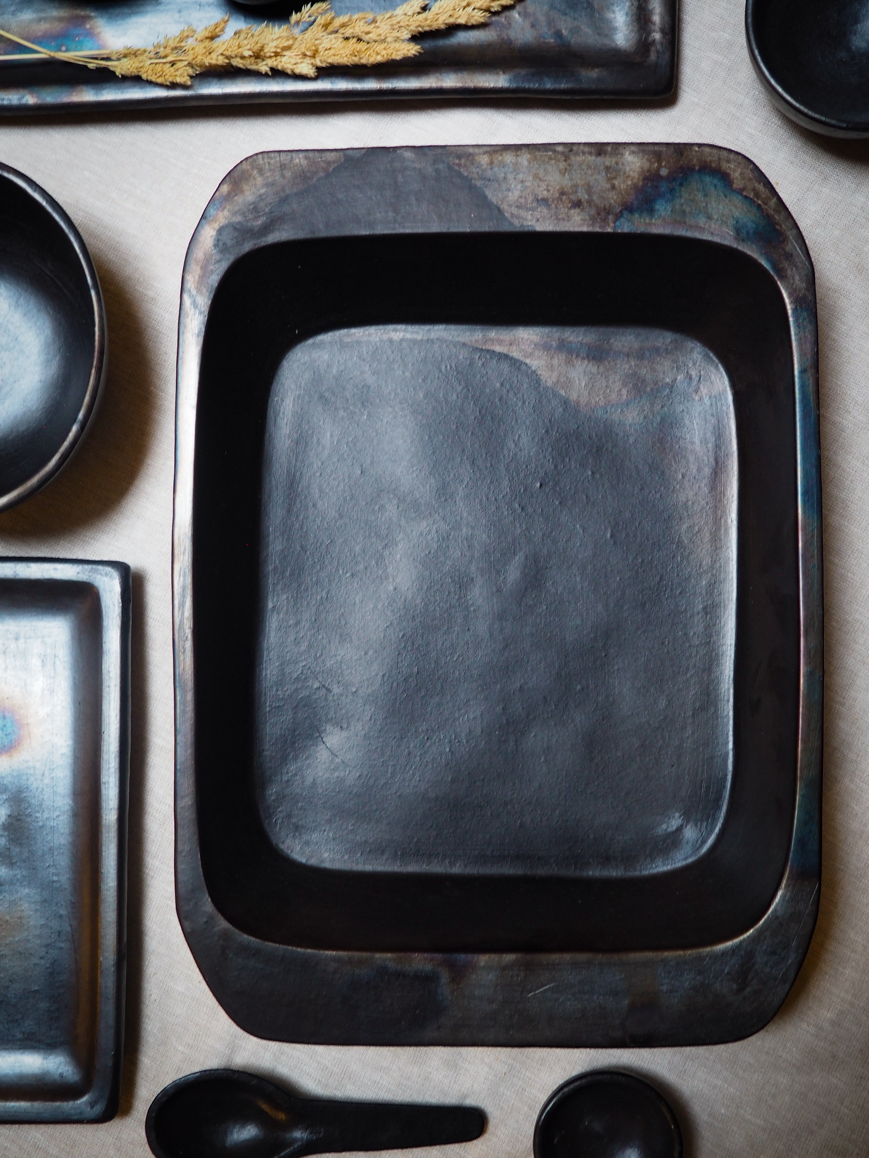 Introducing the "Karan Burned Oven Tray" – a captivating addition to our Burned Collection. Crafted from ovenproof burned terracotta with a bold black finish, this tray adds a rugged and eye-catching element to your table. Ideal for serving and baking, the "Karan Burned Oven Tray" is a versatile and stylish choice that's sure to make a statement.