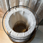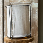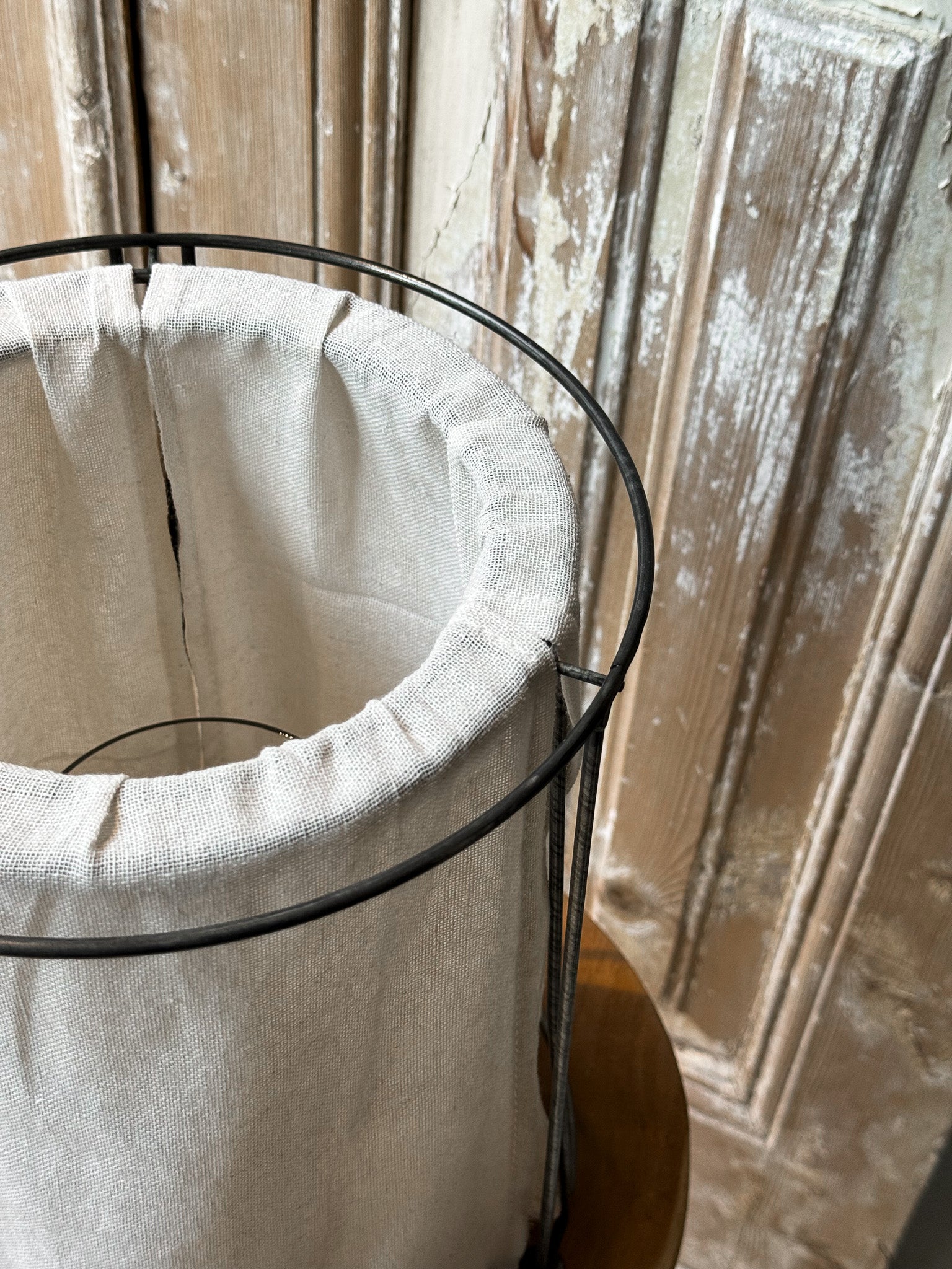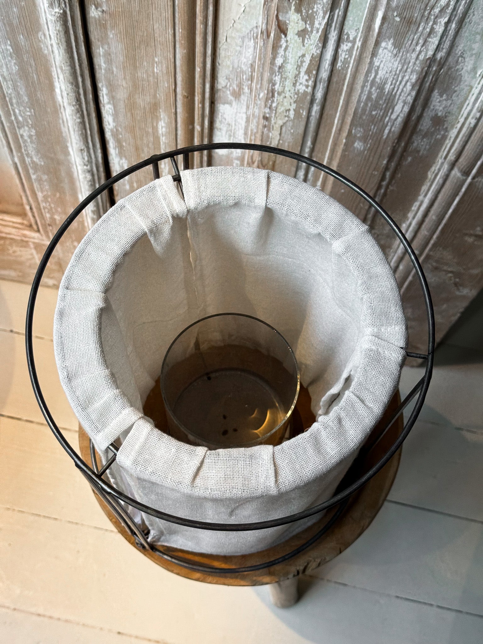 Illuminate your space with style using our beautiful lantern, featuring a combination of linen fabric and a sleek black metal frame. With its rounded shape and inner glass holder, you can safely light tealights or pillar candles. The linen fabric creates a lovely translucent effect, adding a touch of warmth to any room.