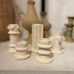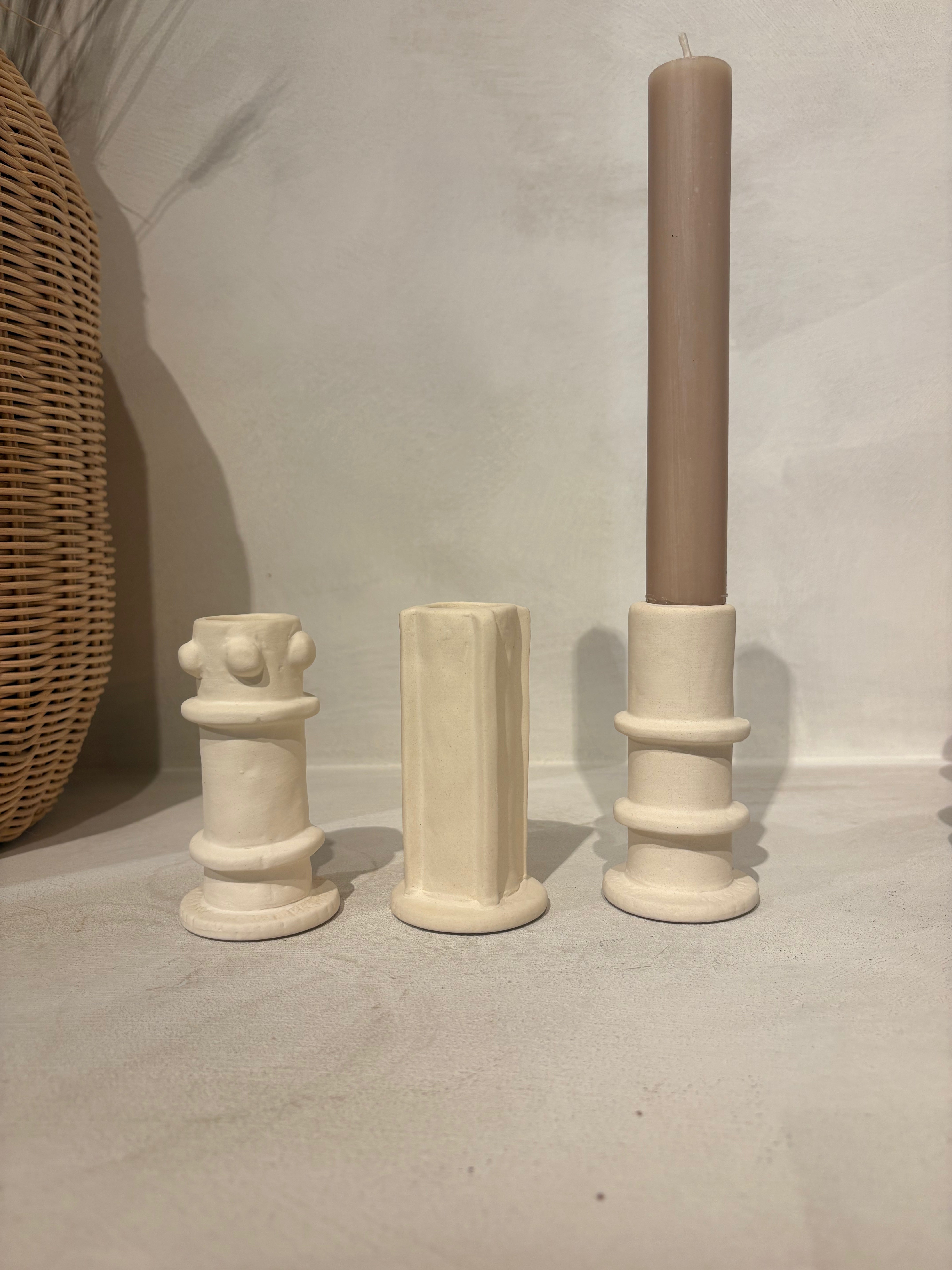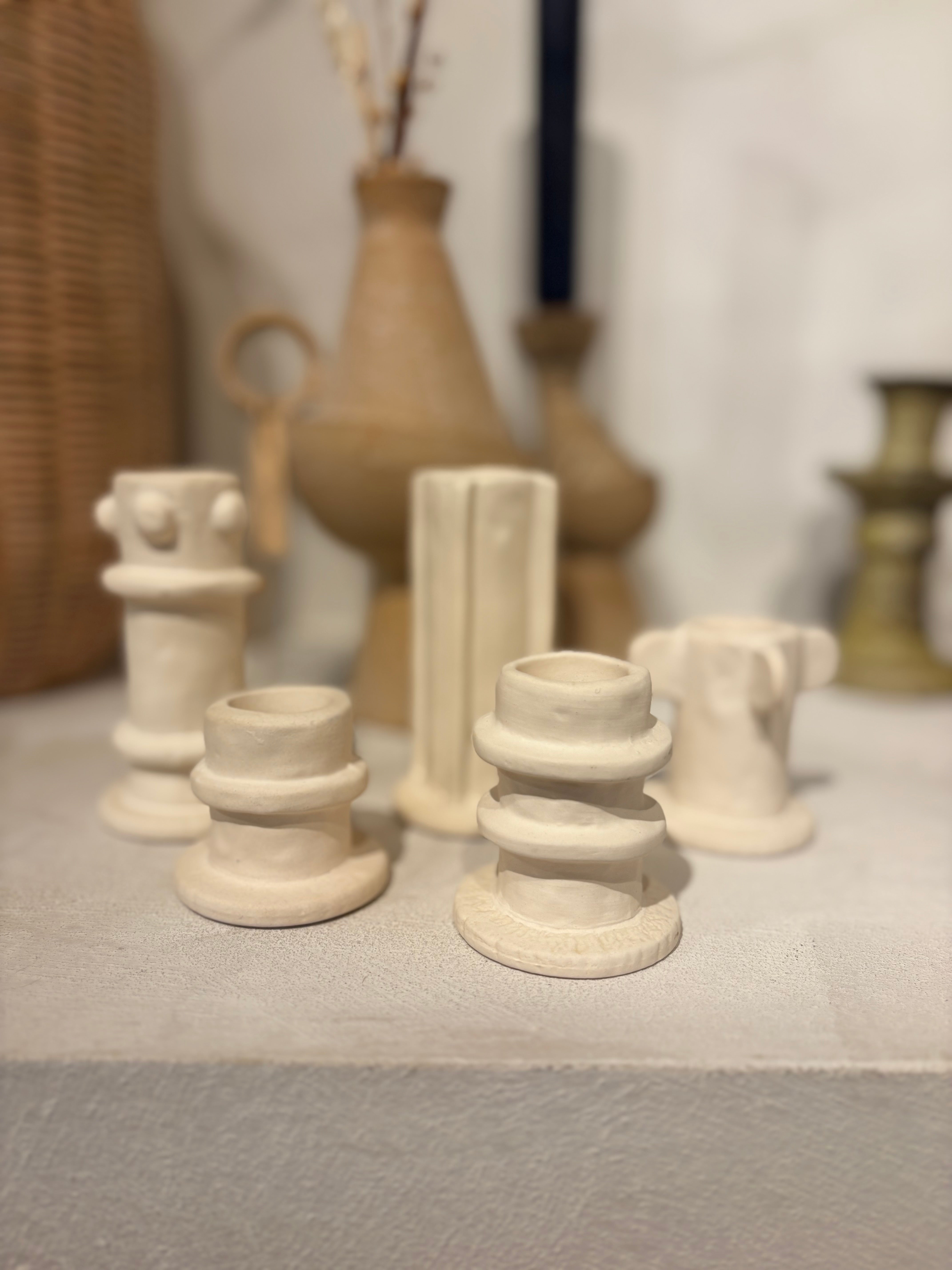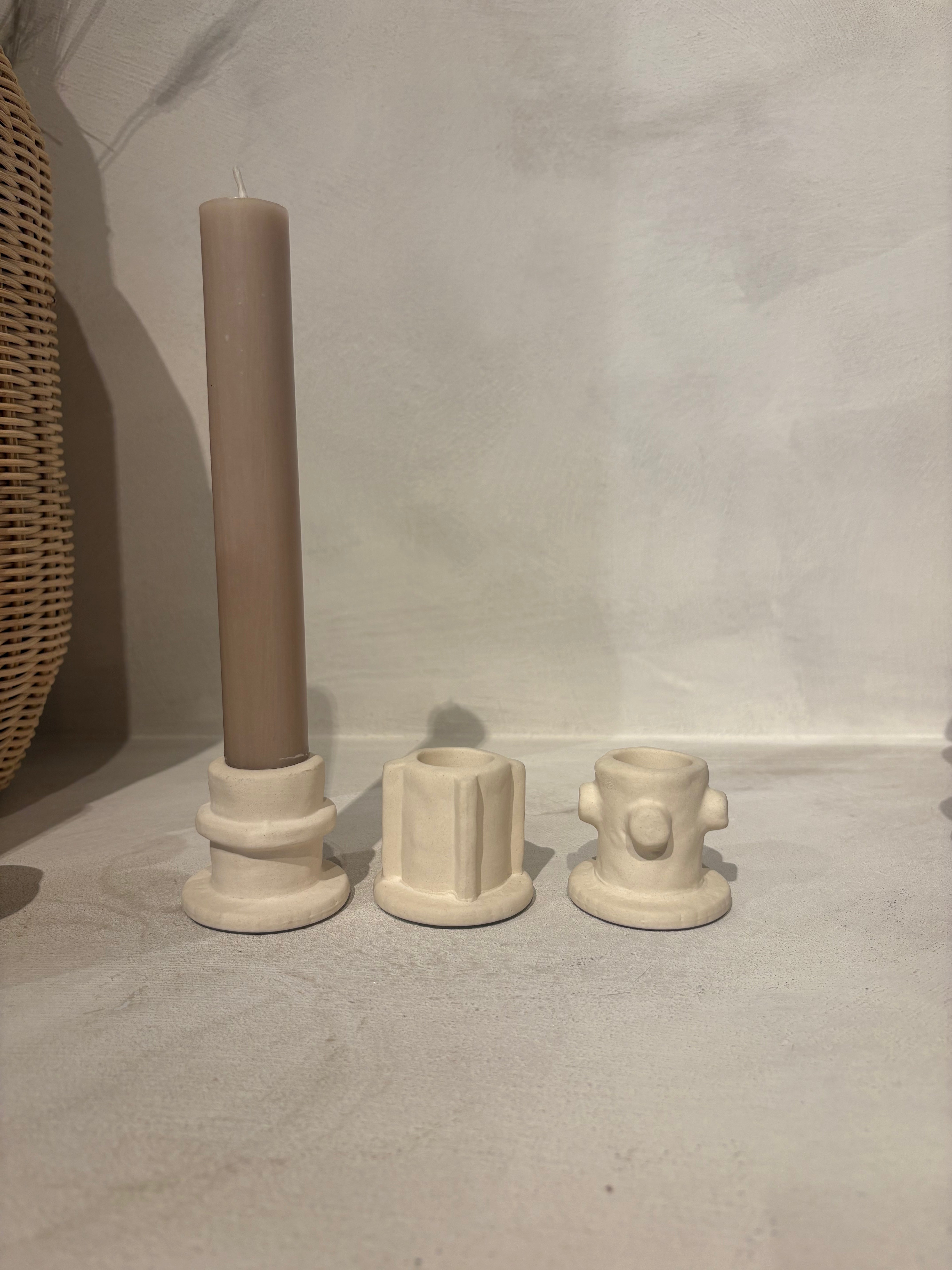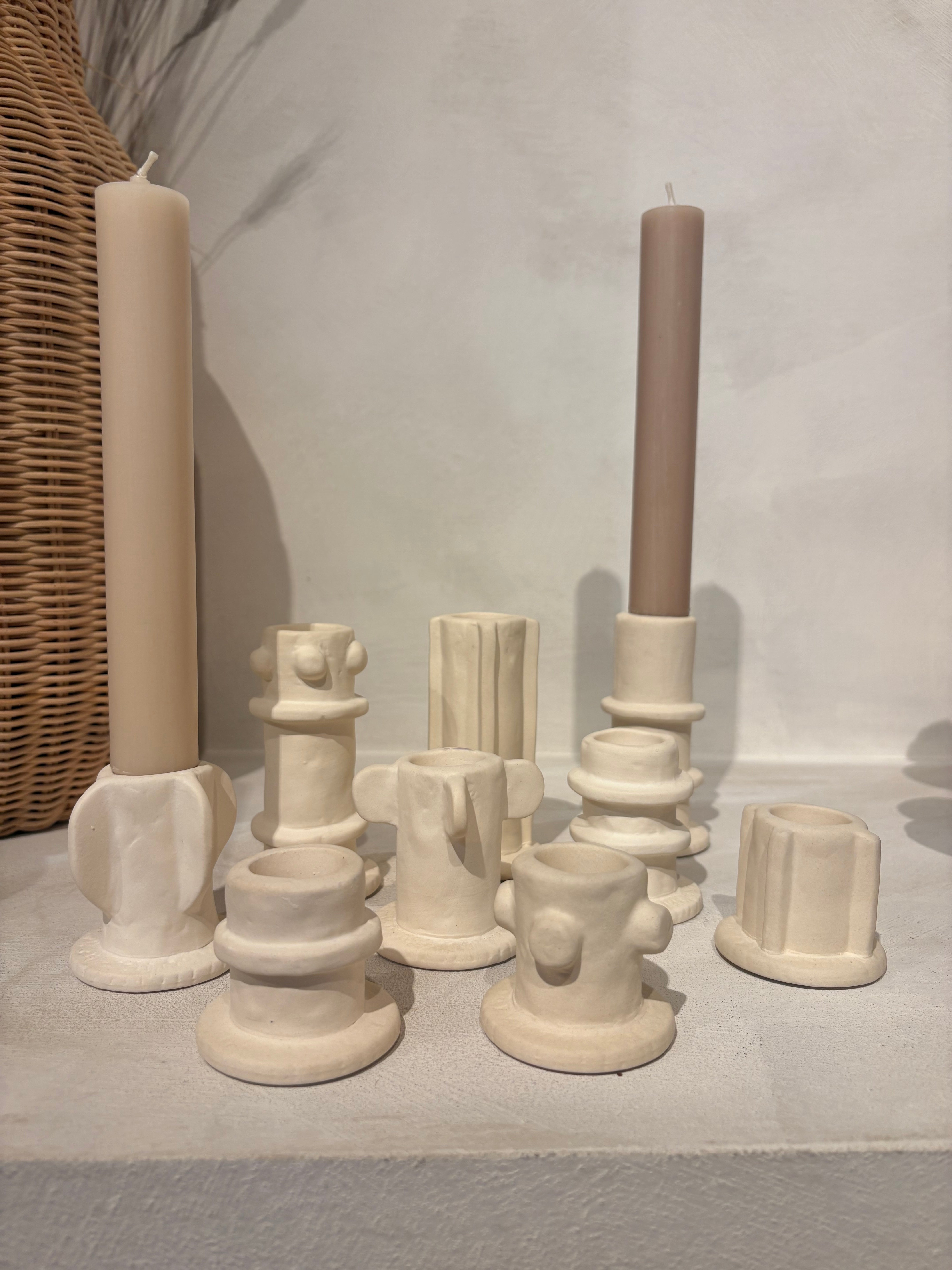 Deze speelse kandelaren geven een creatieve en unieke twist aan je interieur. Elk stuk heeft een handgemaakte, organische uitstraling waardoor geen enkele houder hetzelfde is. Ze zijn verkrijgbaar in drie maten – low, medium en high – en daardoor perfect om te mixen en matchen. Zet ze samen voor een speels en stijlvol effect, of laat er één subtiel shinen op tafel of in een hoekje. Ideaal om warmte en karakter in je huis te brengen!