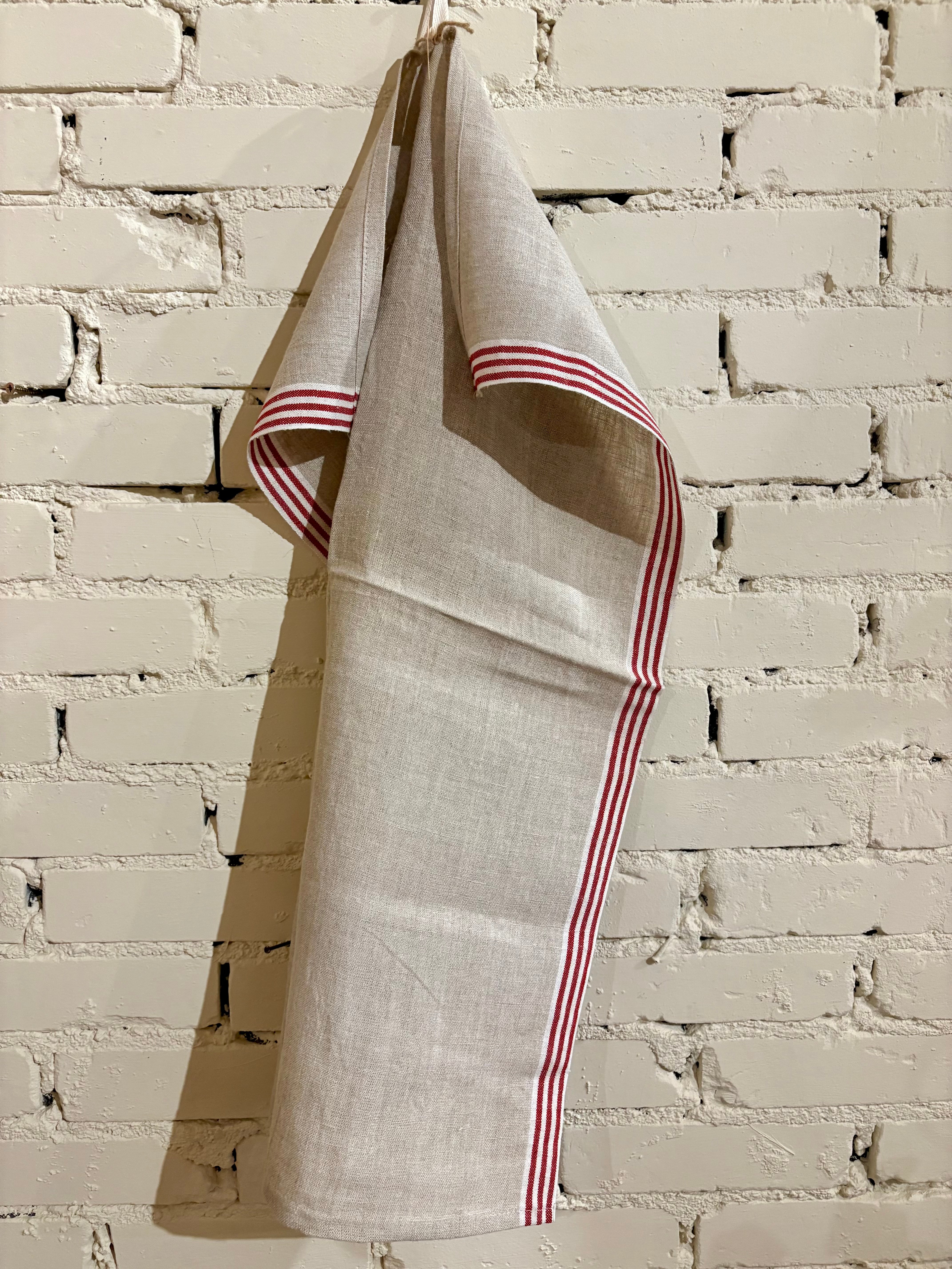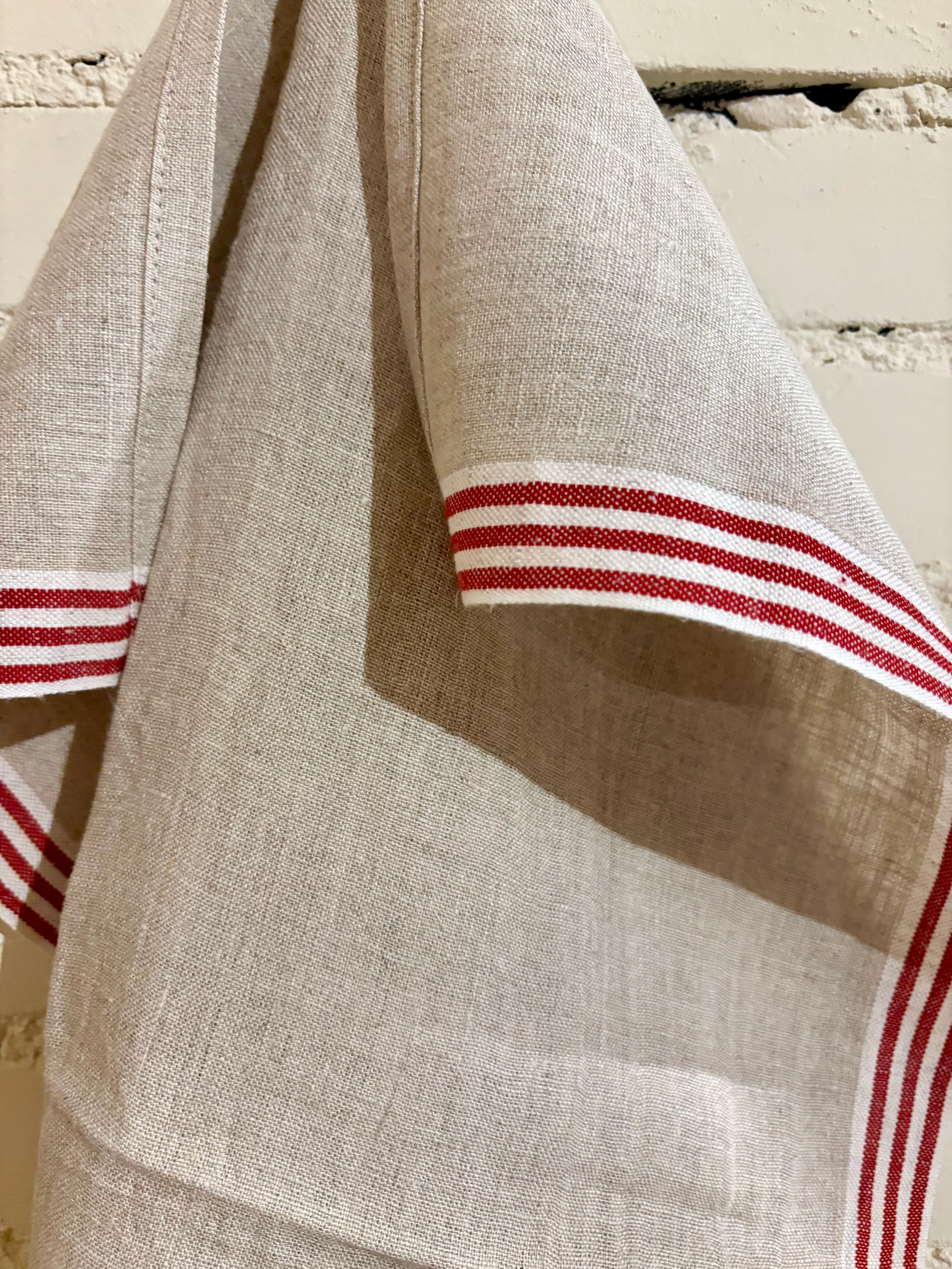 Deze linnen theedoek is een echte keukenklassieker. Gemaakt van hoogwaardig, natuurlijk linnen dat stevig én sneldrogend is. De rode strepen langs de rand geven een tijdloze en stijlvolle uitstraling, waardoor de doek niet alleen praktisch maar ook decoratief is.