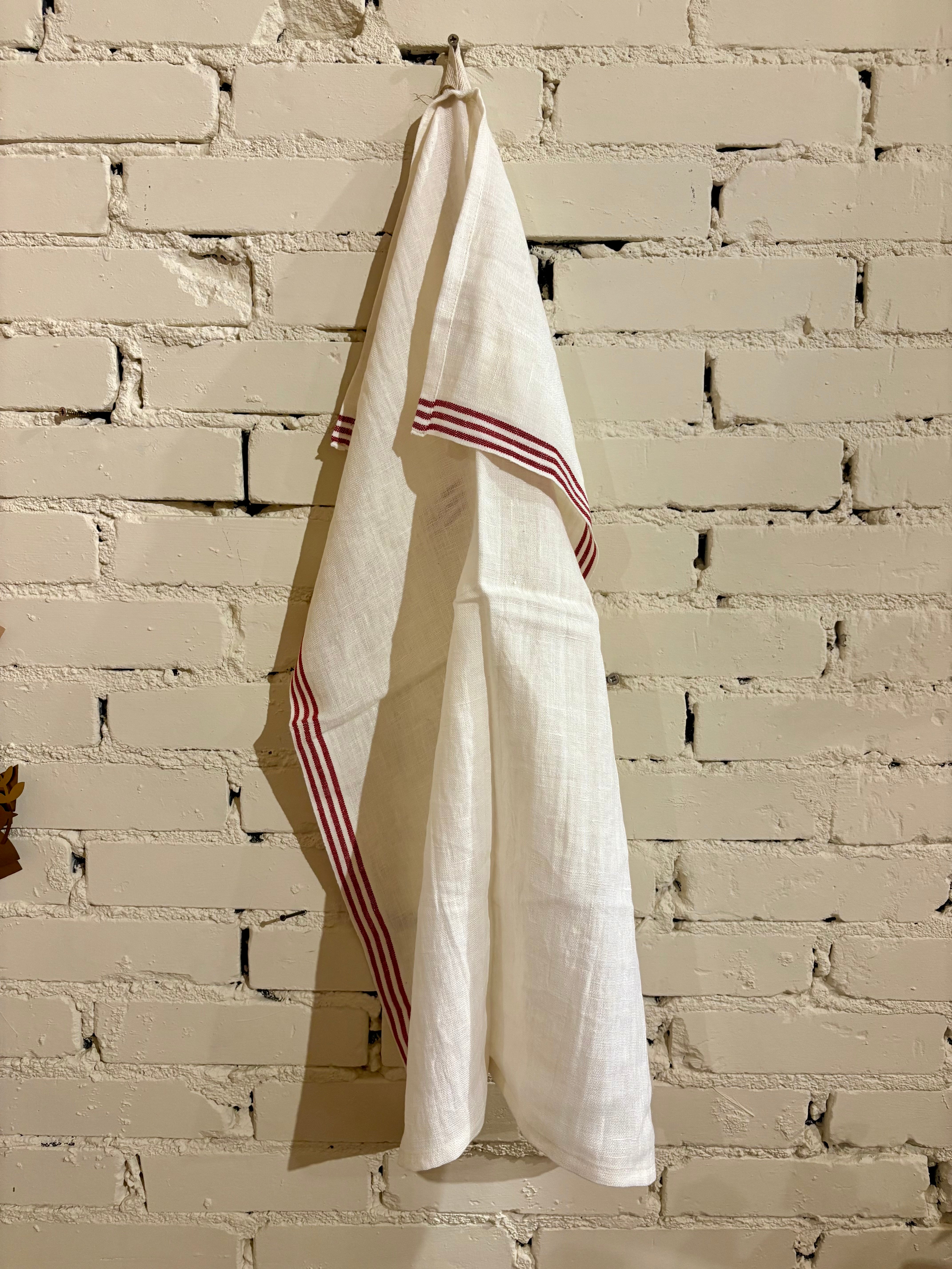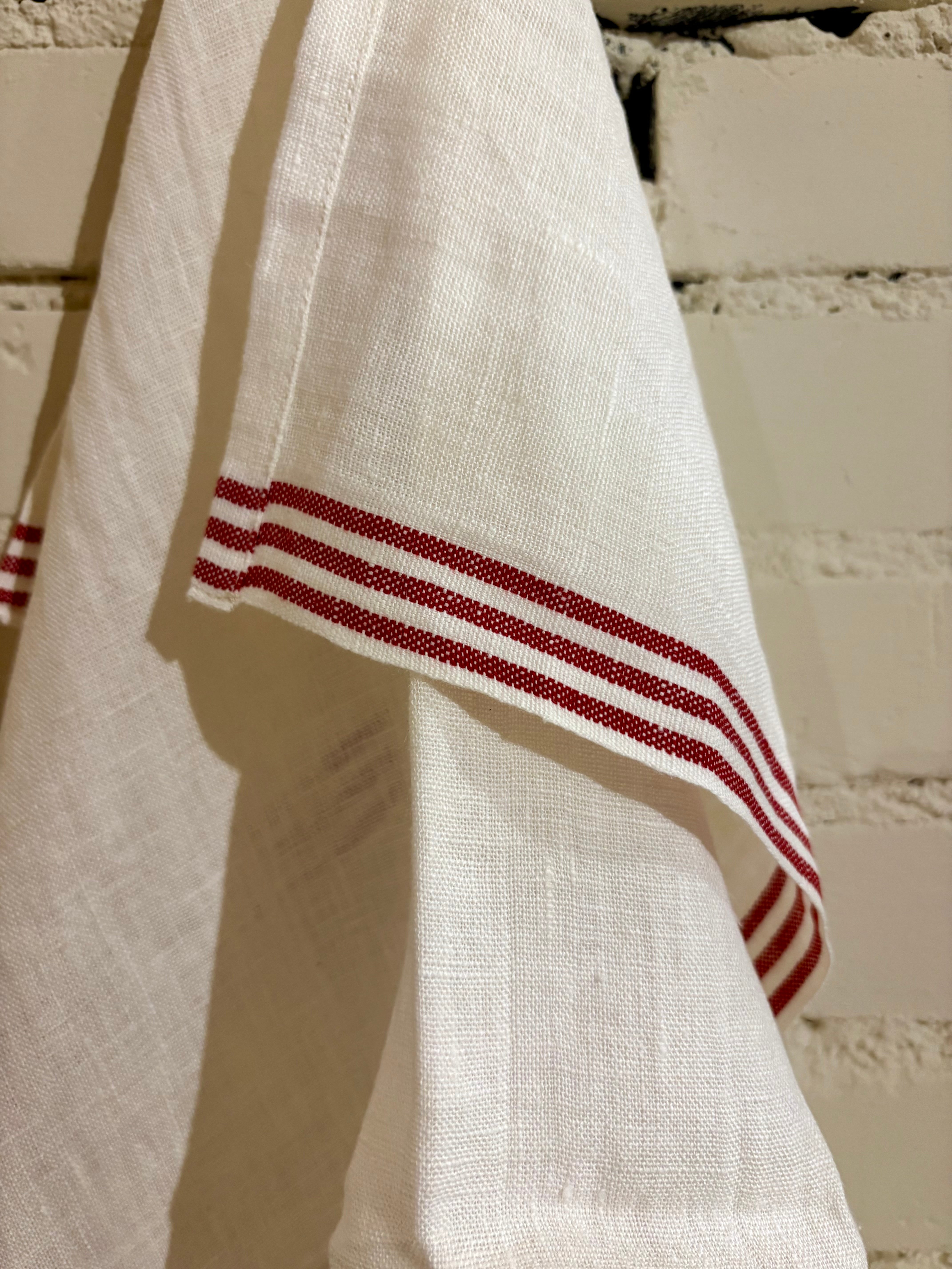 Deze linnen theedoek is een echte keukenklassieker. Gemaakt van hoogwaardig, natuurlijk linnen dat stevig én sneldrogend is. De rode strepen langs de rand geven een tijdloze en stijlvolle uitstraling, waardoor de doek niet alleen praktisch maar ook decoratief is. Perfect voor dagelijks gebruik en een duurzame keuze die na elke wasbeurt nog mooier wordt.