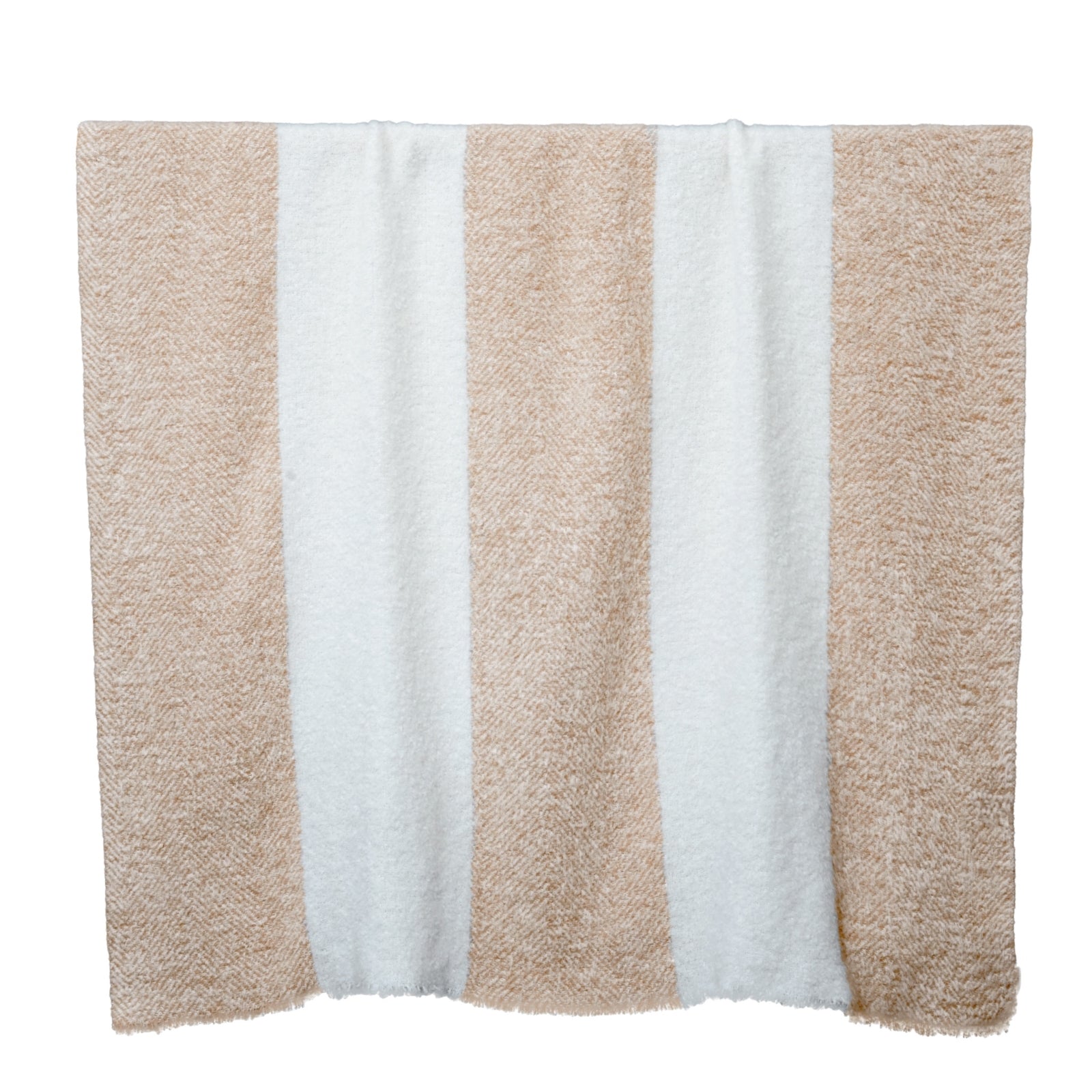 Voeg een vleugje elegantie en warmte toe aan je interieur met deze prachtige wollen plaid in goud-witte tinten. Gemaakt van hoogwaardige wol, voelt hij ultra zacht aan en straalt pure luxe uit. Perfect om om je heen te slaan tijdens een frisse avond of als stijlvolle accessoire op de bank of het bed.