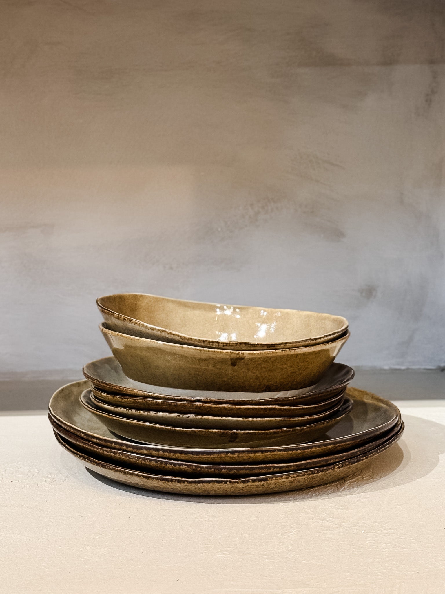 This stoneware soup plate, with its organic shape and speckled finish, brings a natural elegance to your table experience. Part of a collection that includes plates, bowls and mugs, it’s perfect for creating a cohesive and timeless table setting. Finished with a reactive glaze, each piece has a unique and characterful appearance.