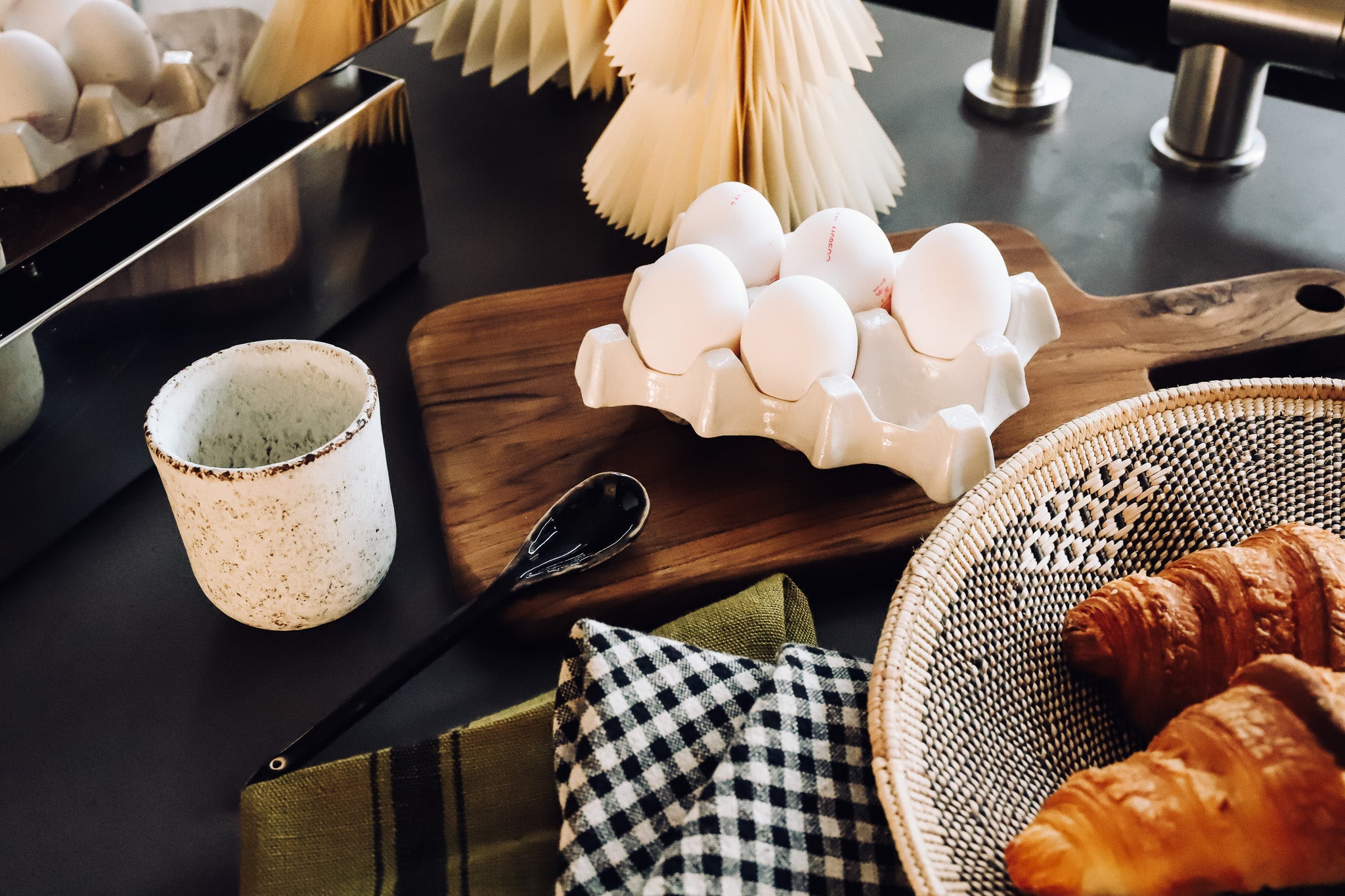 This white-glazed stoneware egg dish combines functionality with elegance. Perfect for storing eggs while adding a chic touch to your breakfast table or kitchen counter. Available in two sizes, fitting 6 or 10 eggs.