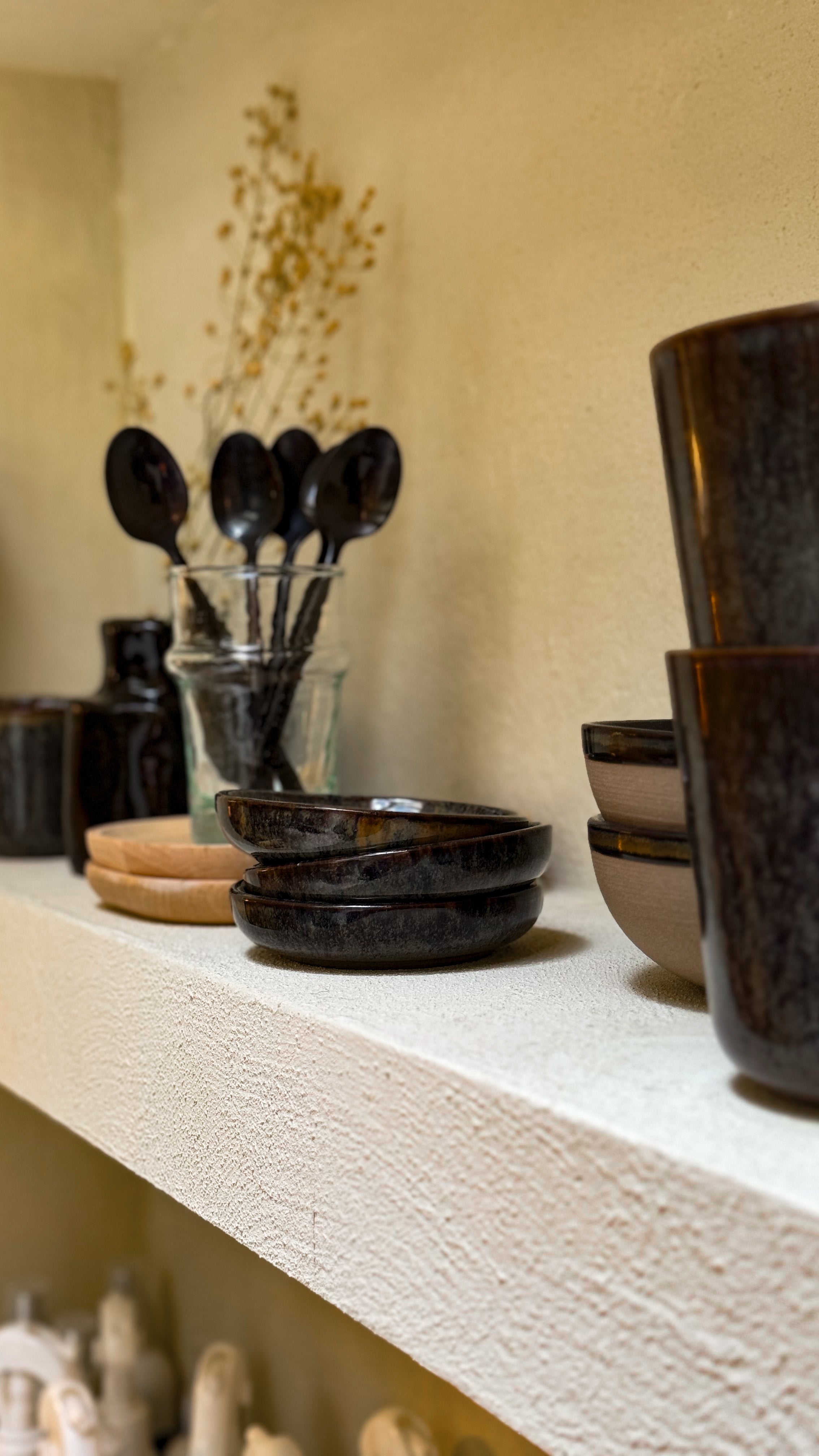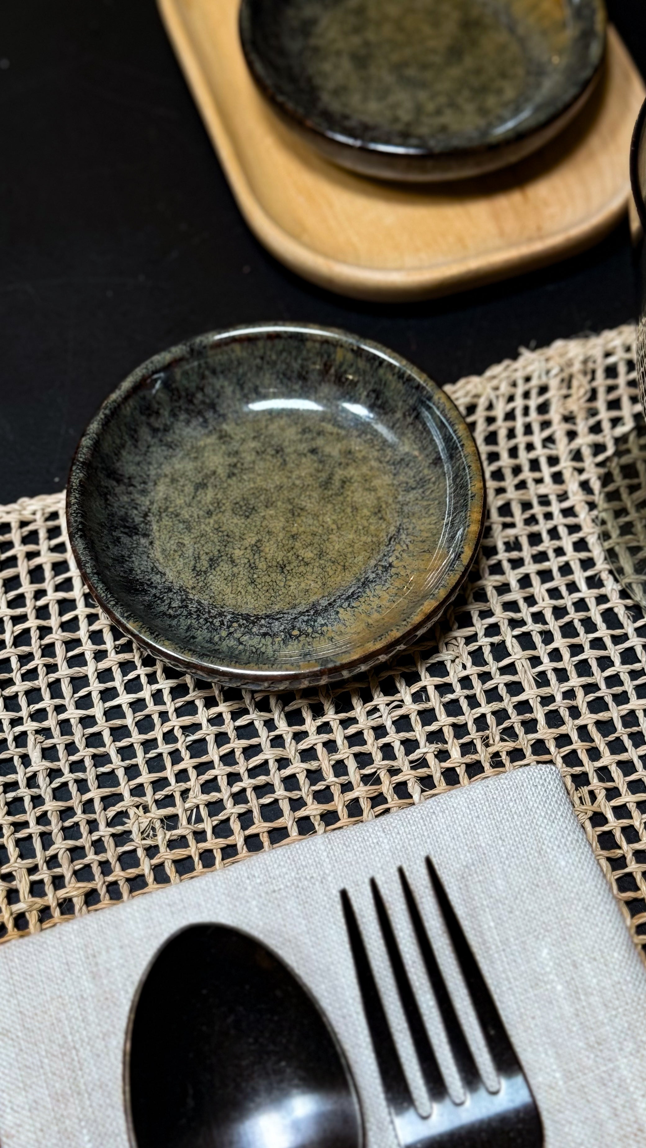 Introducing "Oku Olive Plate," a part of the Oku collection, featuring colors inspired by the natural hues of Zeeland. Complete your table setting with this dish, perfect for olives, salt, or other condiments, adding a touch of nature to your dining experience.