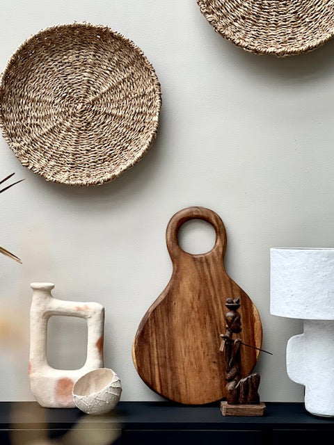 Unieke en handgemaakte tapasplank, vervaardigd uit duurzaam Molavehout uit de Filipijnen. The James selecteert elk stuk met zorg en koopt deze op eerlijke, fairtrade wijze in. De organische vorm en het ambachtelijke karakter maken elke plank een one of a kind item. Geen twee exemplaren zijn hetzelfde: iedere plank heeft unieke nerven en kleurschakeringen – kleine variaties ten opzichte van de foto zijn daarom volkomen normaal en onderstrepen het authentieke karakter.