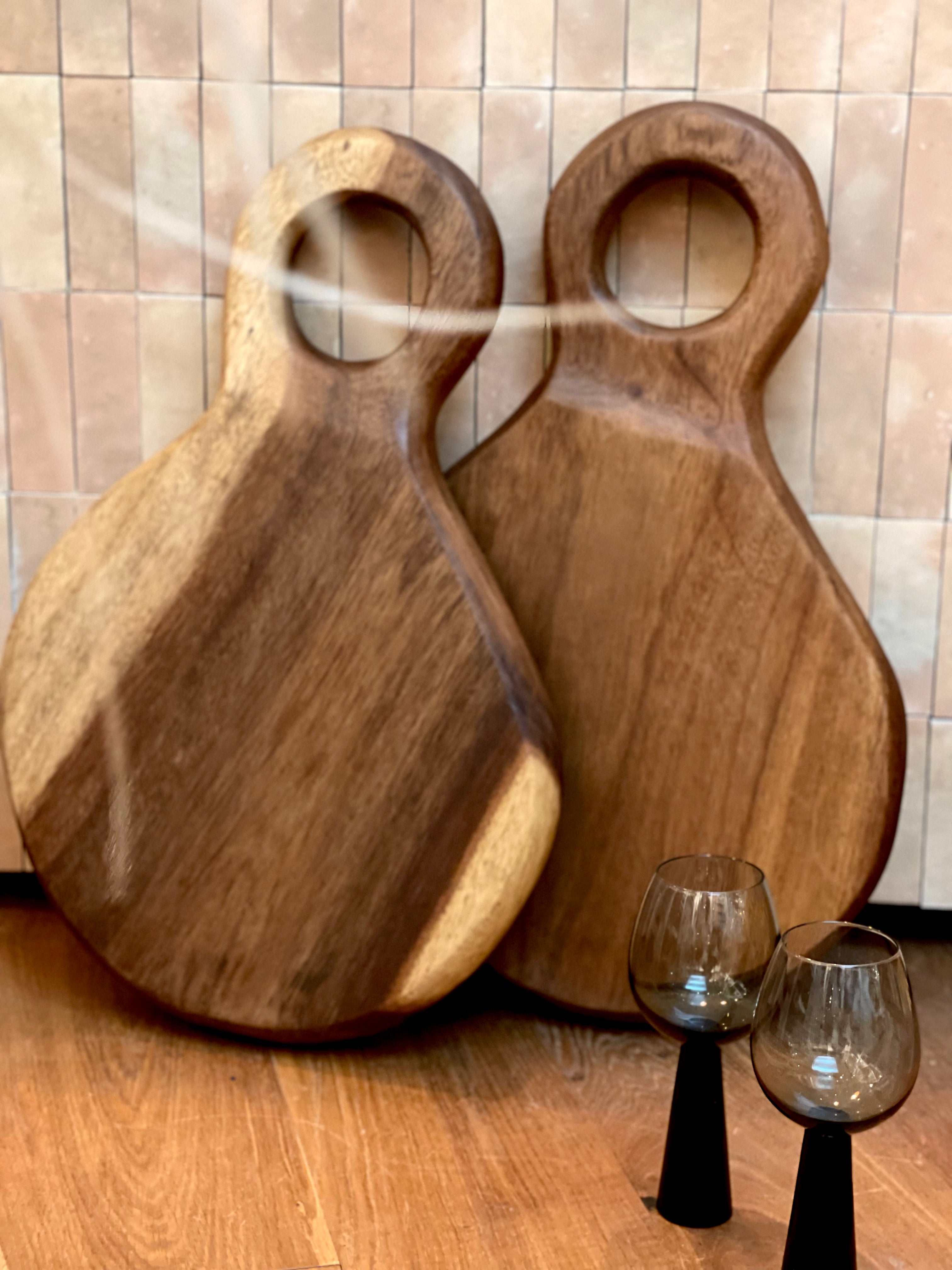 Unieke en handgemaakte tapasplank, vervaardigd uit duurzaam Molavehout uit de Filipijnen. The James selecteert elk stuk met zorg en koopt deze op eerlijke, fairtrade wijze in. De organische vorm en het ambachtelijke karakter maken elke plank een one of a kind item. Geen twee exemplaren zijn hetzelfde: iedere plank heeft unieke nerven en kleurschakeringen – kleine variaties ten opzichte van de foto zijn daarom volkomen normaal en onderstrepen het authentieke karakter.