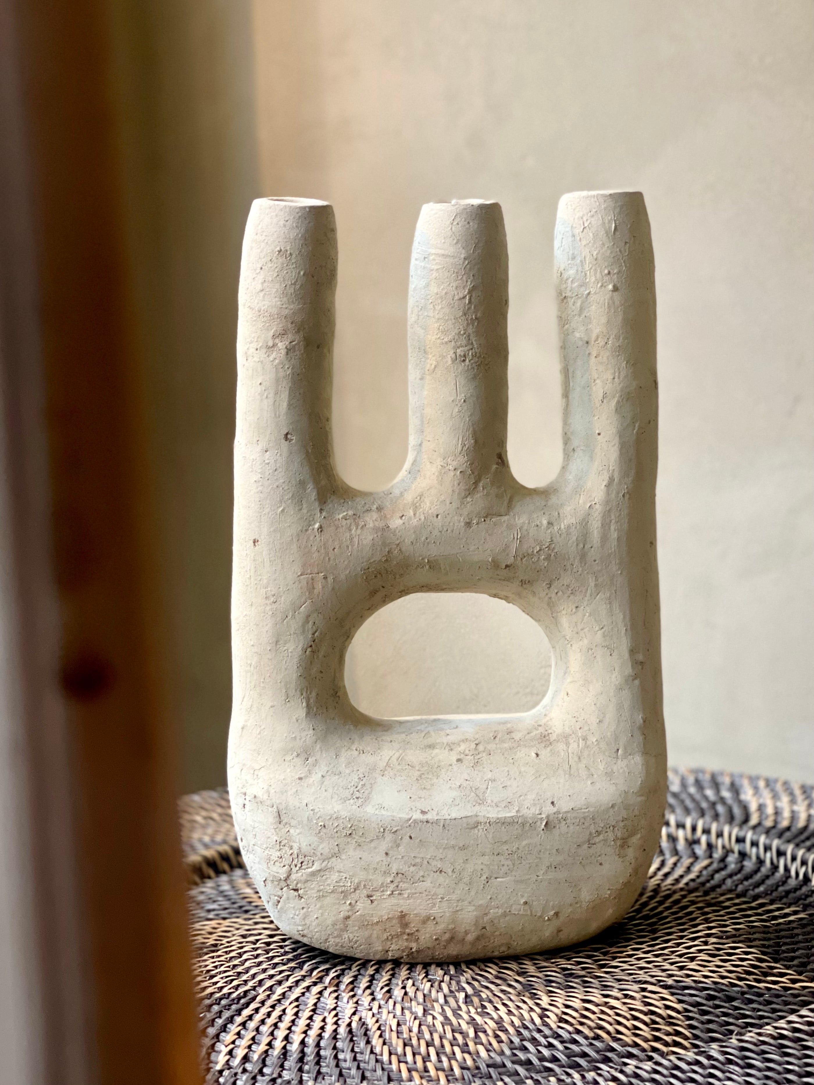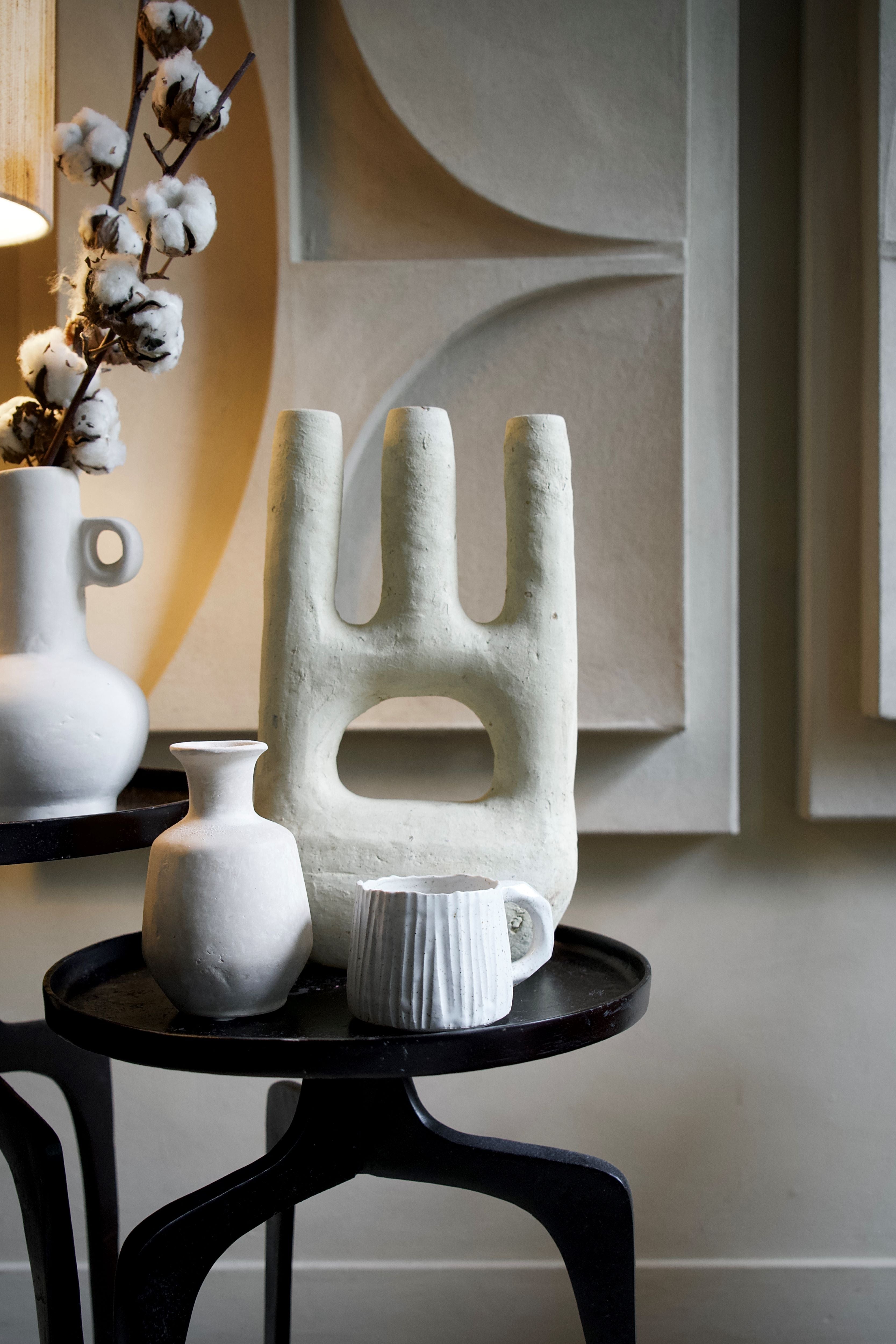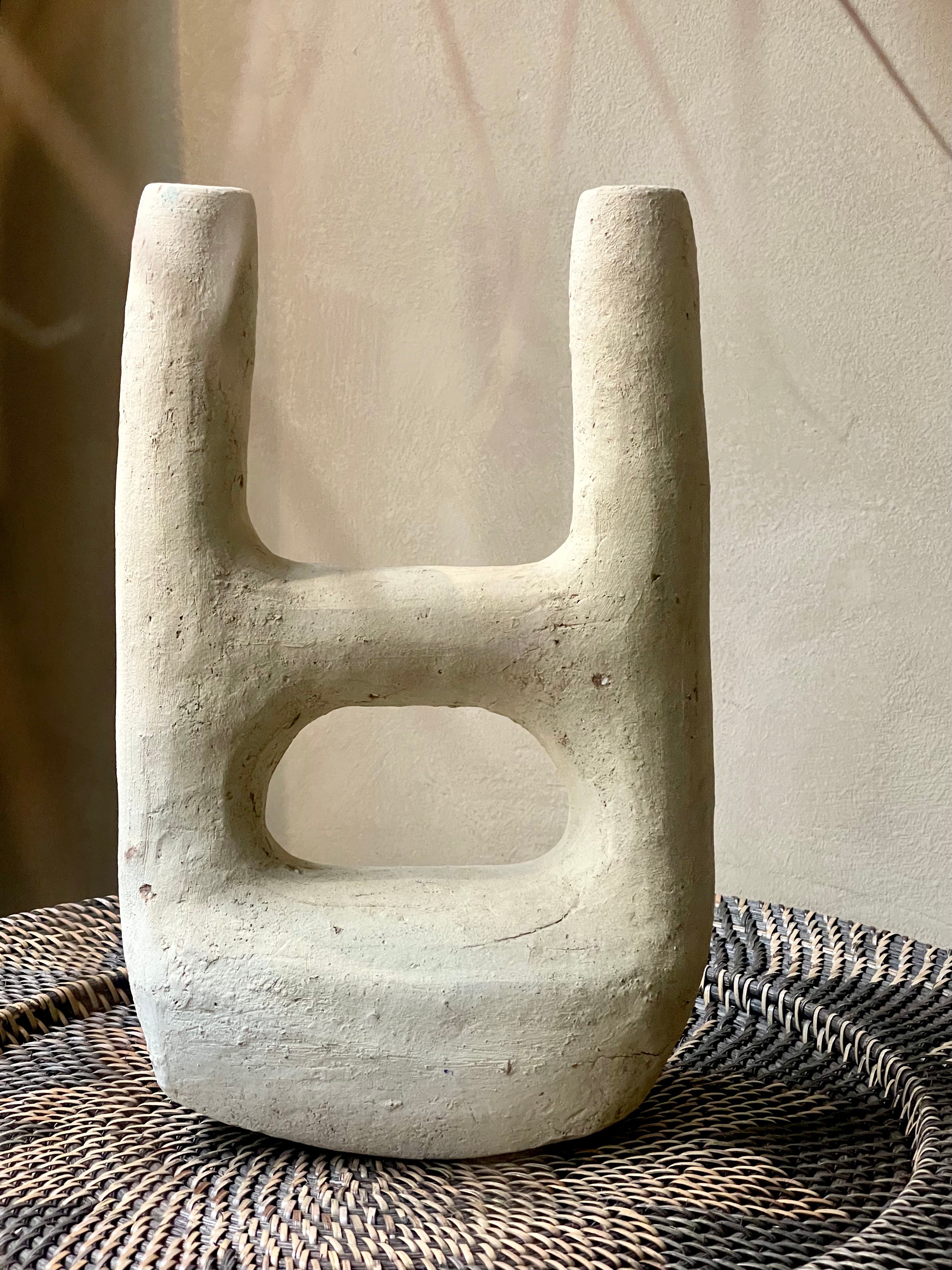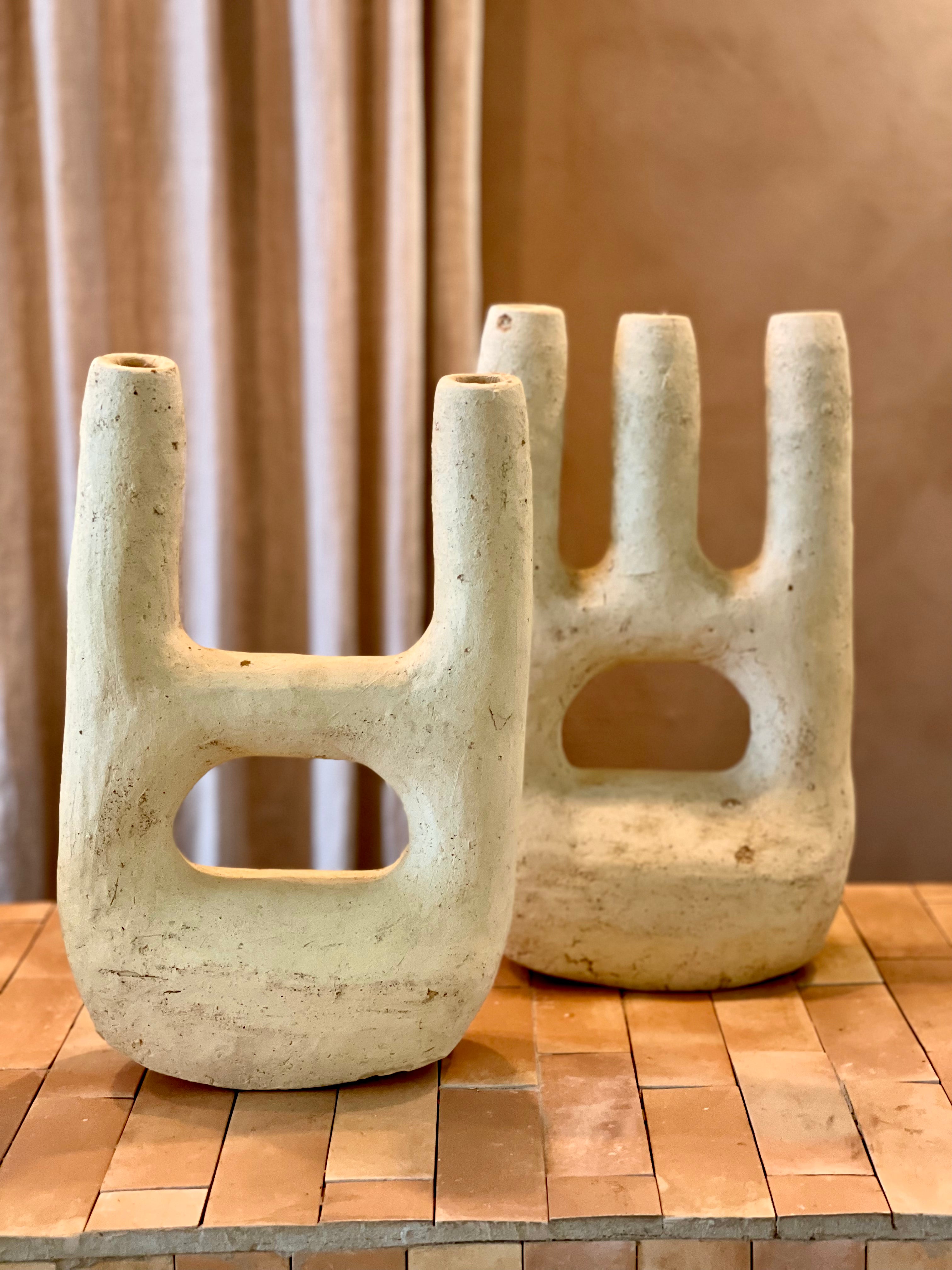 Tamegroute Vase and Candle Holder, a versatile piece that adds a touch of craftsmanship to your decor. Available in two variants, each with a raw, beige finish, these items are handmade in Morocco. Crafted with care, every piece is unique, showcasing the distinct character of Moroccan design.