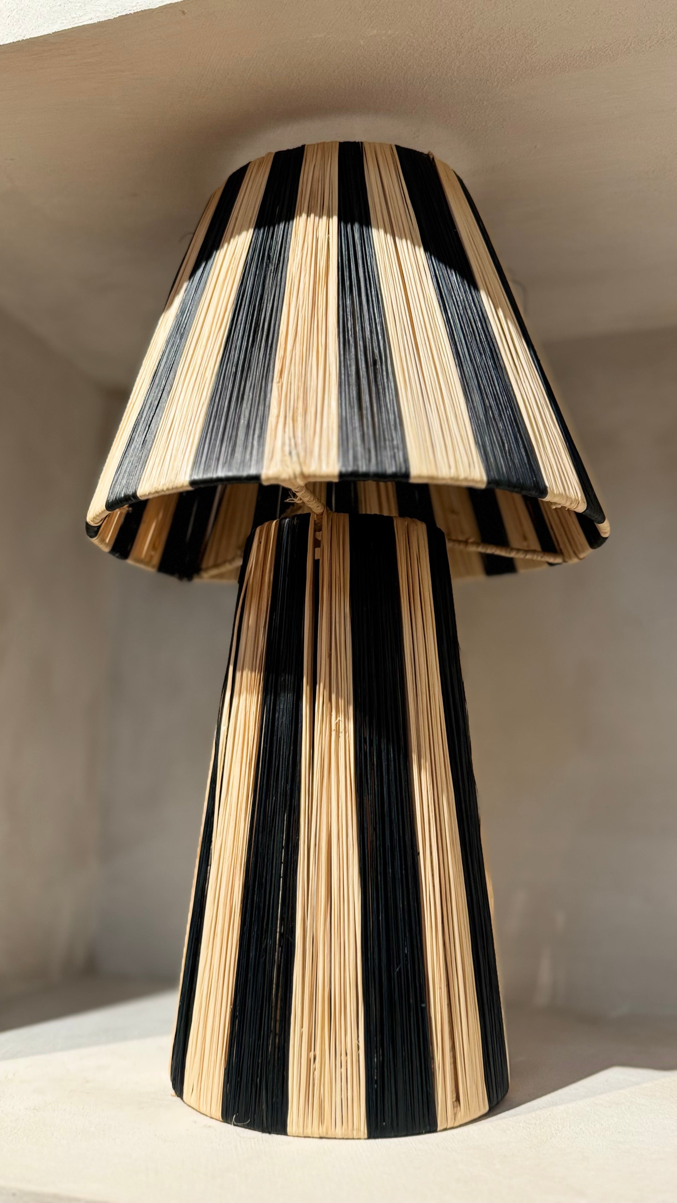 De Rattan Lamp Black Stripe brengt een stukje zonovergoten vakmanschap in huis. Met de hand gevlochten in Marokko, draagt deze lamp de ziel van traditionele ambacht en de rust van natuurlijke materialen.