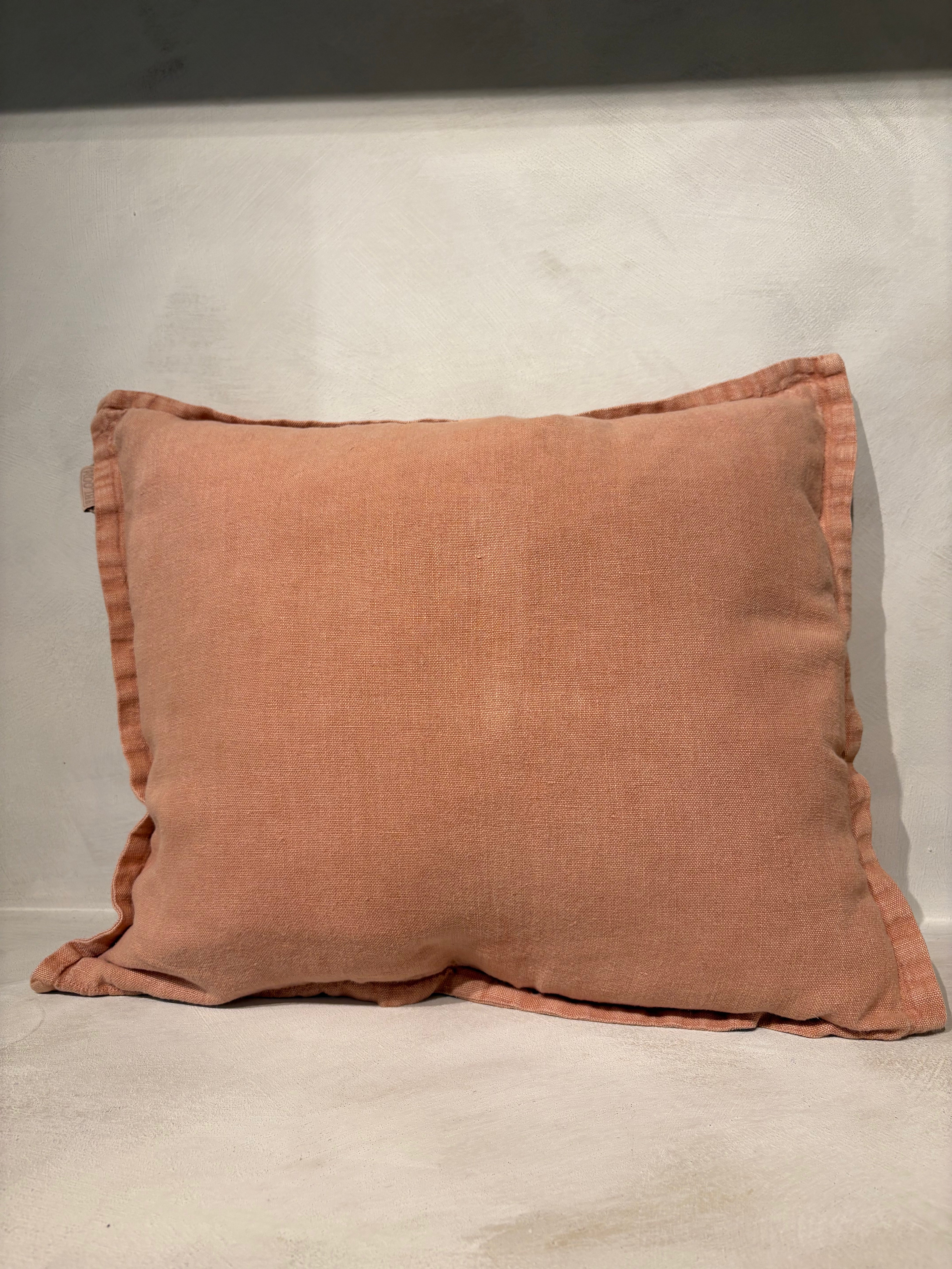 Washed linen cushion with refined edge detail