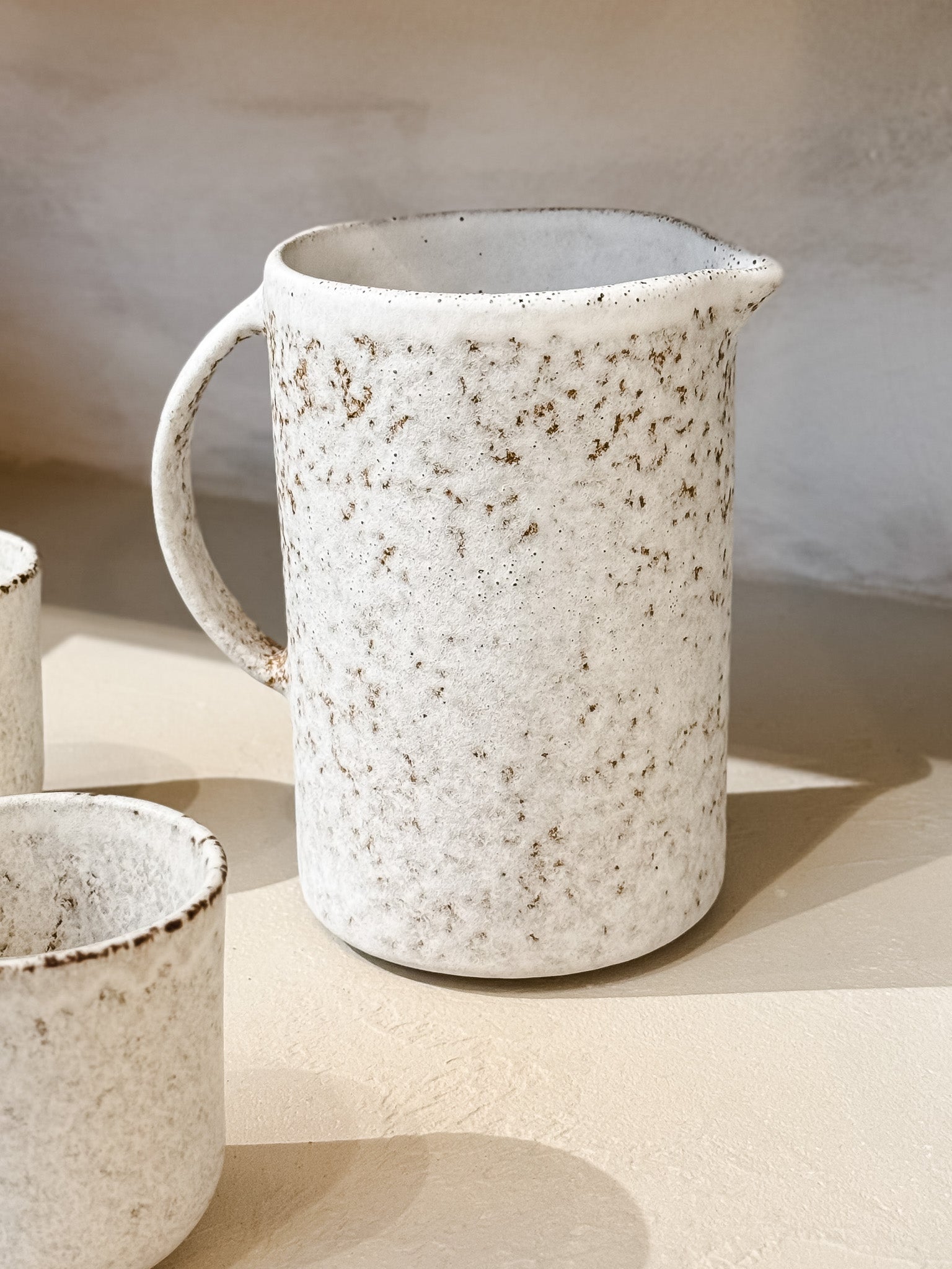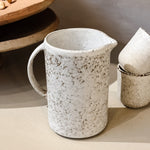 This stoneware jug features a stunning reactive glaze, giving each piece its own unique character. The color intensity and texture may vary, making every jug one of a kind. It's perfect for both serving and styling. Pair it with our matching cups and plates to complete your table setting with a cohesive and elegant look.