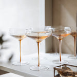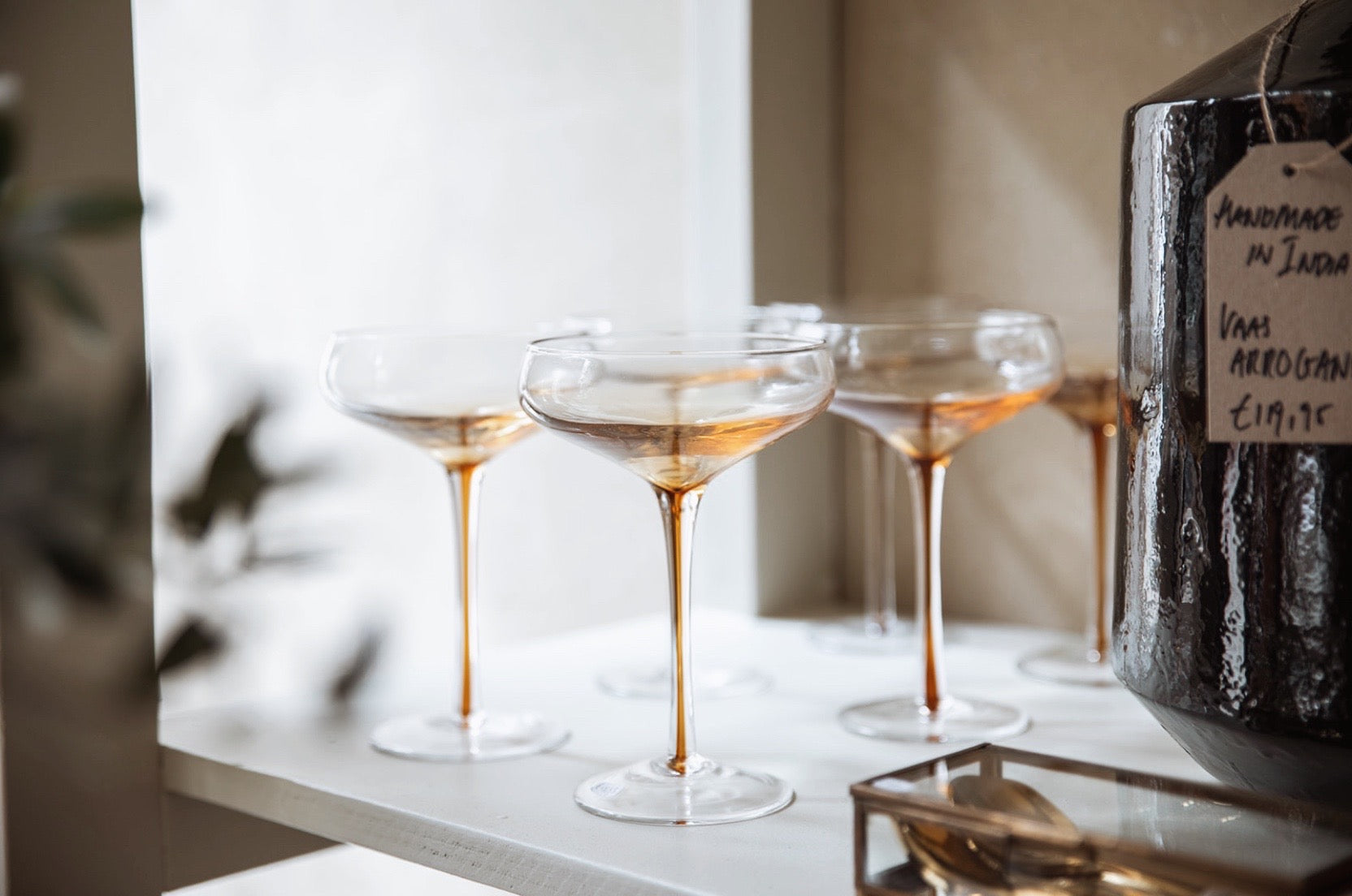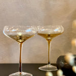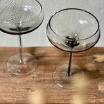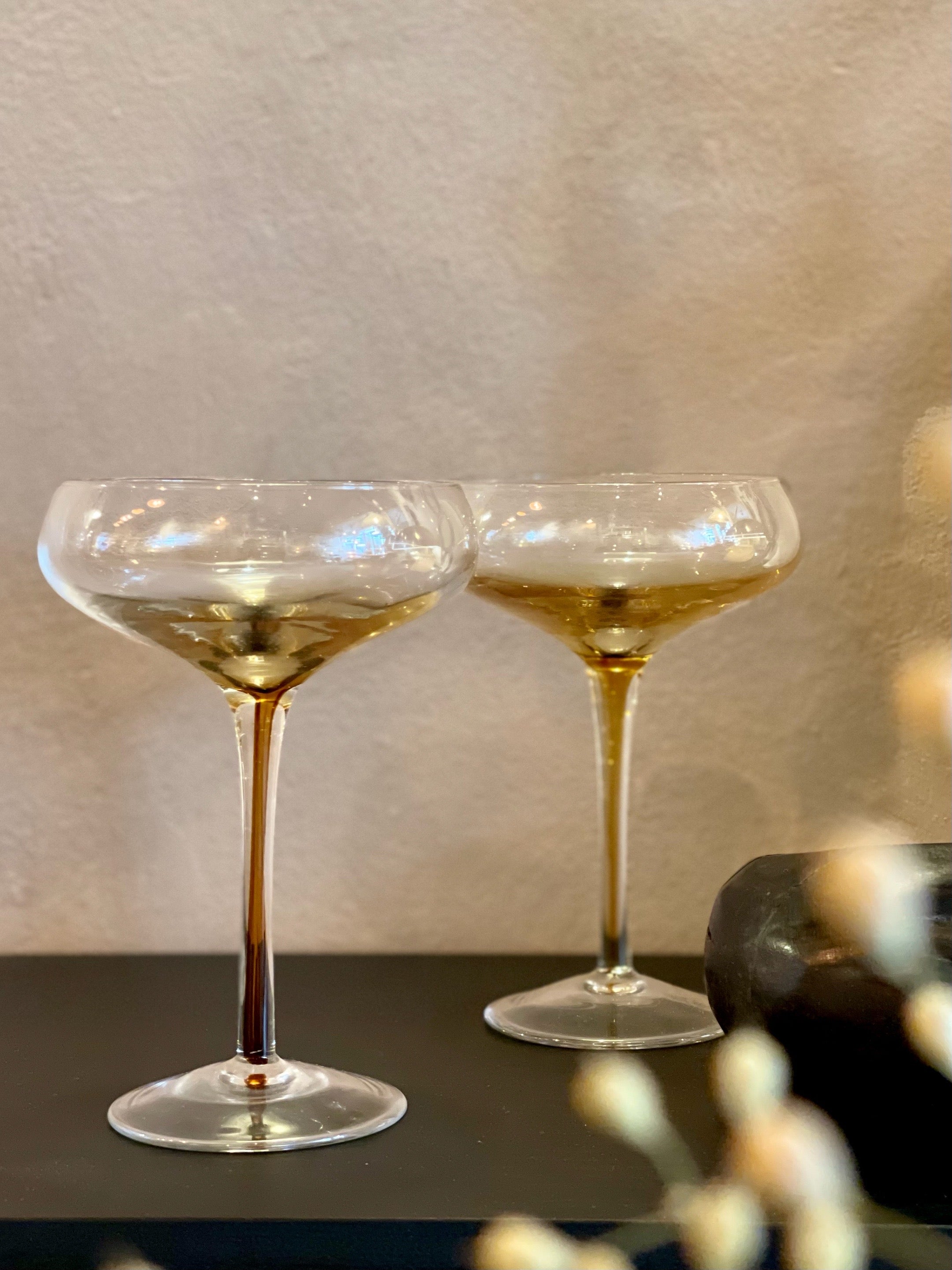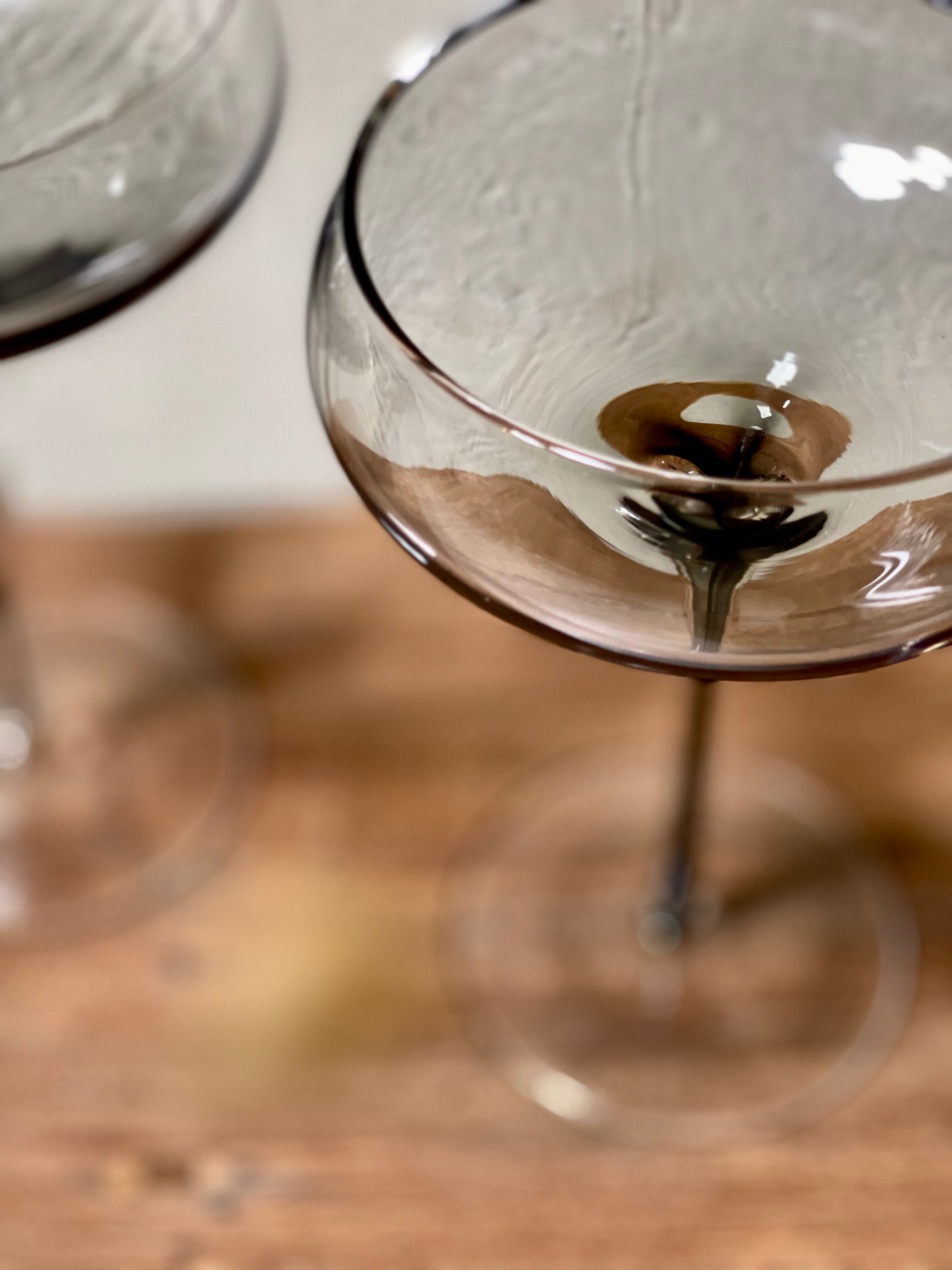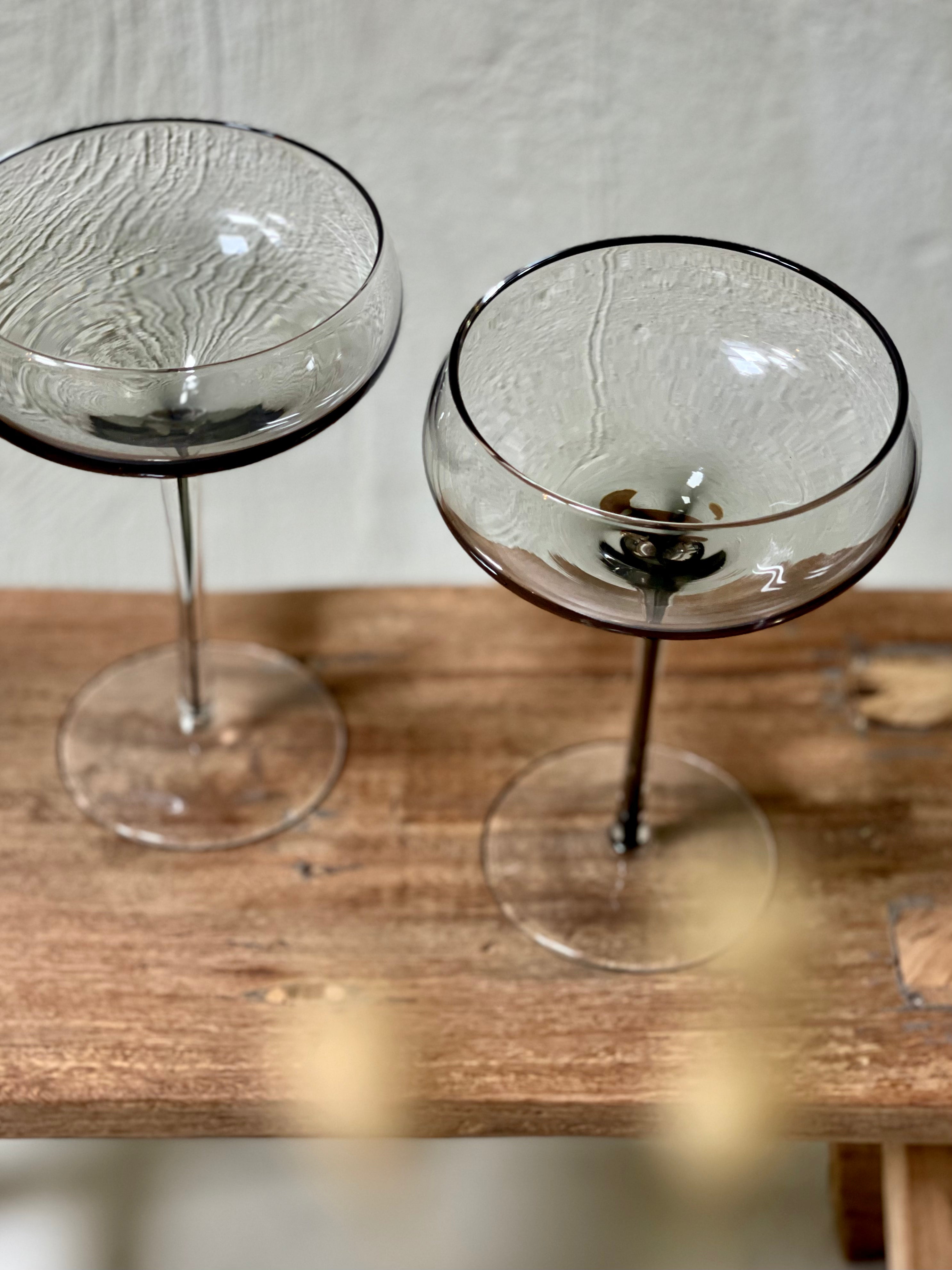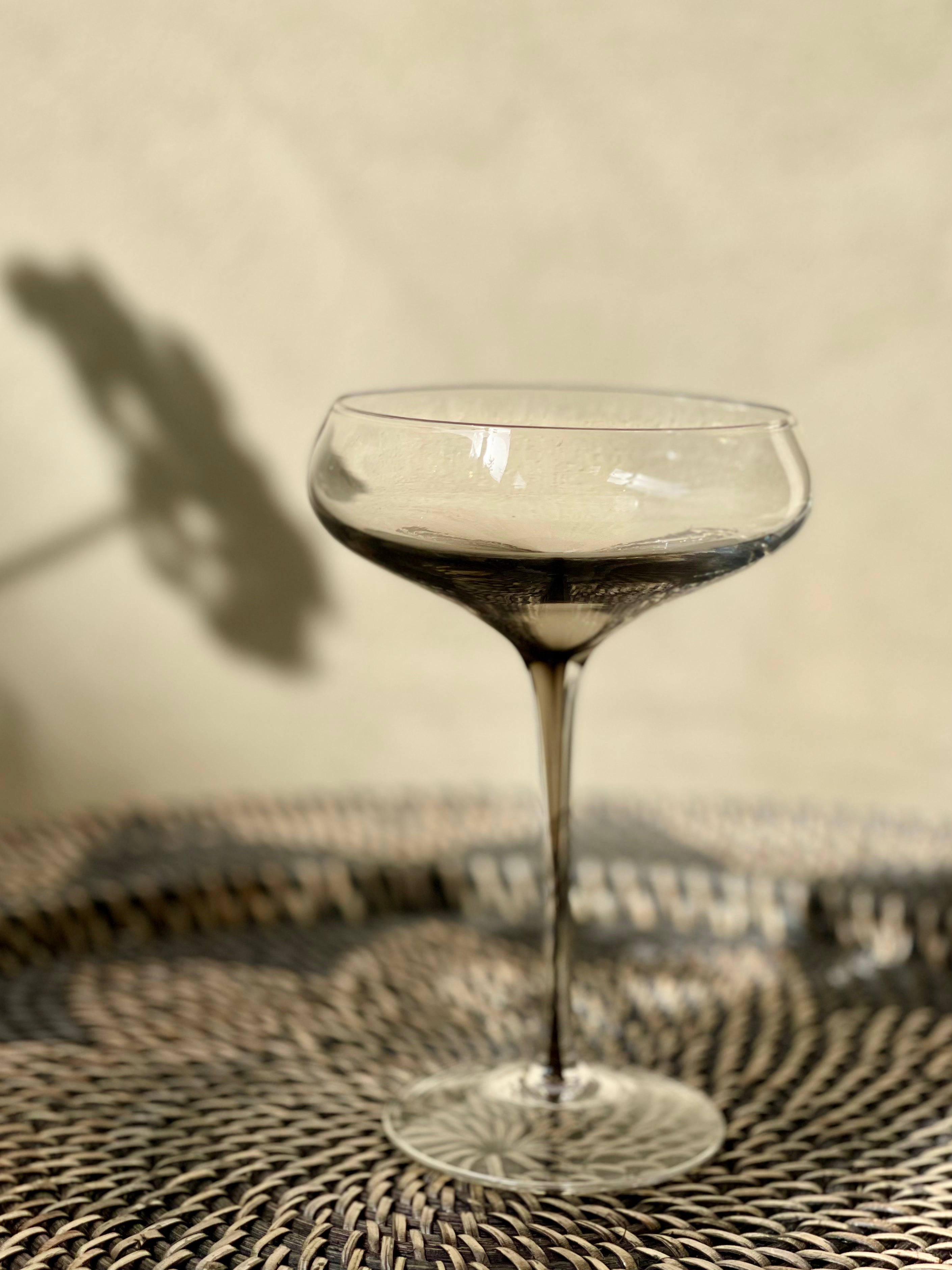 The Sping Coupe - a stylish coupe glass designed for those who appreciate drinking in style. These glasses feature an elegant smokey tint and are mouth-blown, adding an air of sophistication to your gatherings. Elevate your sipping experience with the Spring Coupe and make every toast a memorable one.