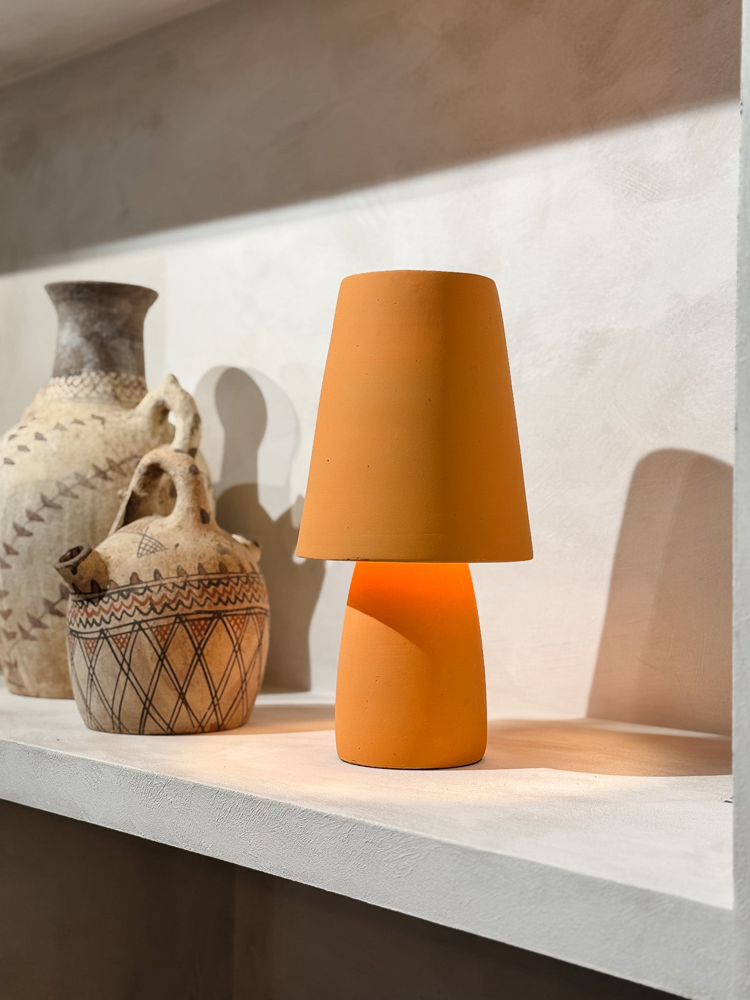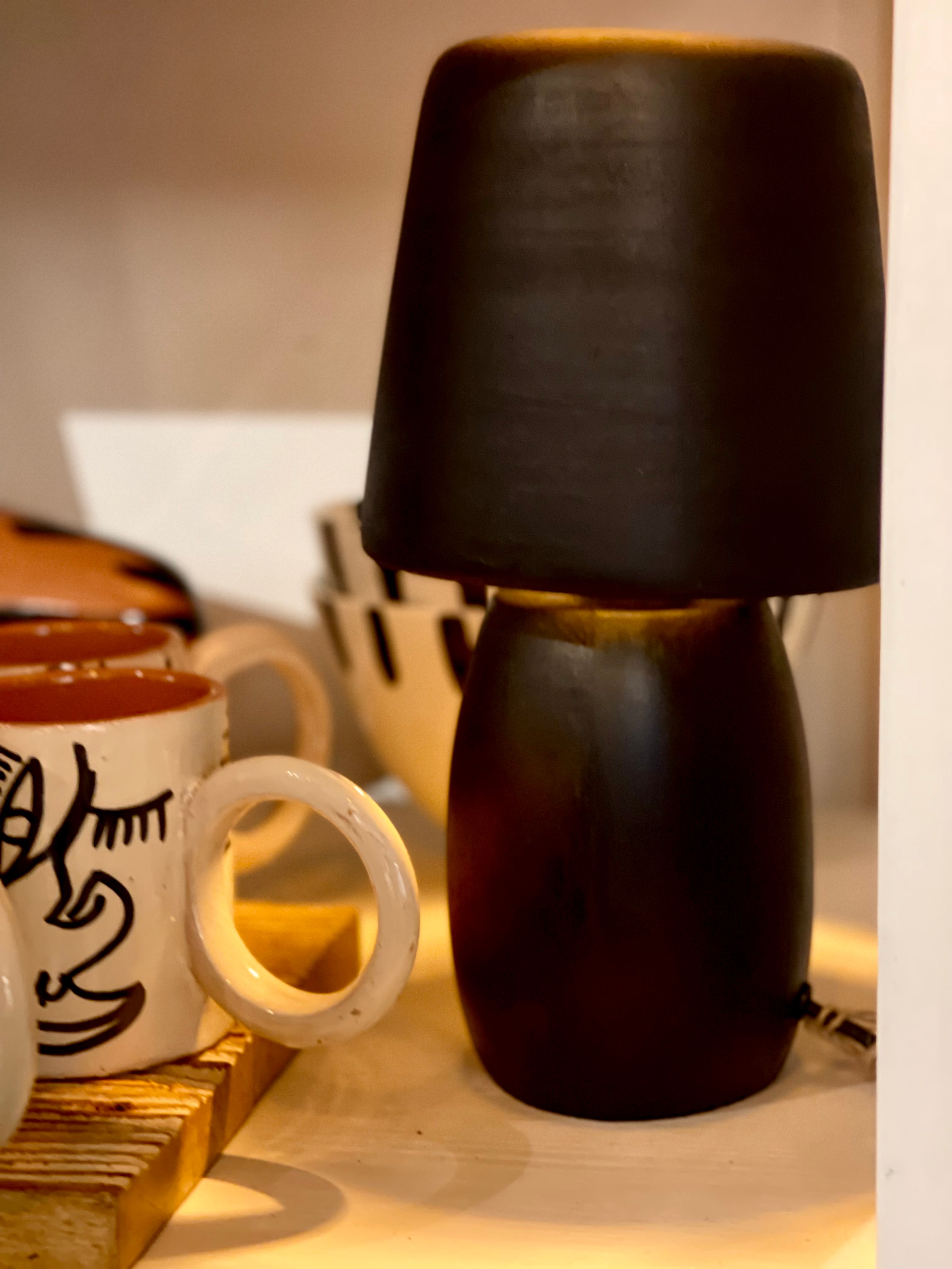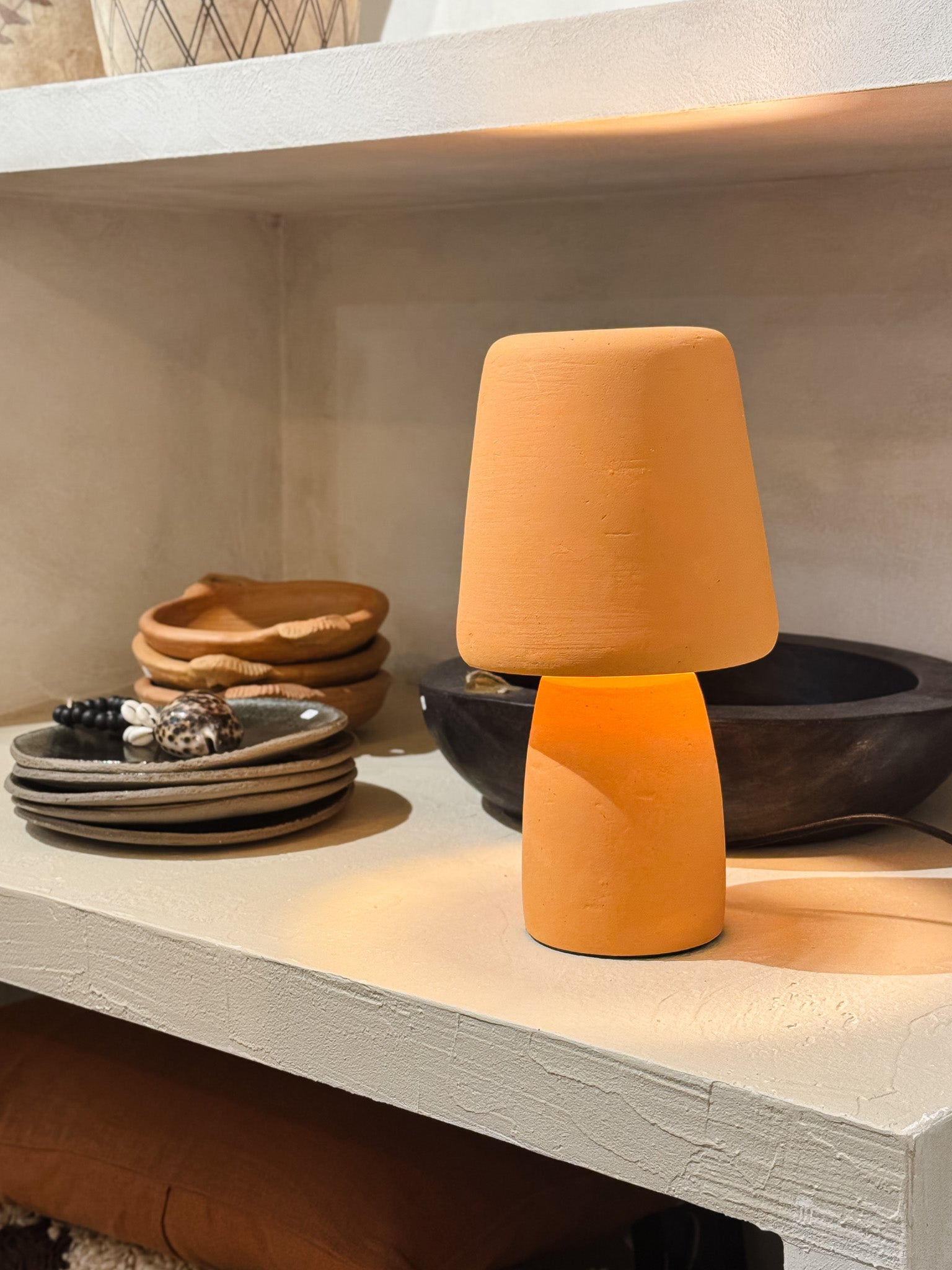 This stoneware table lamp comes in two sizes and features a raw, unfinished texture that adds a natural look and feel. Available in a terracotta shade, it pairs beautifully with other materials for a warm, earthy vibe. Its ceramic construction gives it a sturdy weight, ensuring it stands as beautifully as it shines.