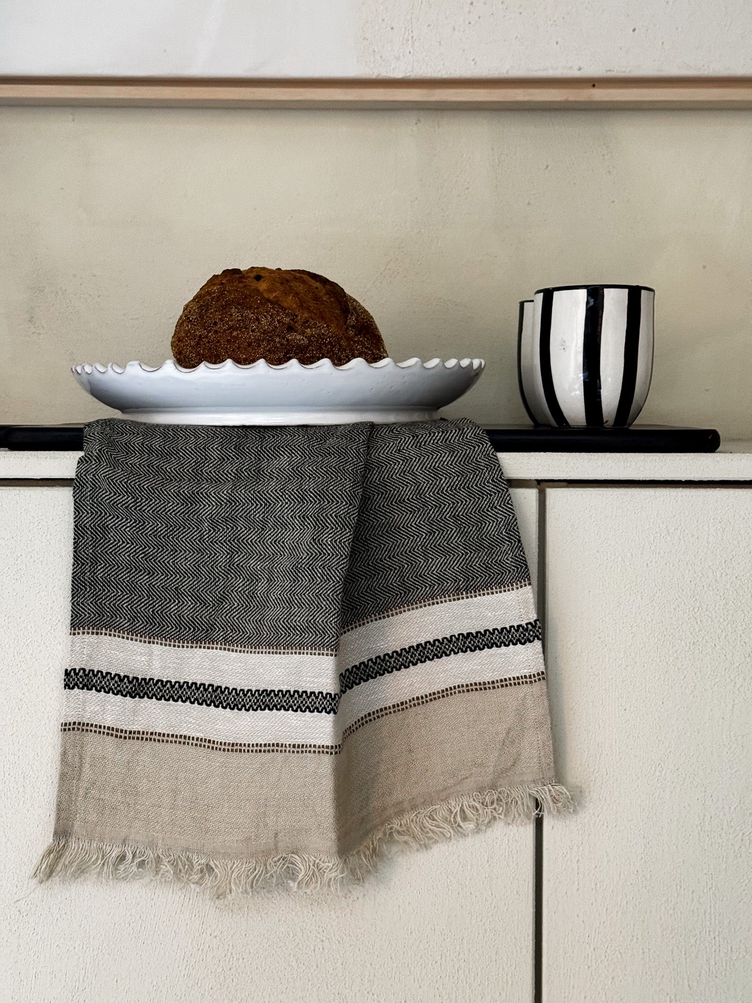 The towel Sahara Beeswax Stripe, a luxurious addition to your home essentials. Crafted from 100% linen, this towel combines premium quality with timeless style. Whether you're drying your hands in the kitchen or adding a touch of sophistication to your bathroom, this towel is designed to meet your everyday needs with style.
