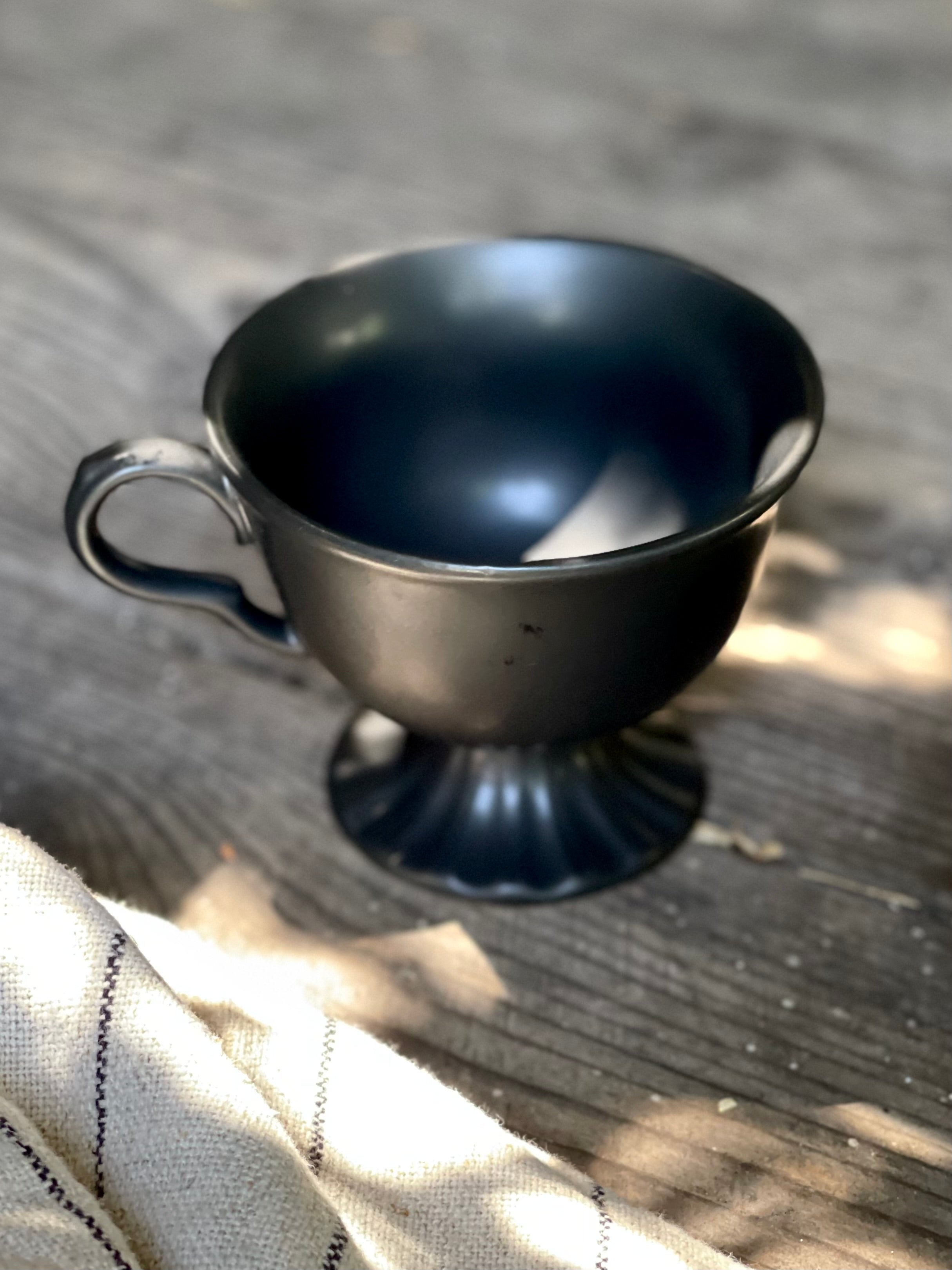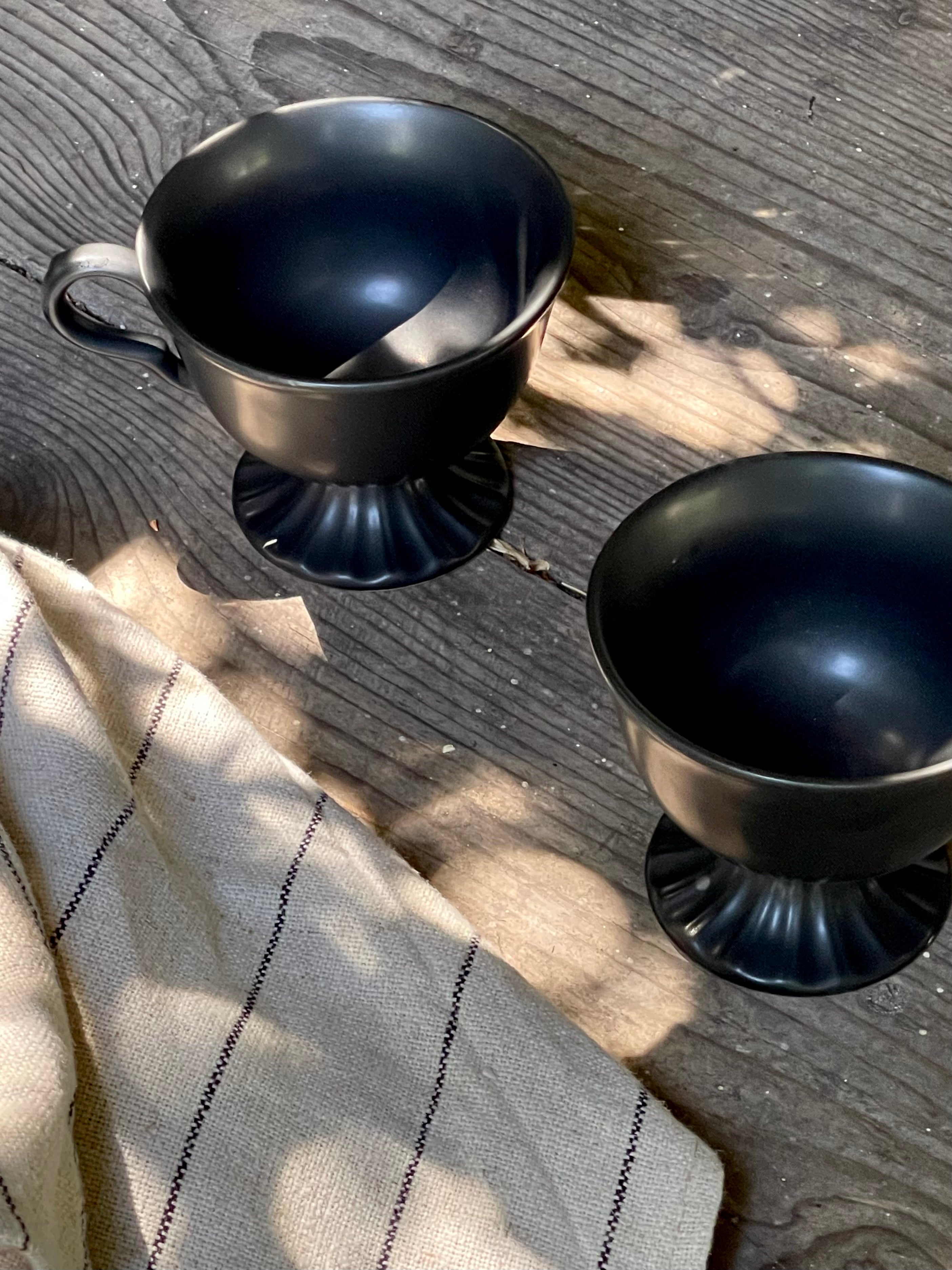 Dit elegant vormgegeven kopje met oortje is gemaakt van matzwart keramiek en straalt eenvoud en karakter uit. Perfect voor een geurige cappuccino of een warme kop thee, maar ook verrassend leuk te gebruiken voor olijven, tapenade of andere borrelhapjes.